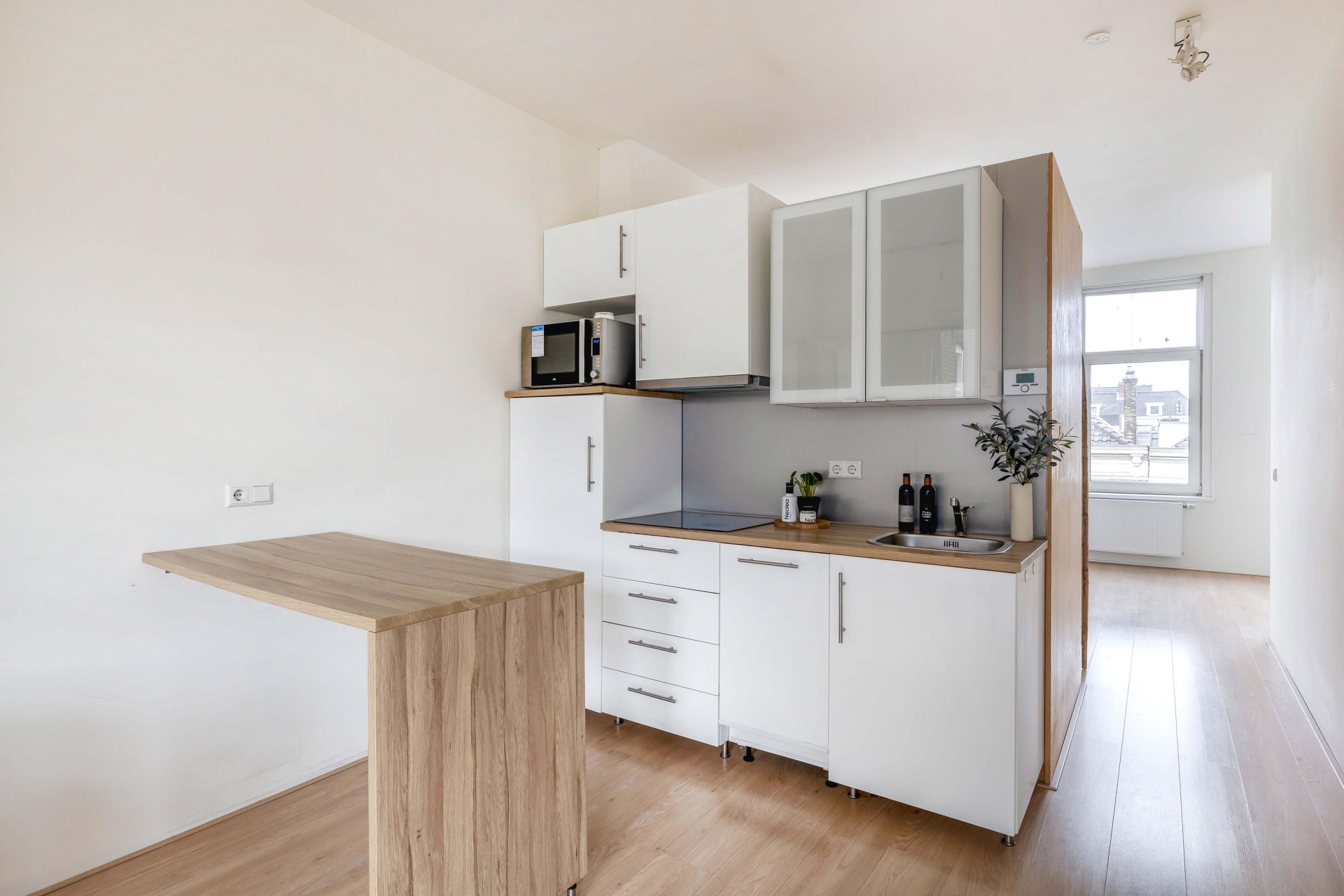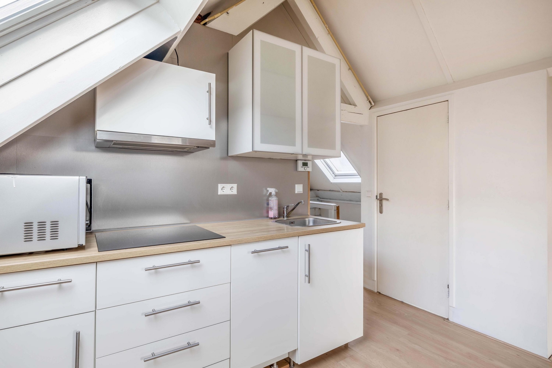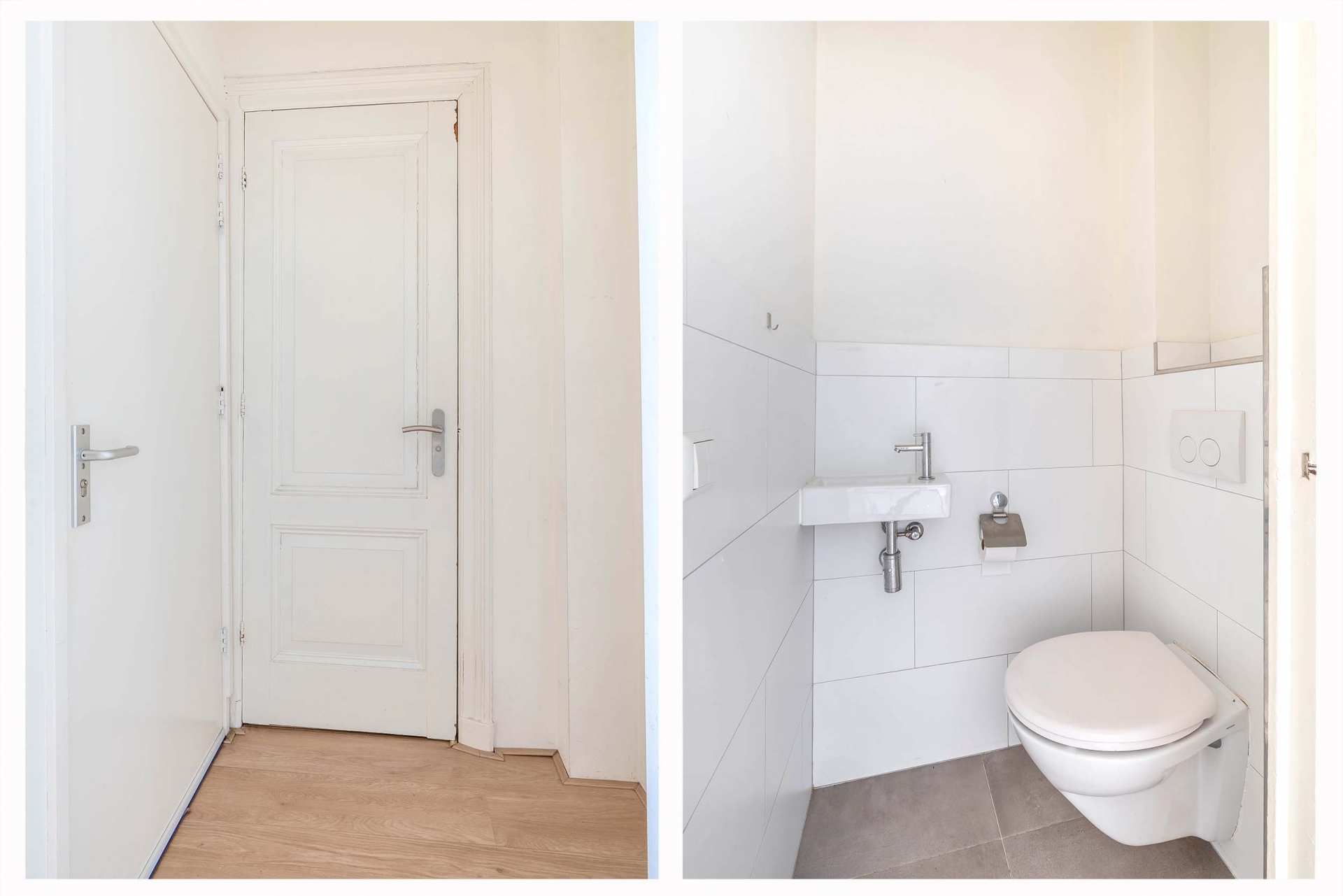 De woning is verdeeld over twee woonlagen en biedt daardoor veel flexibiliteit in gebruik. Op dit moment is het geheel ingericht als twee afzonderlijke studio’s, maar het wordt als één woning verkocht.