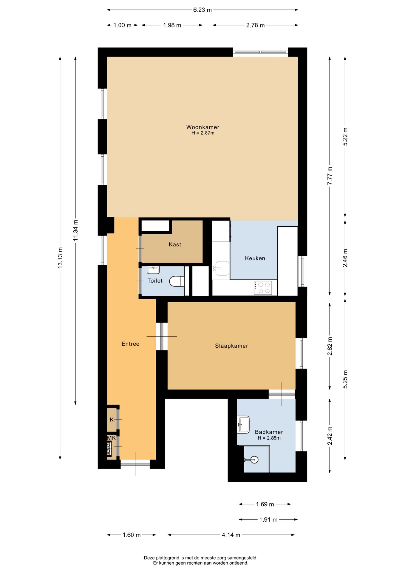 “Deze informatie is door ons met de nodige zorgvuldigheid samengesteld. Onzerzijds wordt echter geen enkele aansprakelijkheid aanvaard voor enige onvolledigheid, onjuistheid of anderszins, dan wel de gevolgen daarvan. Alle opgegeven maten en oppervlakten zijn indicatief.”