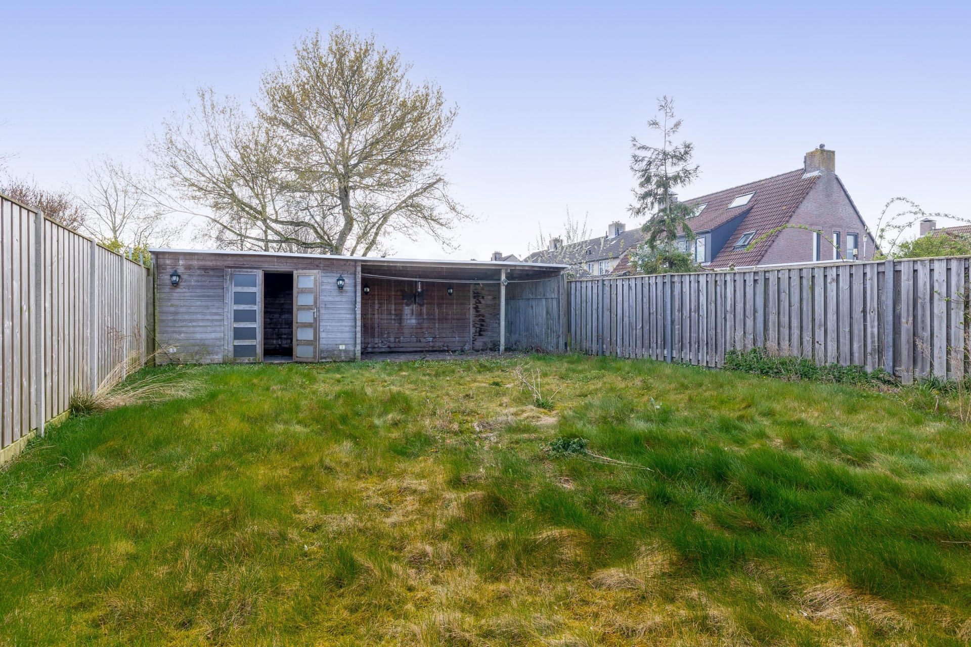 De achtertuin is een van de grote pluspunten van dit huis. Met een ligging op het zuiden geniet je hier volop van de middag- en avondzon. De tuin is ruim opgezet en biedt meer dan genoeg plek voor een terras, speelruimte voor kinderen of het aanleggen van een mooie groene tuin.