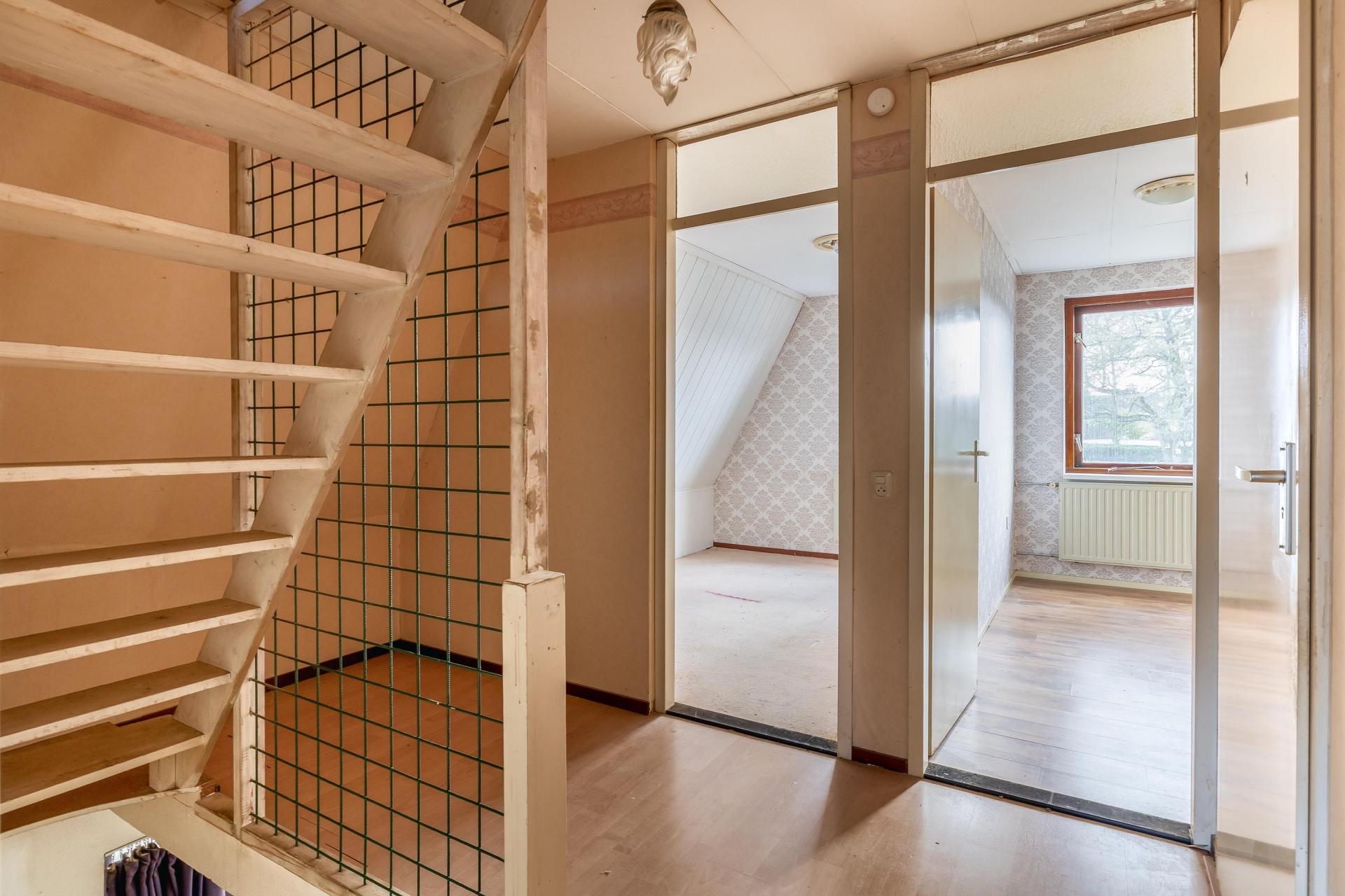 Via een vaste trap bereik je de vliering. Dit is een verrassend ruime extra verdieping die je kunt gebruiken als bergzolder, maar ook mogelijkheden biedt voor bijvoorbeeld een hobbyruimte. Een fijne toevoeging die zorgt voor extra bergruimte in huis.