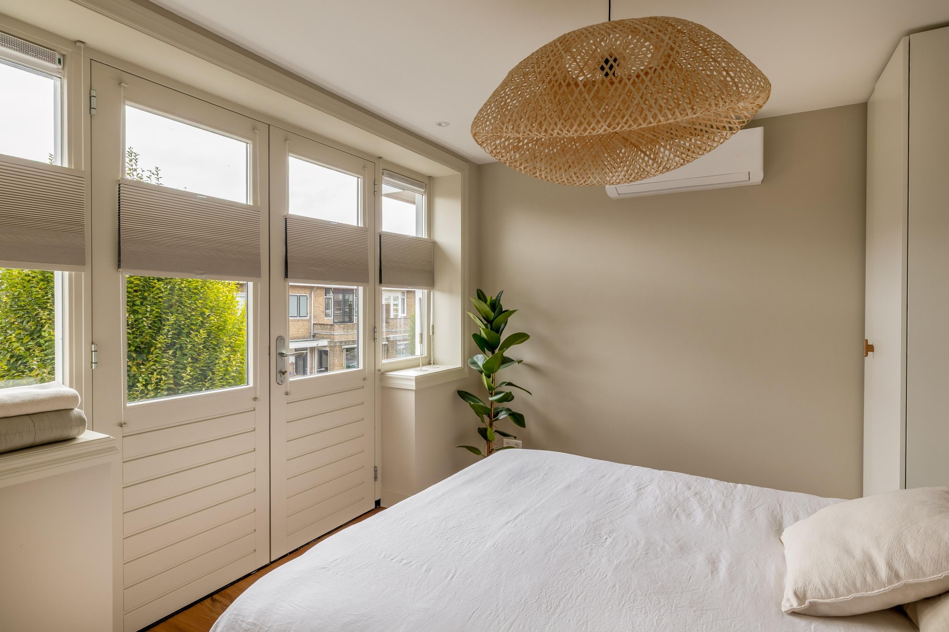 De eerste verdieping telt twee grote slaapkamers, beide met veel lichtinval en een prettige indeling. De grootste slaapkamer ligt aan de achterzijde van de woning en biedt een rustig uitzicht op de tuin. De tweede slaapkamer is eveneens ruim en daardoor ideaal als kinderkamer, logeerkamer of werkkamer.