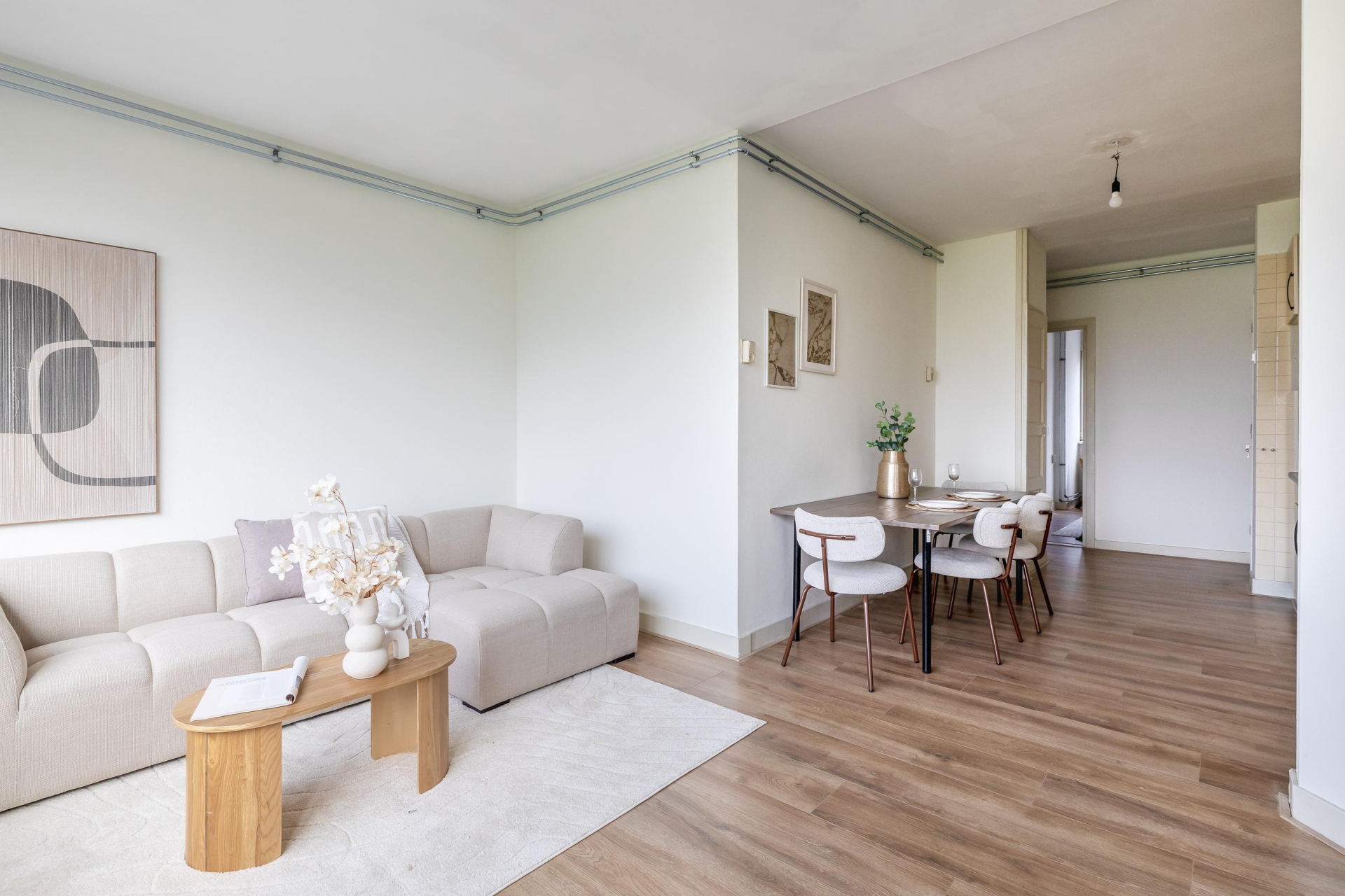 Het appartement ligt op de eerste verdieping van een karakteristiek pand uit 1936. De combinatie van de uitstraling van het gebouw en het comfort van nu maakt dit een interessante plek voor starters.
