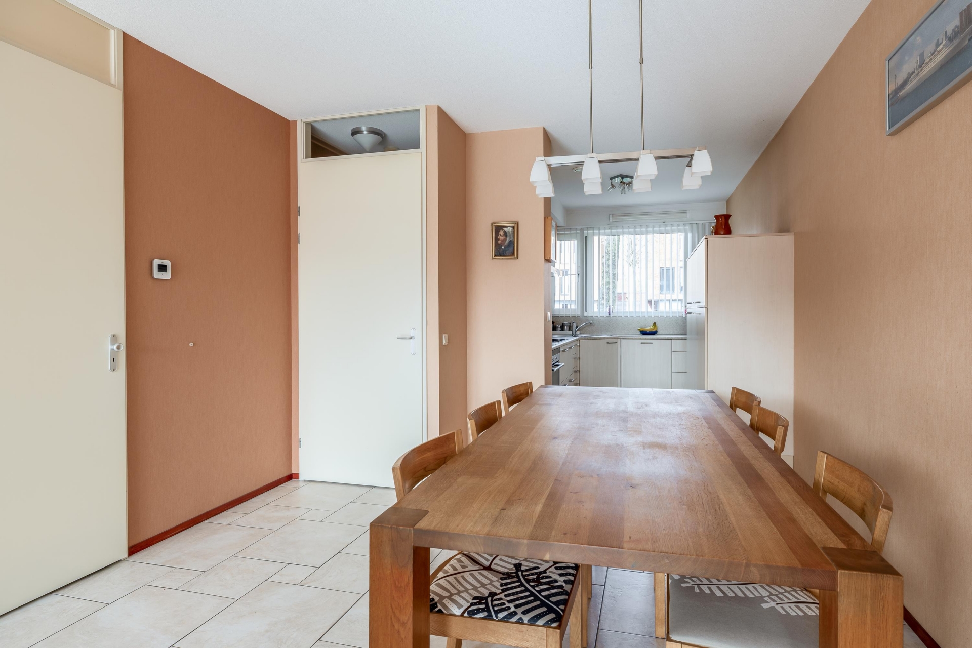 De keuken ligt aan de voorzijde van het huis en is uitgevoerd in een praktische L-opstelling. Dankzij het grote raam aan de voorzijde is ook hier veel natuurlijk licht aanwezig. De keuken biedt voldoende werk- en kastruimte en is voorzien van diverse inbouwapparatuur. Vanuit de keuken kijk je uit over de straat en de groenstrook voor het huis.