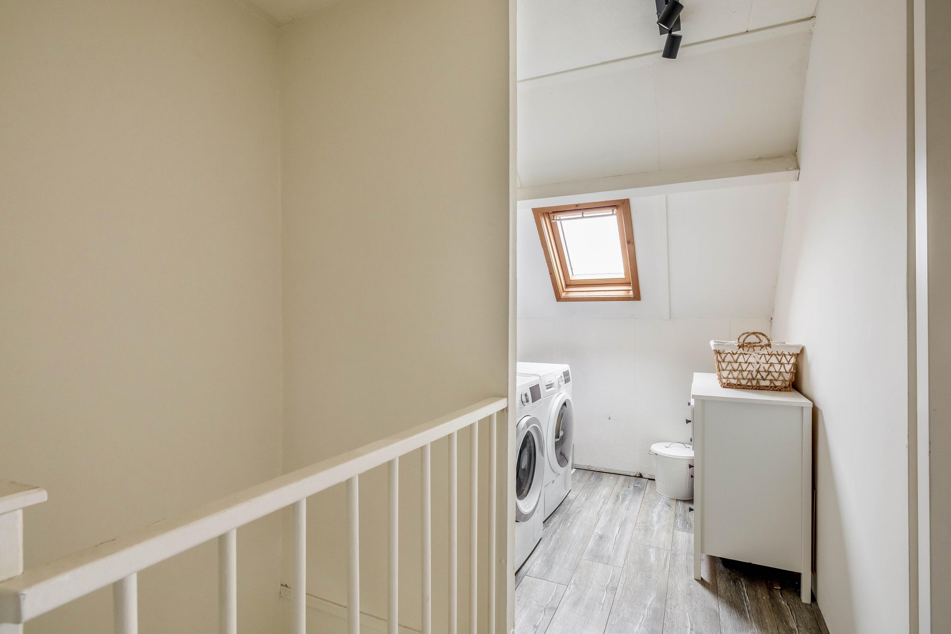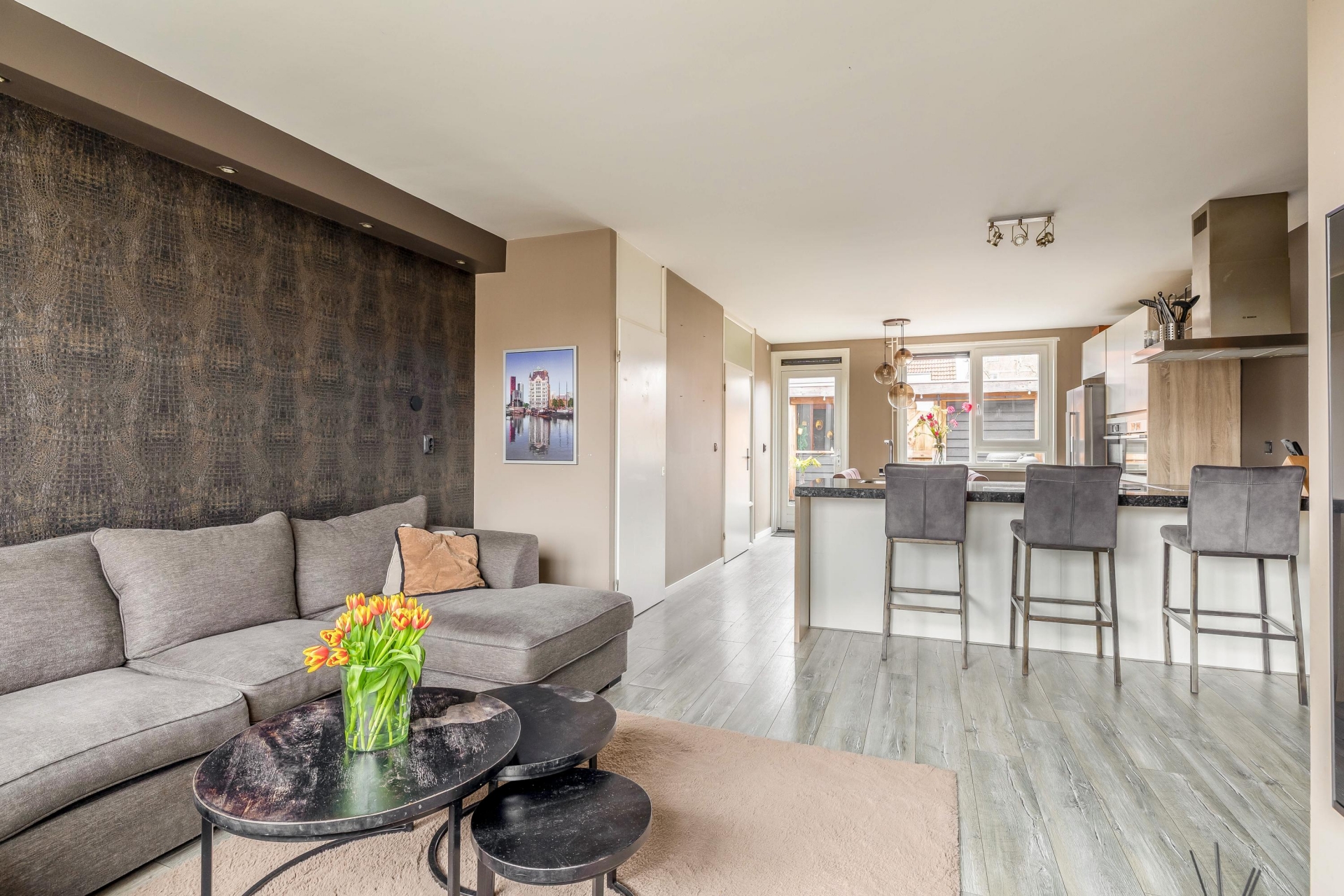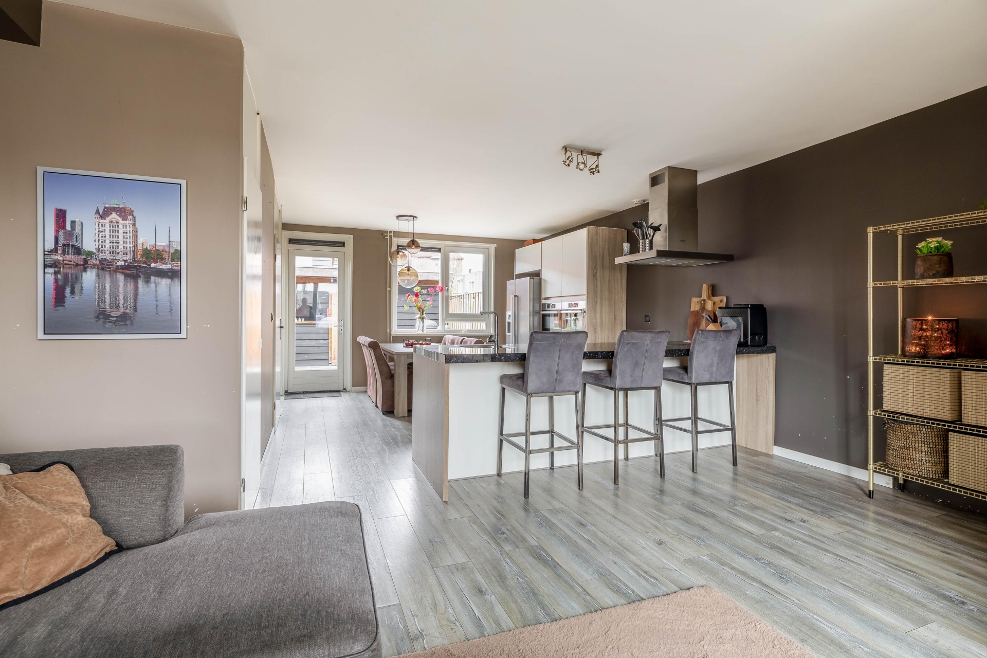 De keuken is modern uitgevoerd en voorzien van een kook- en spoeleiland met baropstelling met zitplaatsen. Ideaal voor een snel ontbijt in de ochtend of een borrel met vrienden terwijl jij het diner voorbereidt. Vanuit de keuken loop je zo de achtertuin in, wat op mooie dagen zorgt voor een verlengstuk van je leefruimte. De afwerking is strak en verzorgd, met een moderne vloer en rustige kleurstellingen.
