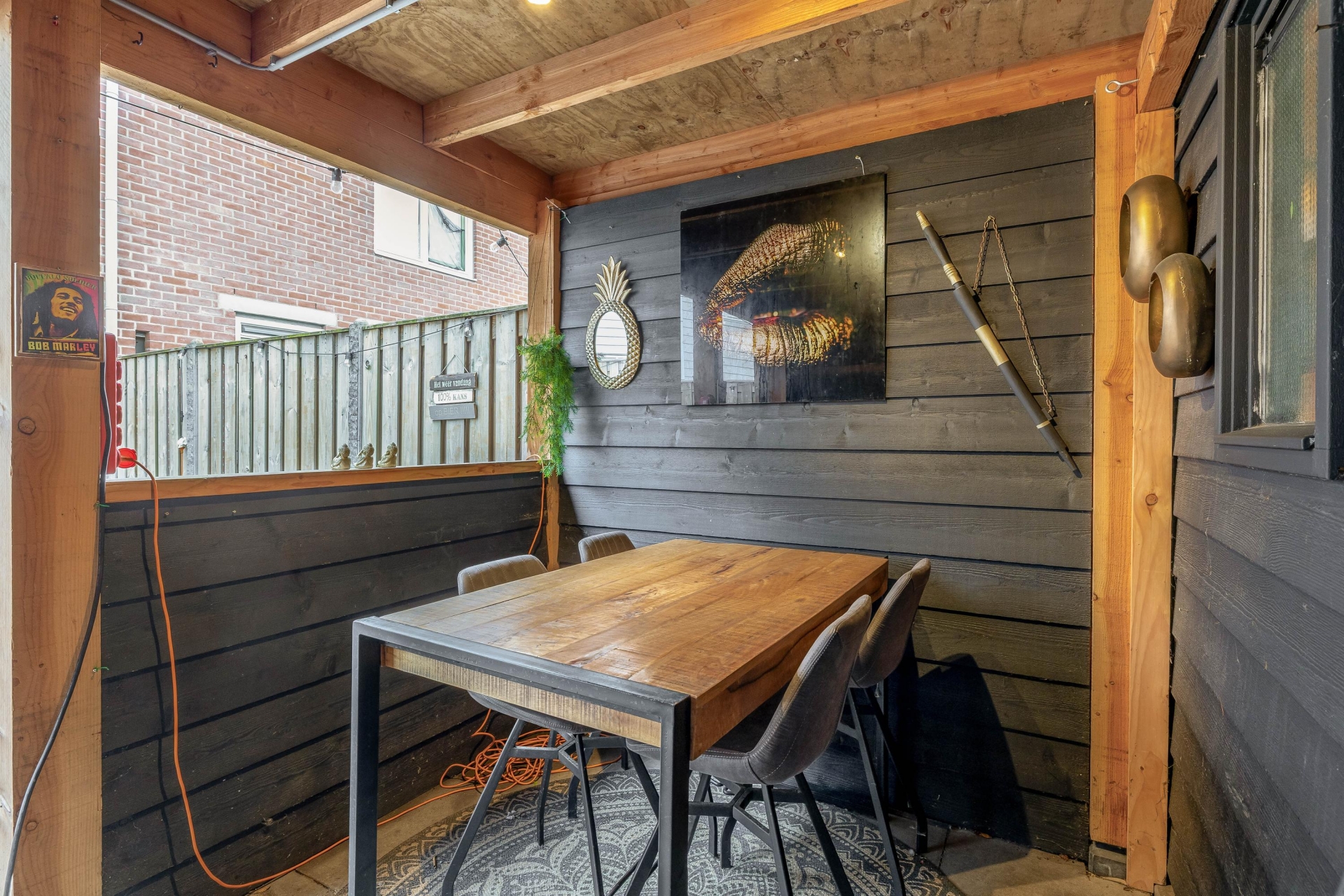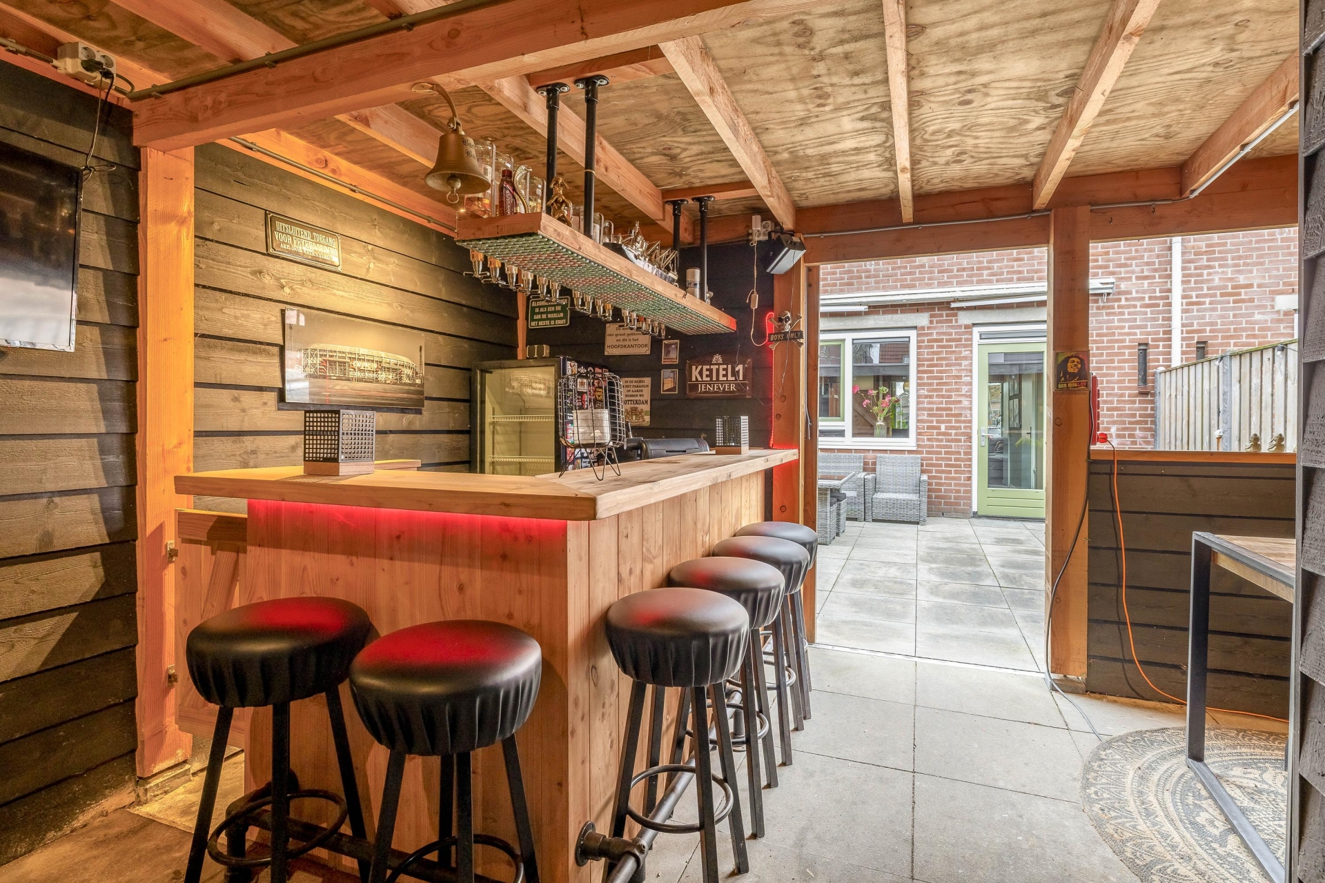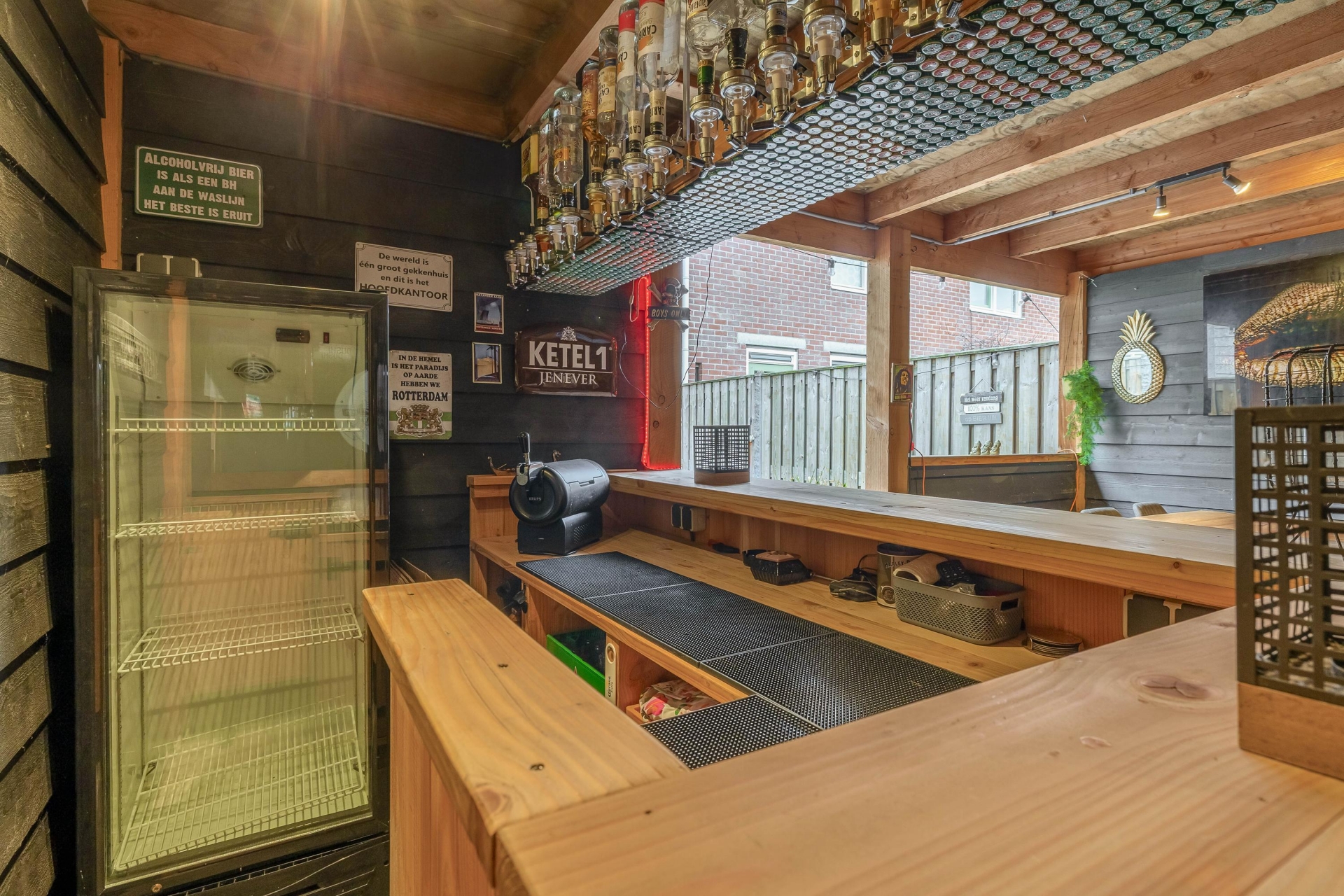De echte blikvanger is de luxe houten overkapping achterin de tuin. Deze is ingericht als bar en loungeplek, compleet met robuuste afwerking en ruimte voor een barbecue. Dit is dé plek voor verjaardagen, zomeravonden en gezellige borrels met vrienden en familie.