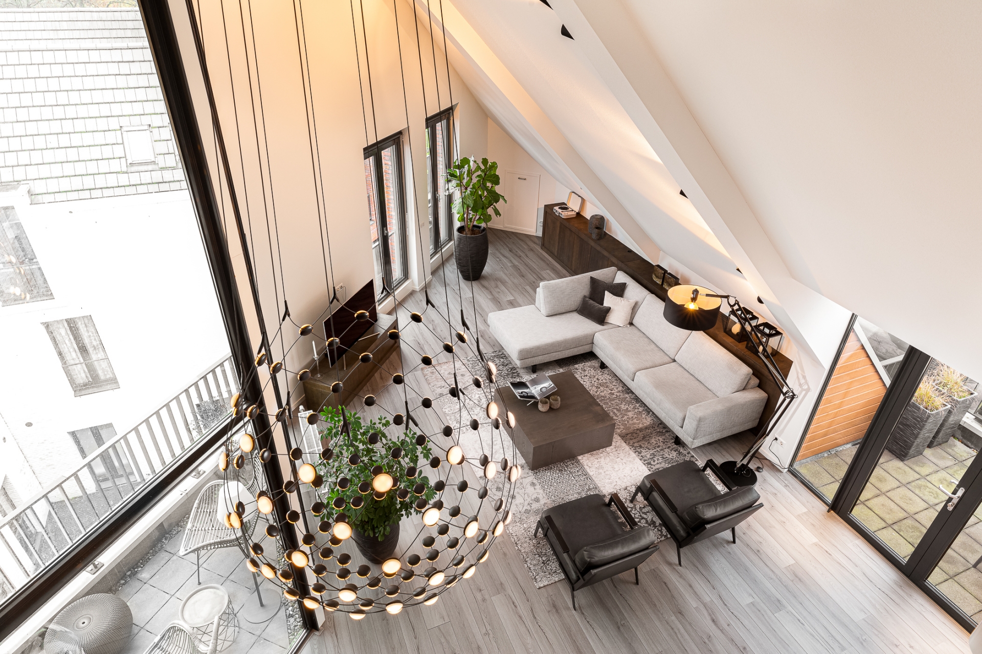 De entresol biedt extra leefruimte met een prachtig uitzicht over de stad dankzij de dakramen.