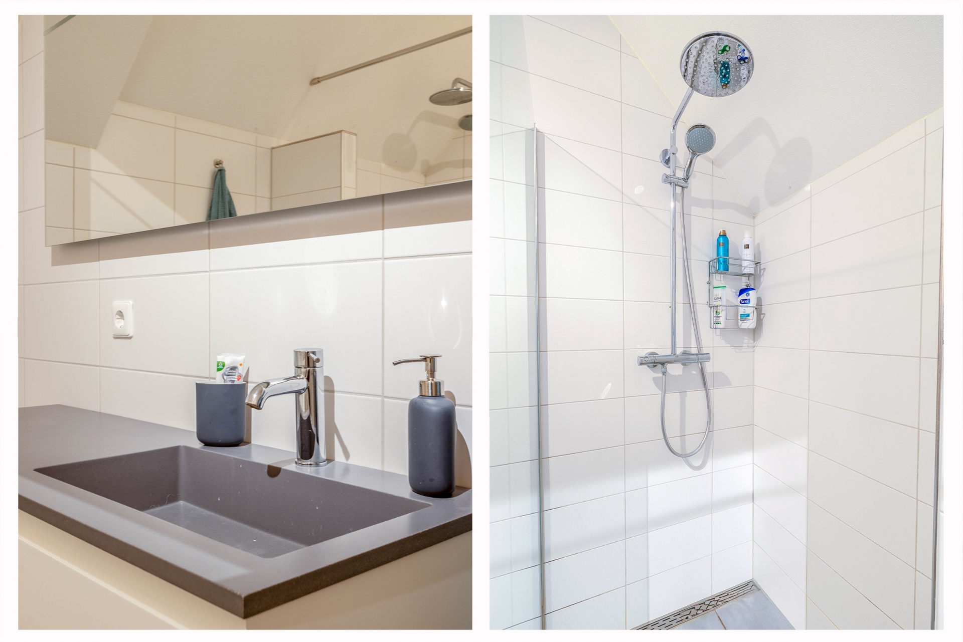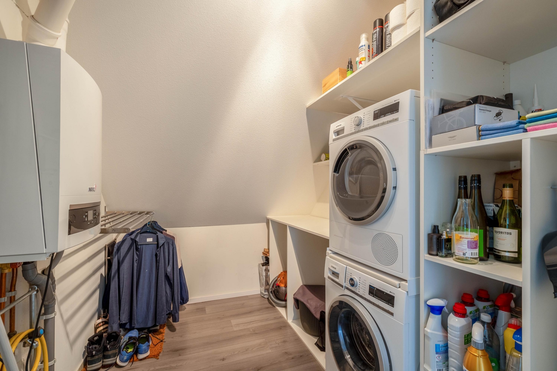 Verder vindt u in de hal de toiletruimte, garderobe, vaste kast, technische ruimte, twee ruime slaapkamers en een modern betegelde badkamer met grote inloopdouche, wastafel en 2e toilet.