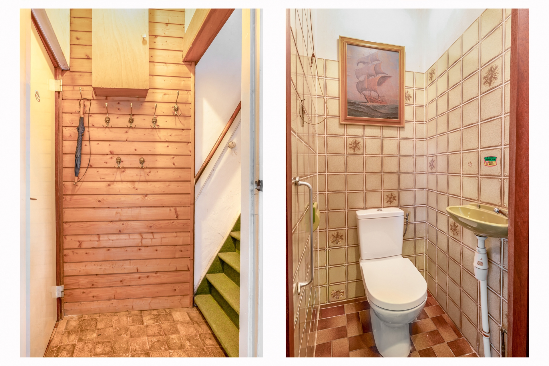 Wat meteen opvalt zodra je binnenstapt, is de speelse opbouw van het huis. De woonkamer ligt iets verhoogd ten opzichte van de eetkamer en dit zorgt niet alleen voor een leuk zicht, maar ook voor een knus gevoel in beide ruimtes. Aan de voorzijde is er toegang tot de zonnige voortuin, perfect gelegen op het zuiden met ruimte om een zitplek of speelruimte te creëren.