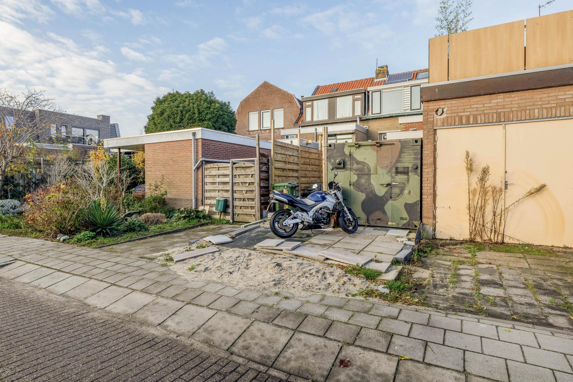 De voortuin is een van de fijne verrassingen van dit huis. Met een ligging op het zuiden kun je hier bijna de hele dag door genieten van de zon. Of je nu houdt van een onderhoudsvriendelijke tuin met tegels en een loungeset, of je groene vingers de vrije loop wilt laten: hier kun je alle kanten op.