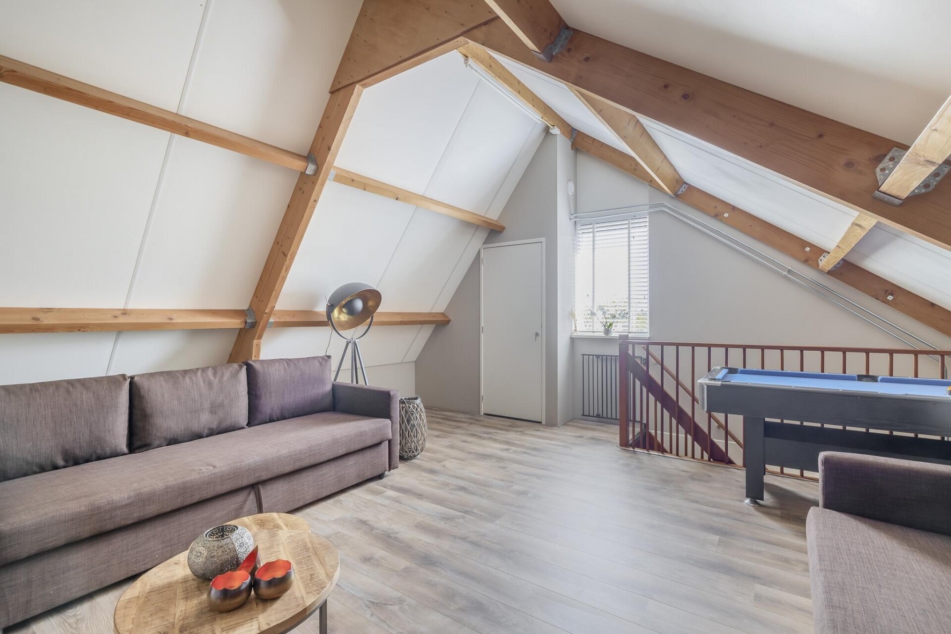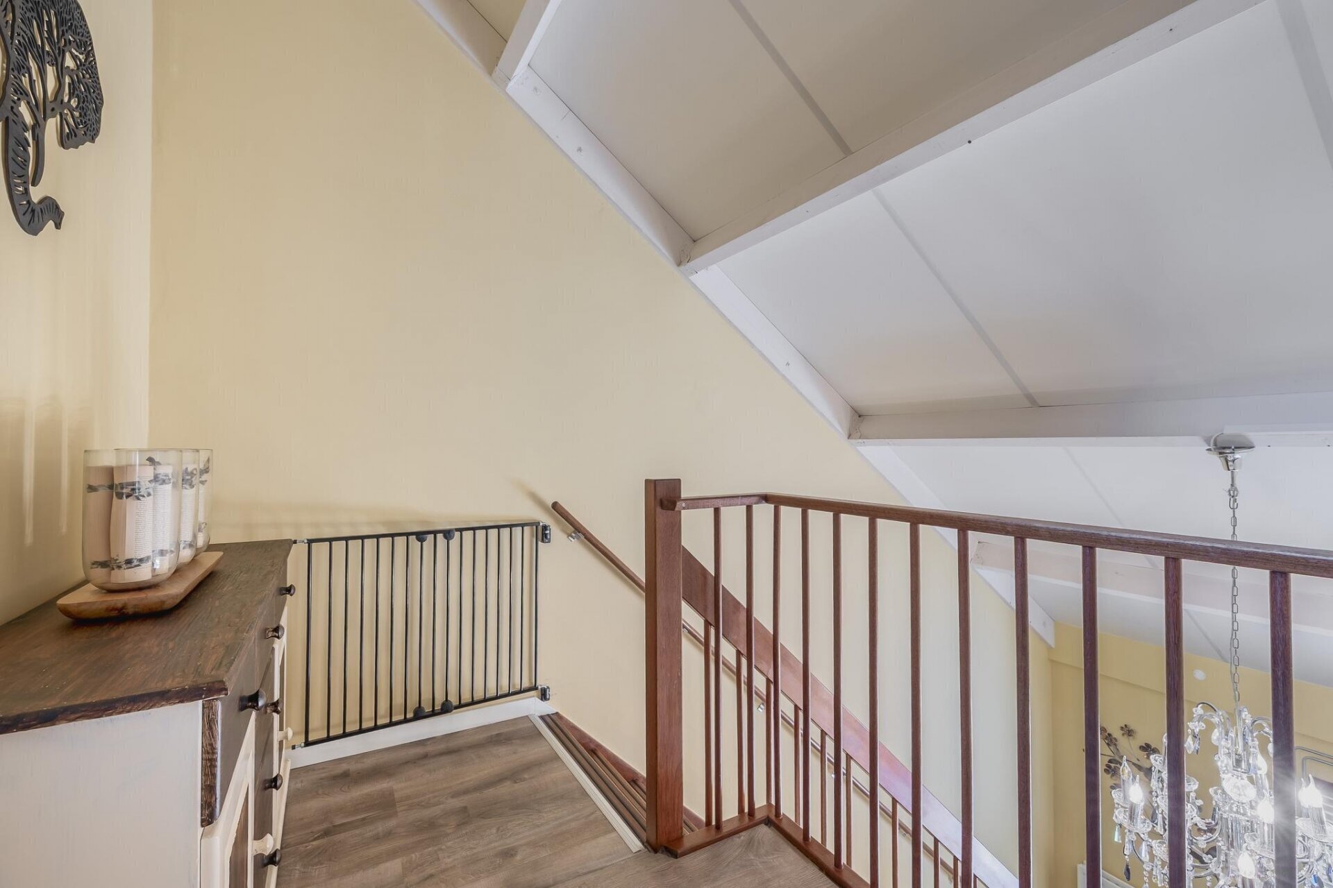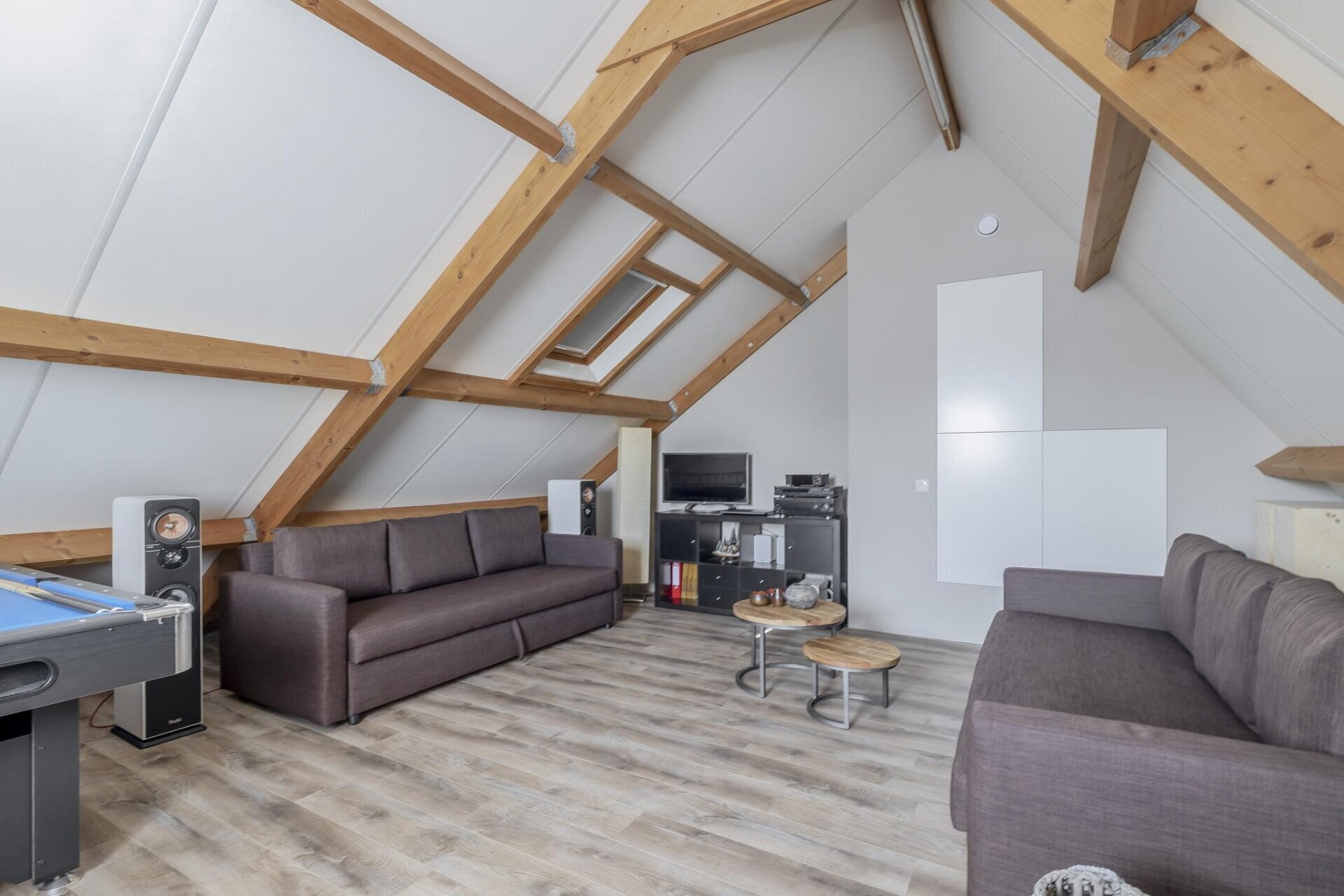 Op de verdiepingen vind je meerdere slaapkamers, waarvan de grootste zich op de eerste etage bevindt. In totaal telt het woondeel vier kamers, dus plek genoeg voor een gezin, een thuiskantoor of logeerkamer. De zolderverdieping is bereikbaar via een vaste trap en biedt nog extra mogelijkheden voor bijvoorbeeld een hobbyruimte of opslag.