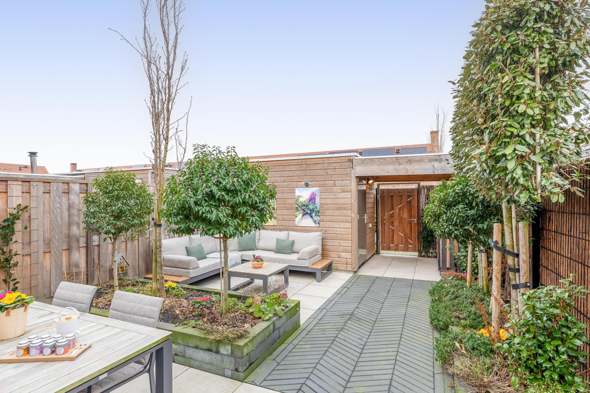 De diepe achtertuin is fraai aangelegd met mooie beplanting, twee terrassen, een border en een veranda naast de berging. Door de ligging op het noordwesten geniet je hier van de middag- en avondzon. Er is voldoende ruimte voor een loungehoek, een eettafel en speelruimte voor kinderen.