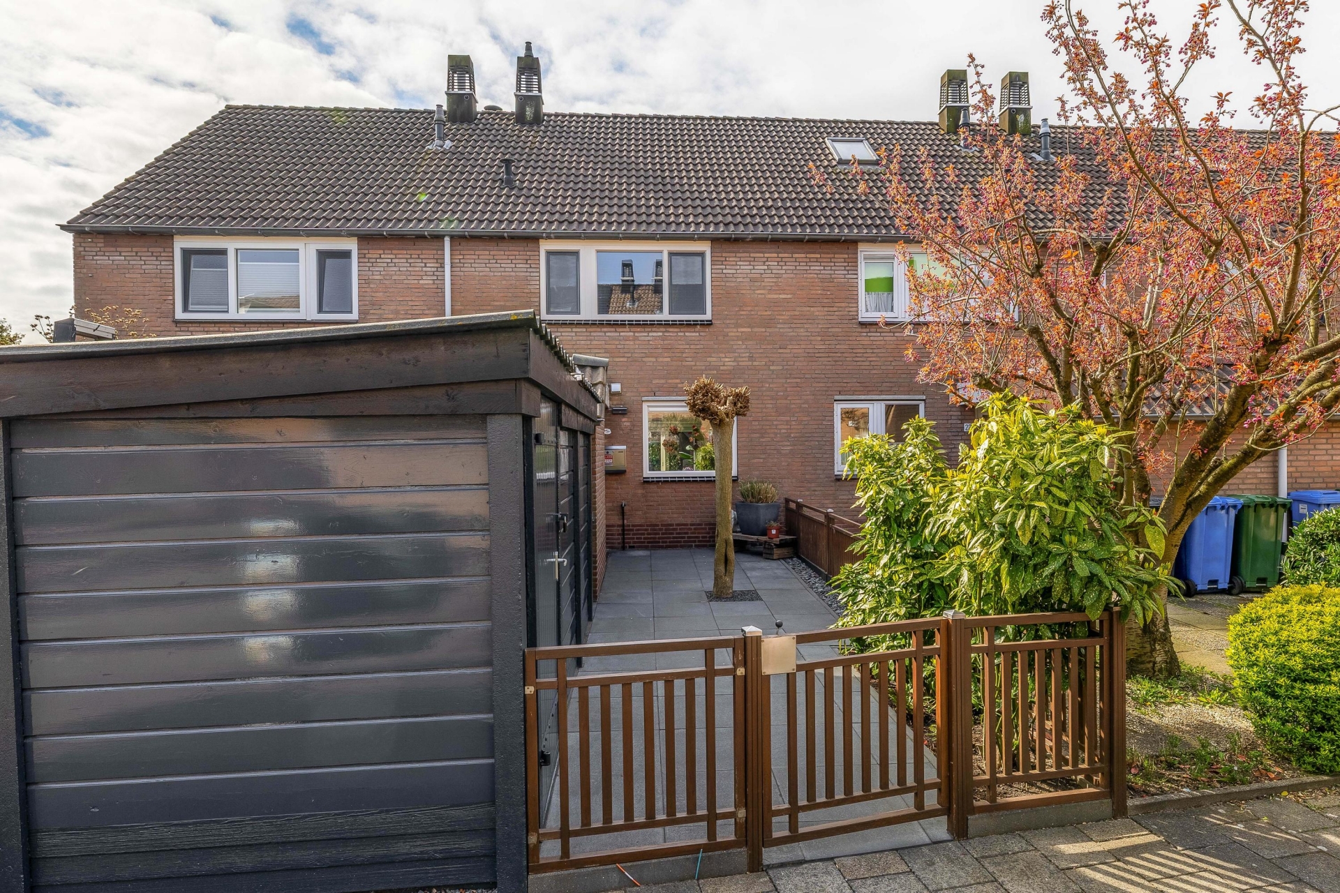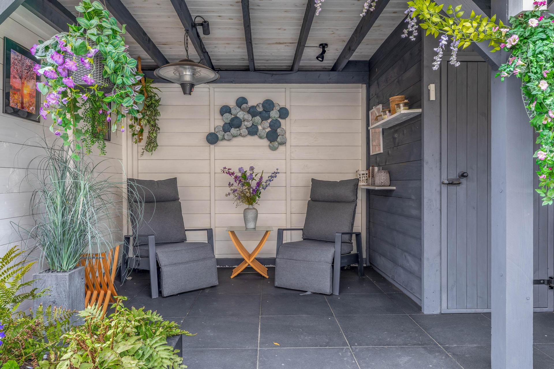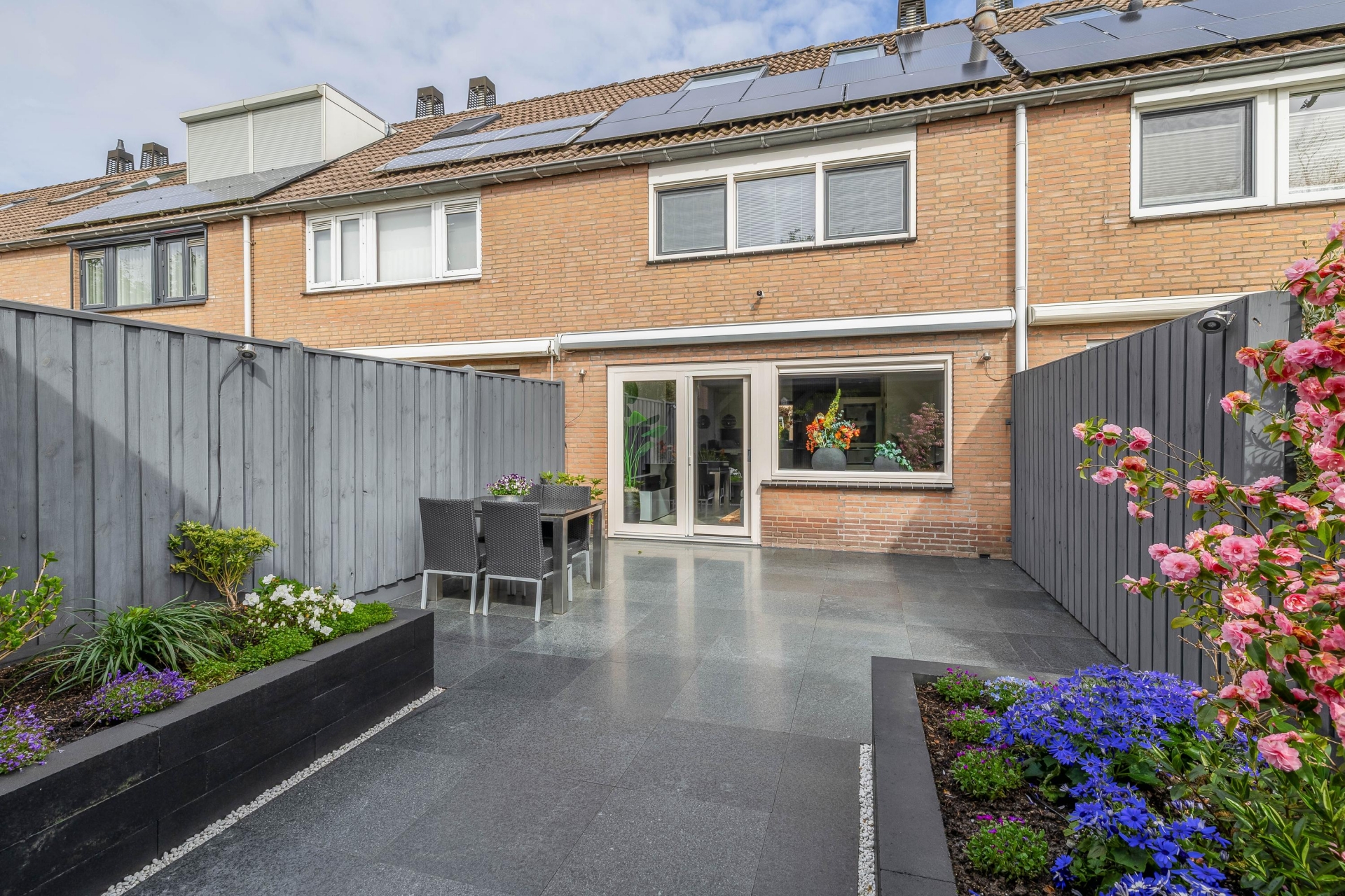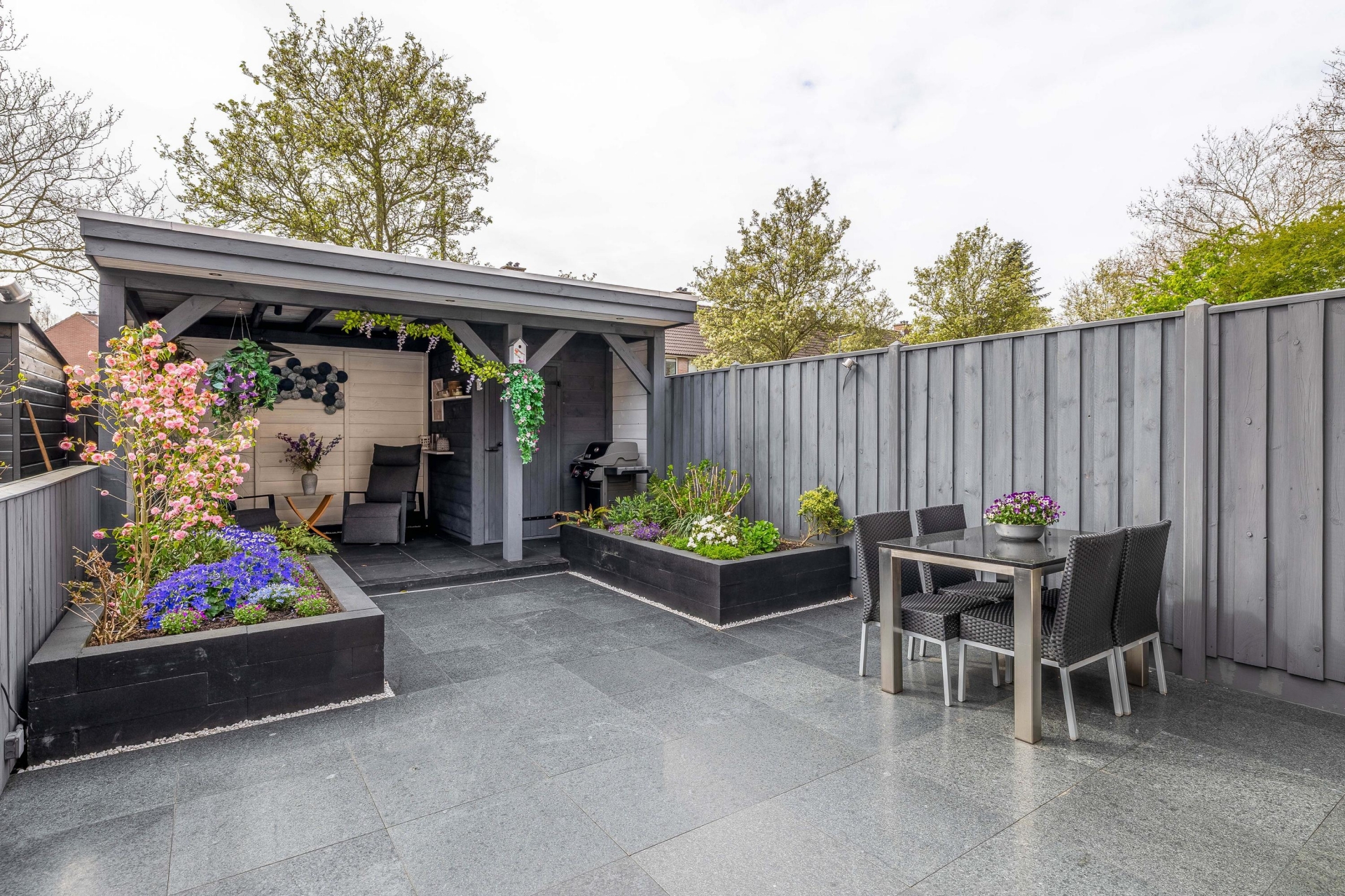 De achtertuin is gelegen op het zuiden en is voorzien van een overkapping met berging en de tuin is volledig verzorgd en onderhoudsvriendelijk aangelegd. Hier geniet je de hele dag van de zon en heb je voldoende ruimte voor een lounge set, eettafel of groenvoorziening. Dankzij de verzorgde inrichting is dit een plek waar je direct kunt ontspannen.