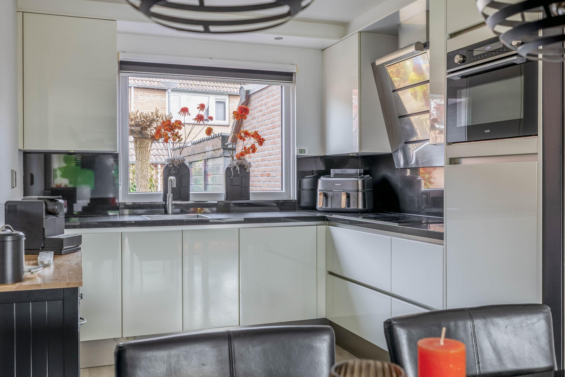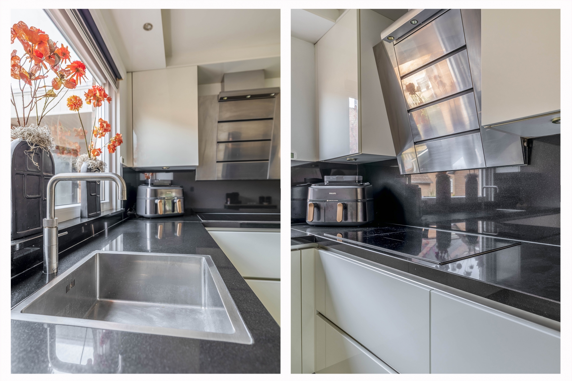 Aan de voorzijde bevindt zich de gemoderniseerde keuken. Deze is praktisch ingericht en voorzien van alle benodigde apparatuur, waardoor je hier comfortabel kookt en leeft. De combinatie van de open indeling en de verzorgde afwerking maakt dit een plek waar je je direct thuis voelt.