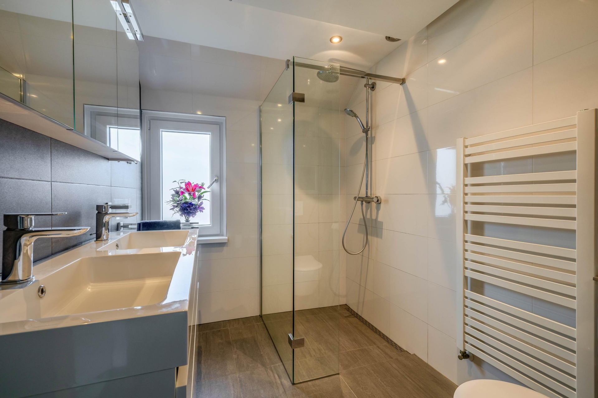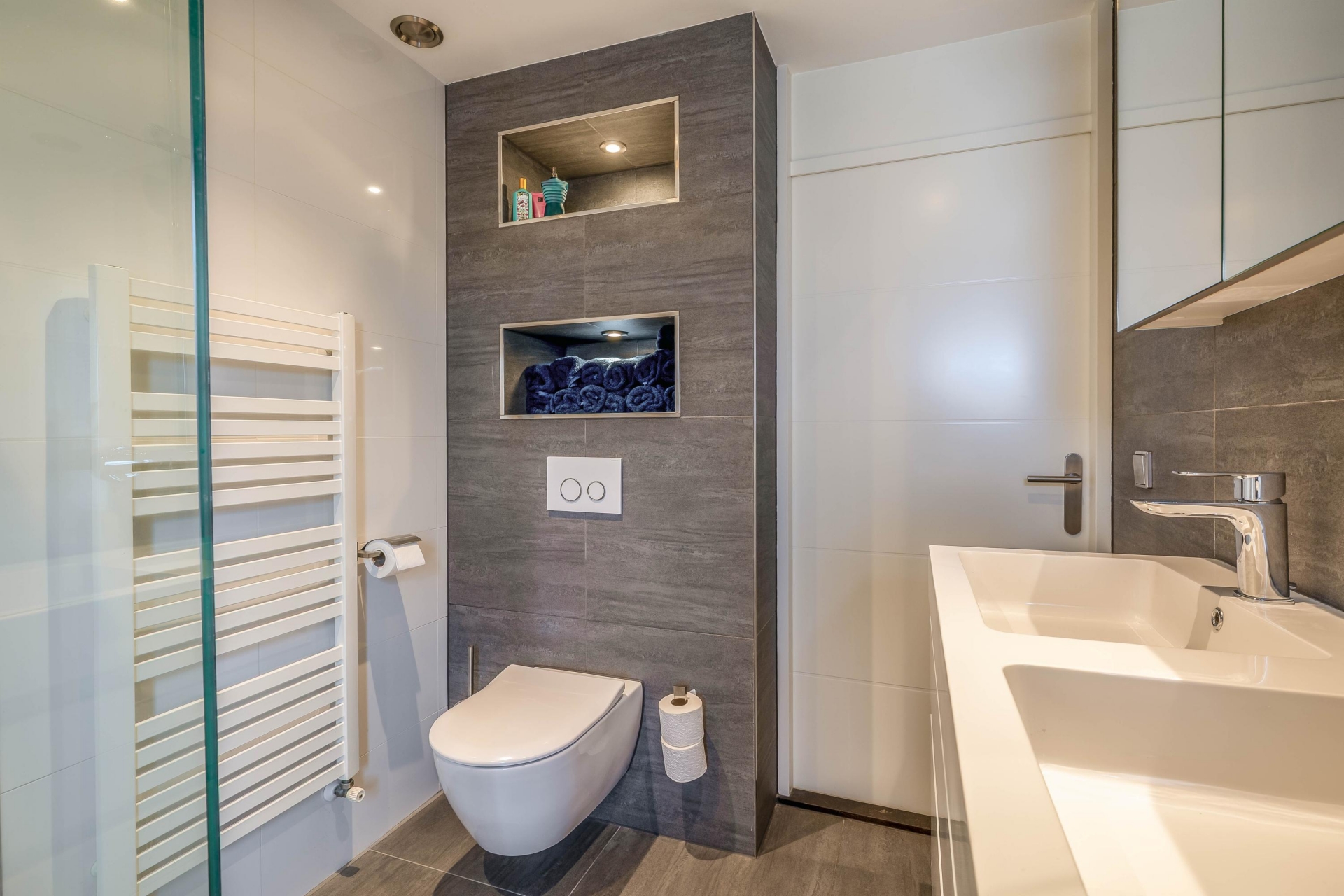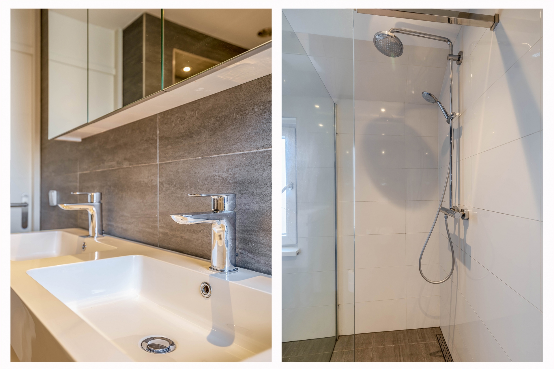 De badkamer is recent vernieuwd en heeft een moderne uitstraling. Hier vind je een ruime inloopdouche, toilet en een strak wastafelmeubel. Ook het toilet beneden is vernieuwd, wat bijdraagt aan het verzorgde totaalplaatje van het huis. Alles is klaar voor gebruik, zonder dat je nog hoeft te klussen.