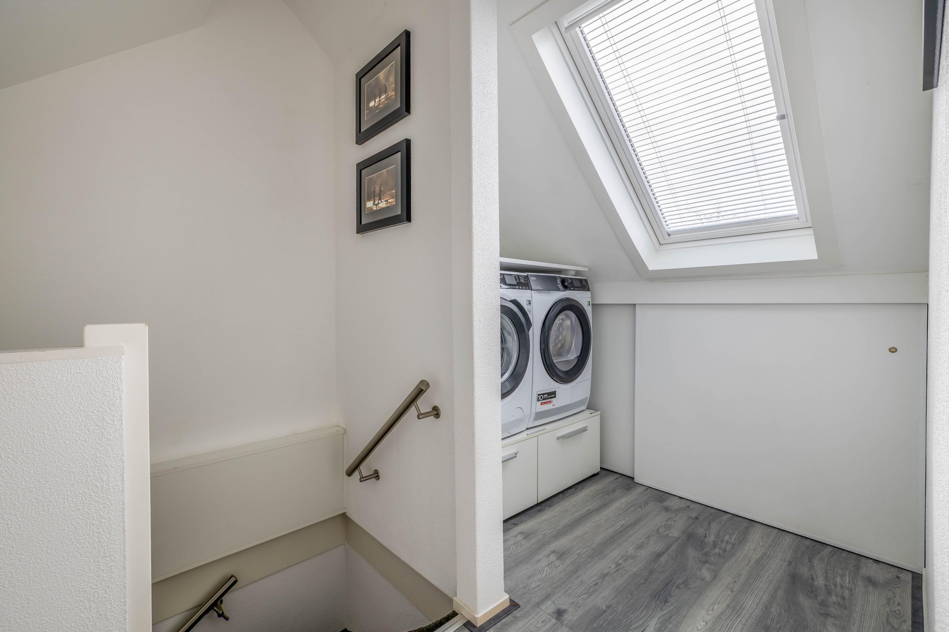De tweede verdieping is een waardevolle toevoeging aan het huis. Hier vind je een ruime overloop met opstelplaats voor de wasmachine en droger, evenals extra bergruimte. Ideaal voor het netjes opbergen van spullen die je niet dagelijks nodig hebt.
