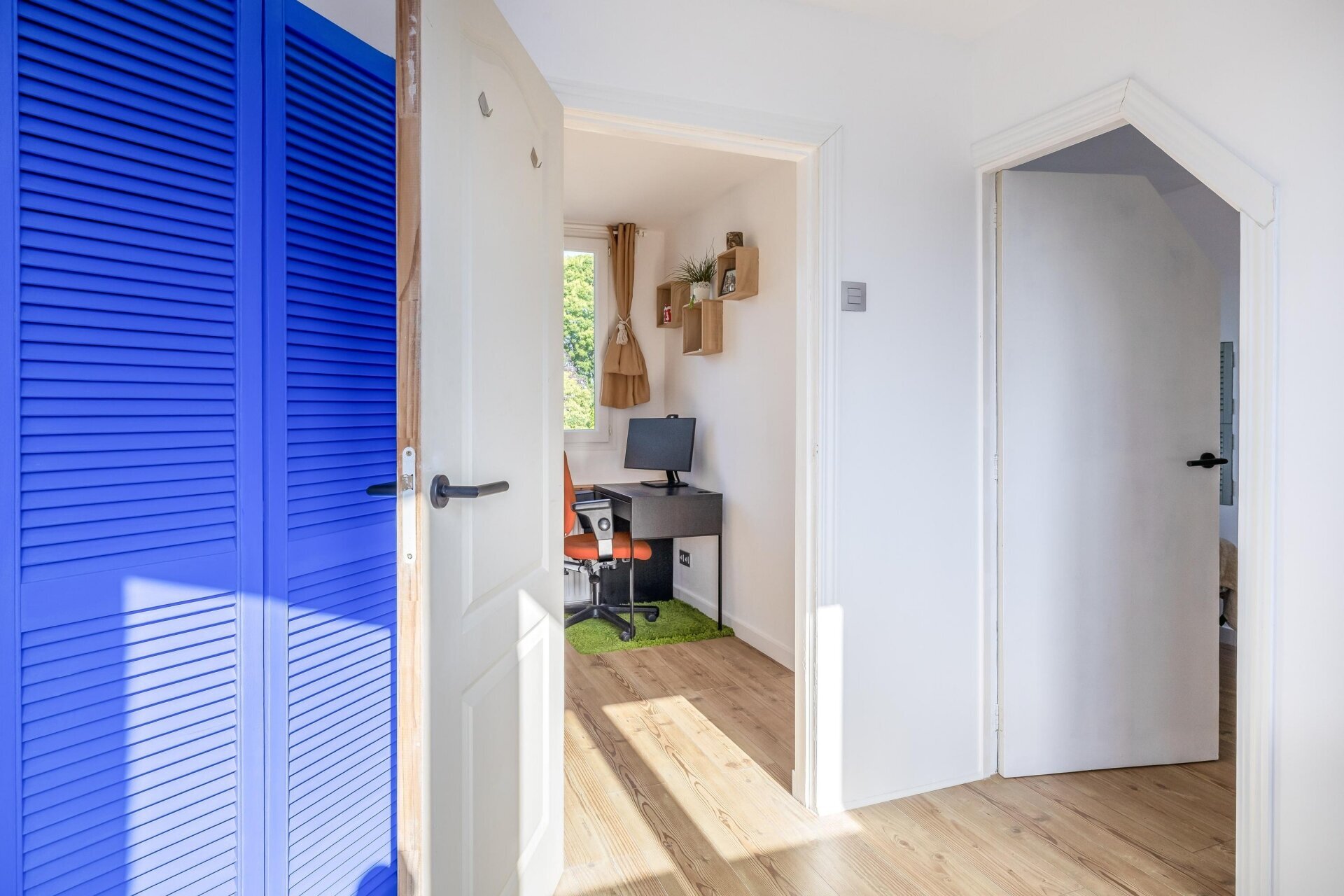 Op de eerste verdieping vind je twee volwaardige slaapkamers, verdeeld over een praktische indeling. De grootste kamer is perfect als hoofdslaapkamer en biedt uitzicht op de rustige achterzijde. De overig kamer is ideaal als kinderkamer, logeerkamer of werkkamer – zeker in combinatie met de rustige ligging en het vele daglicht.