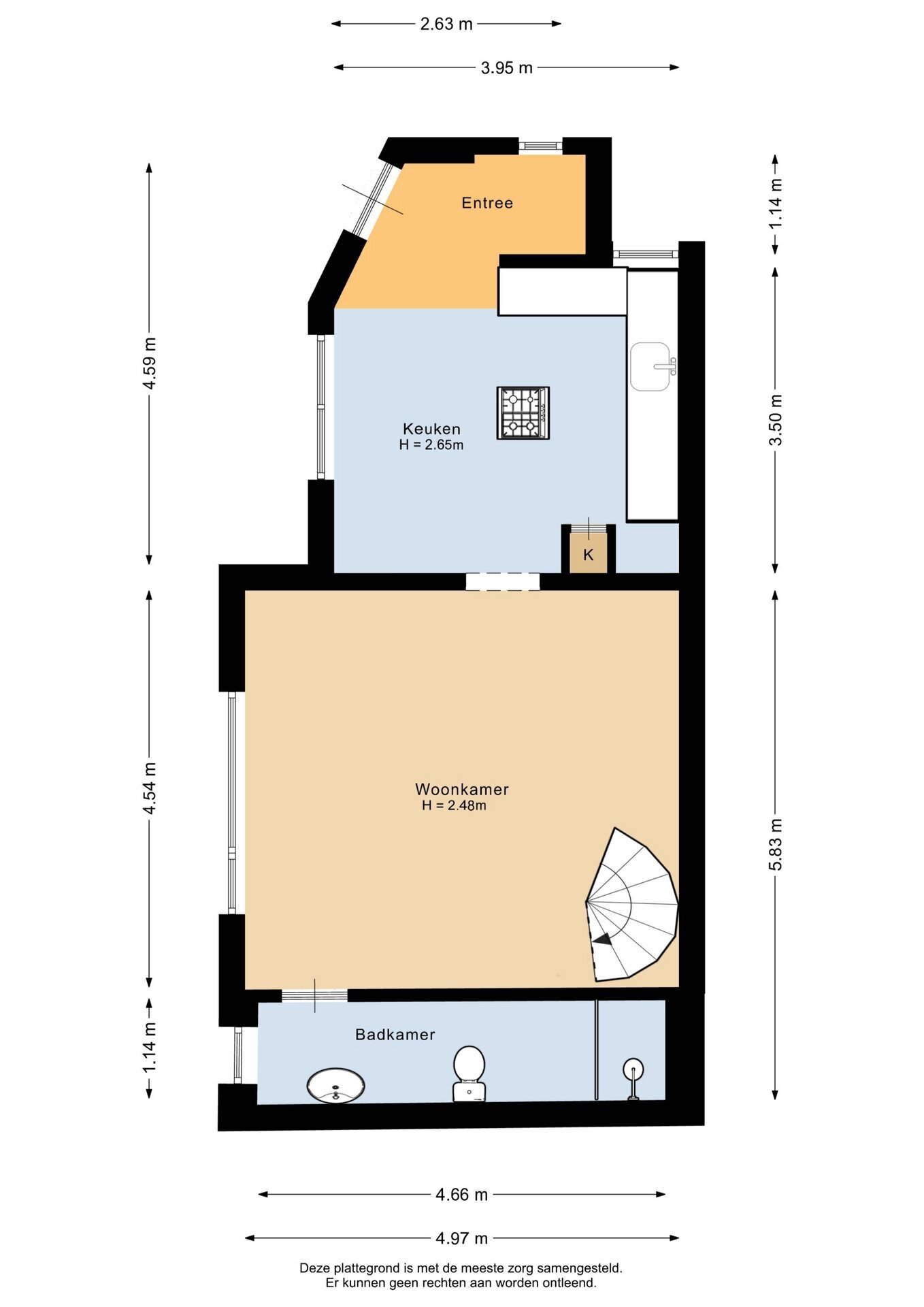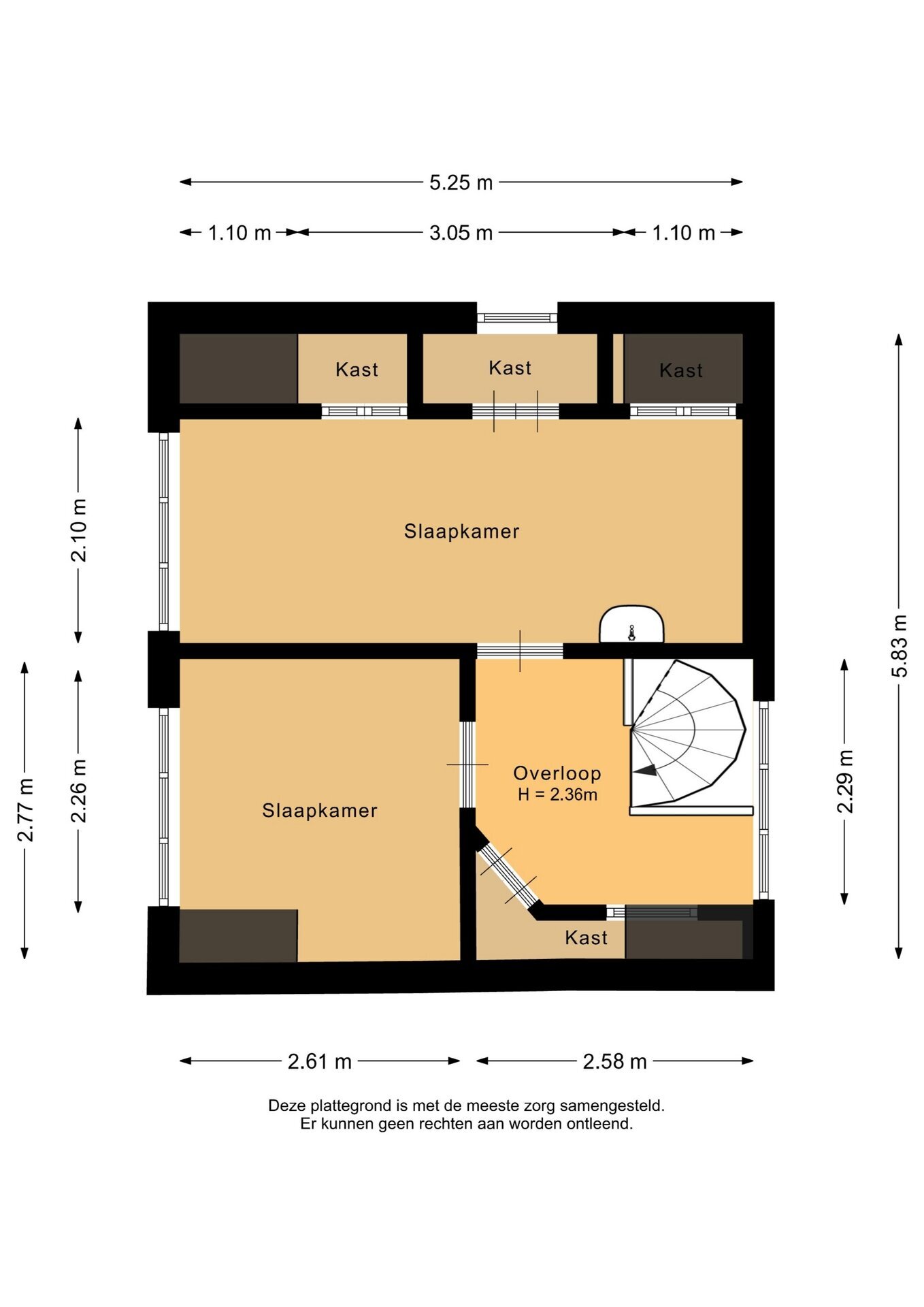 “Deze informatie is door ons met de nodige zorgvuldigheid samengesteld. Onzerzijds wordt echter geen enkele aansprakelijkheid aanvaard voor enige onvolledigheid, onjuistheid of anderszins, dan wel de gevolgen daarvan. Alle opgegeven maten en oppervlakten zijn indicatief.”
