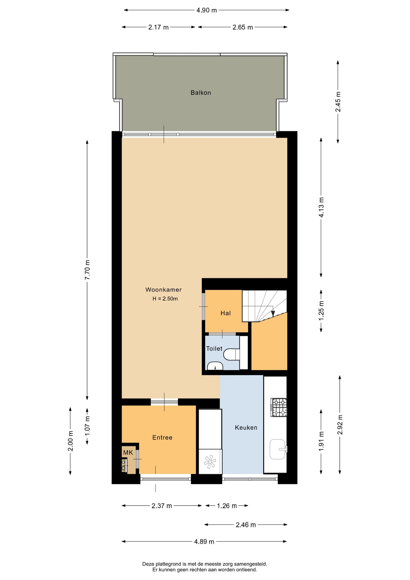 “Deze informatie is door ons met de nodige zorgvuldigheid samengesteld. Onzerzijds wordt echter geen enkele aansprakelijkheid aanvaard voor enige onvolledigheid, onjuistheid of anderszins, dan wel de gevolgen daarvan. Alle opgegeven maten en oppervlakten zijn indicatief.”