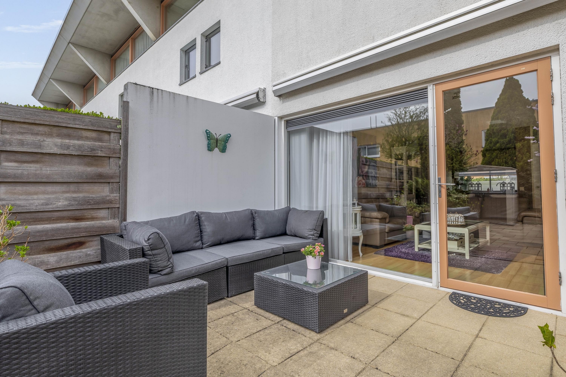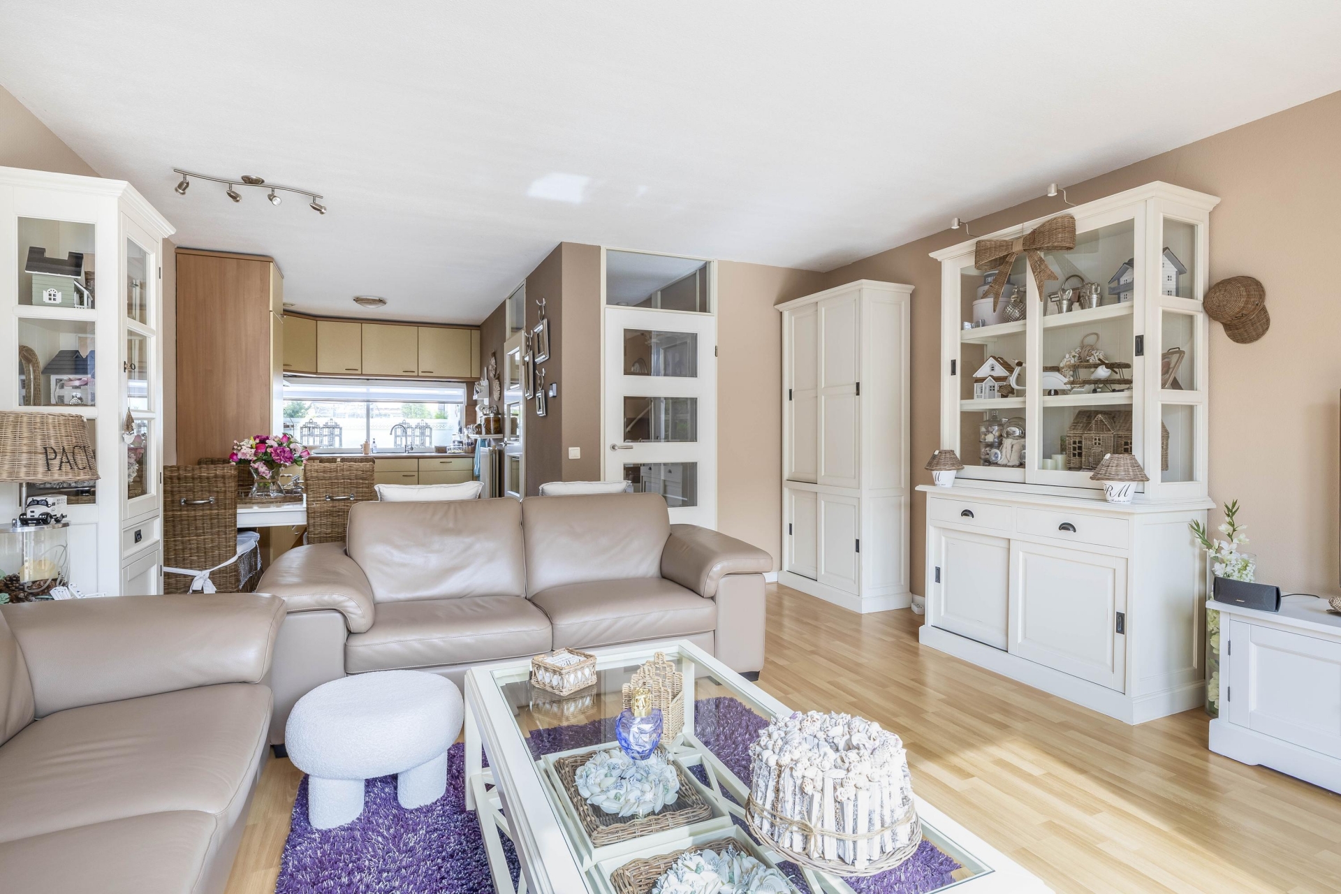 De lichte woonkamer sluit naadloos aan op de keuken en wordt gekenmerkt door grote raampartijen, waardoor er veel natuurlijk licht binnenvalt. Vanuit de woonkamer heb je toegang tot de zonnige achtertuin op het zuiden, die tevens beschikt over een achterom.