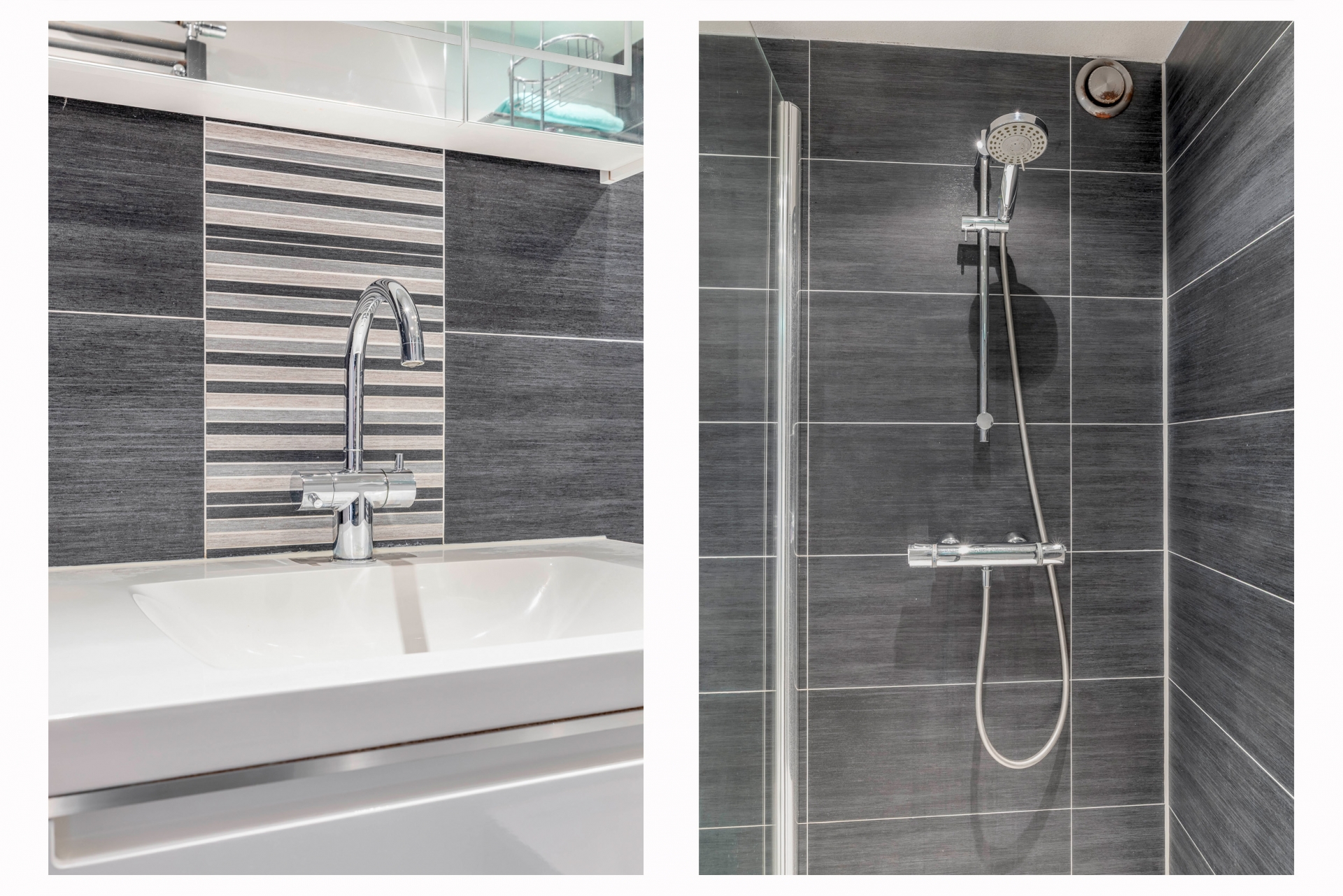 De centraal gelegen badkamer is ruim en verzorgd, en voorzien van een wastafelmeubel en een inloopdouche.