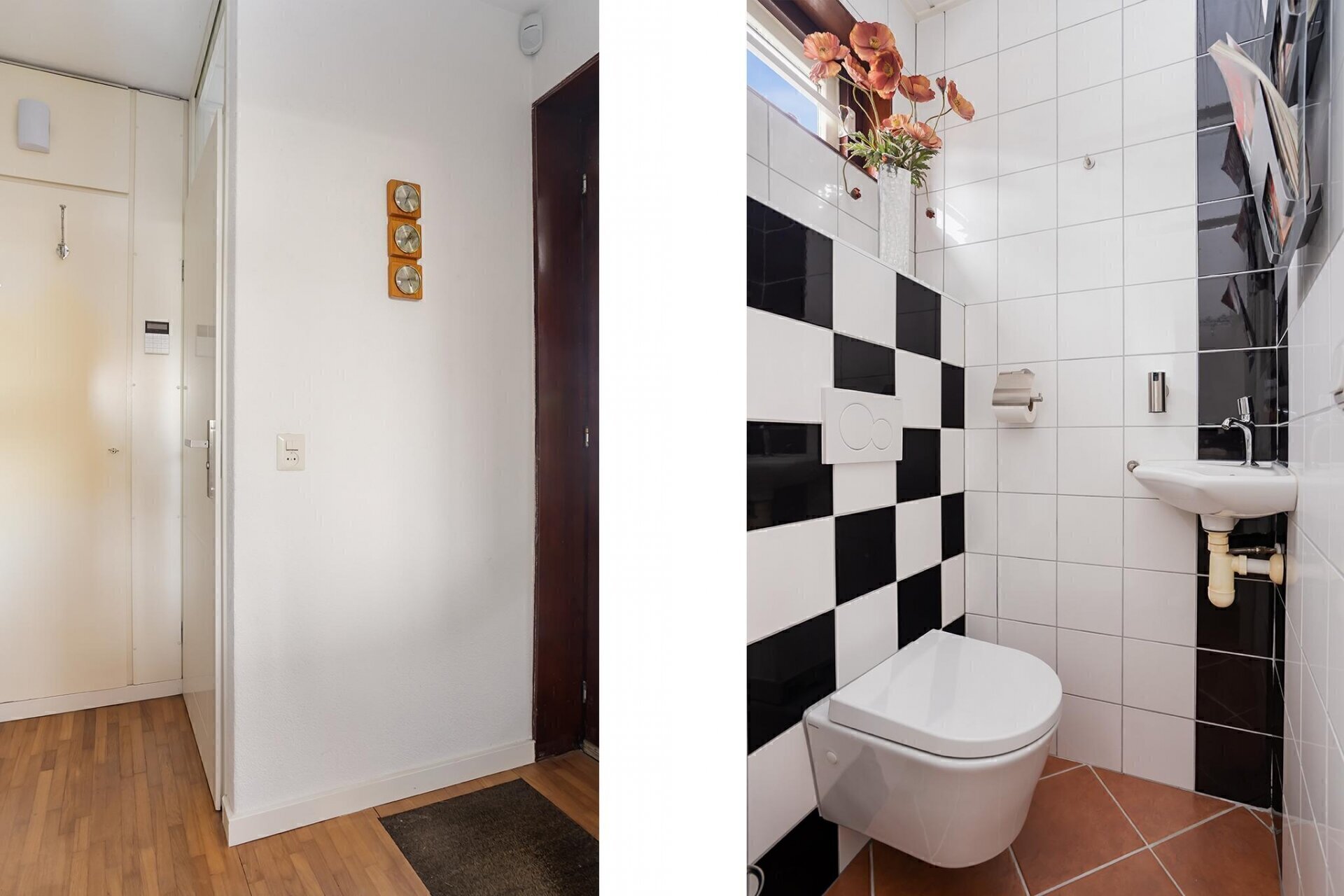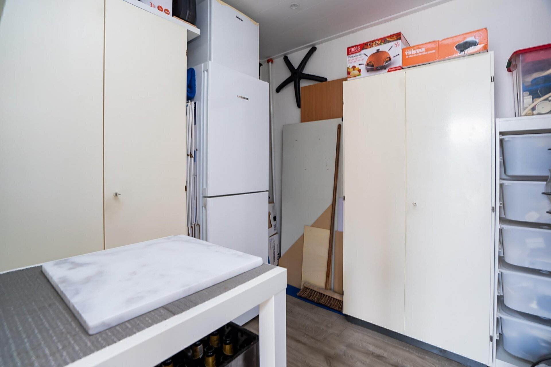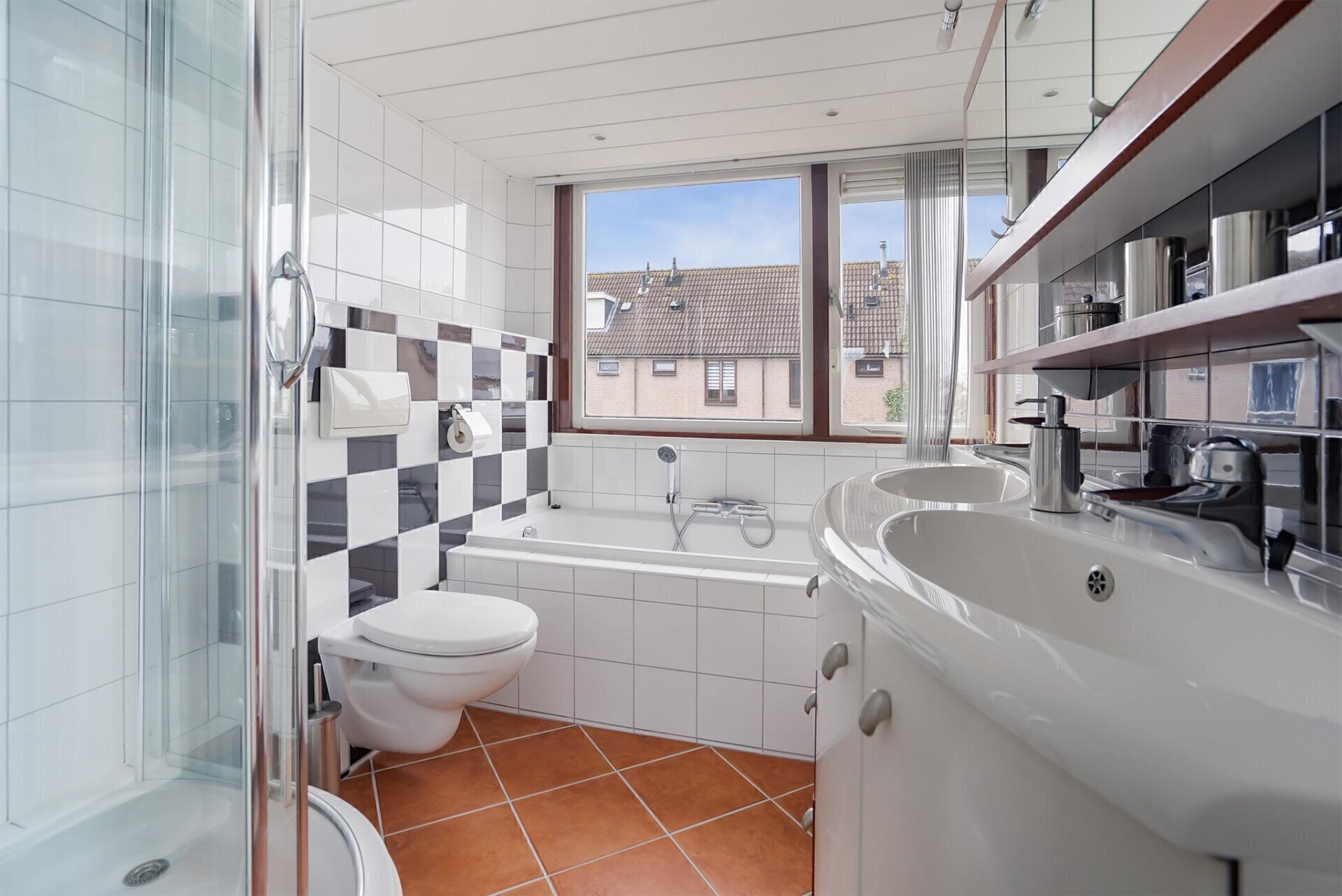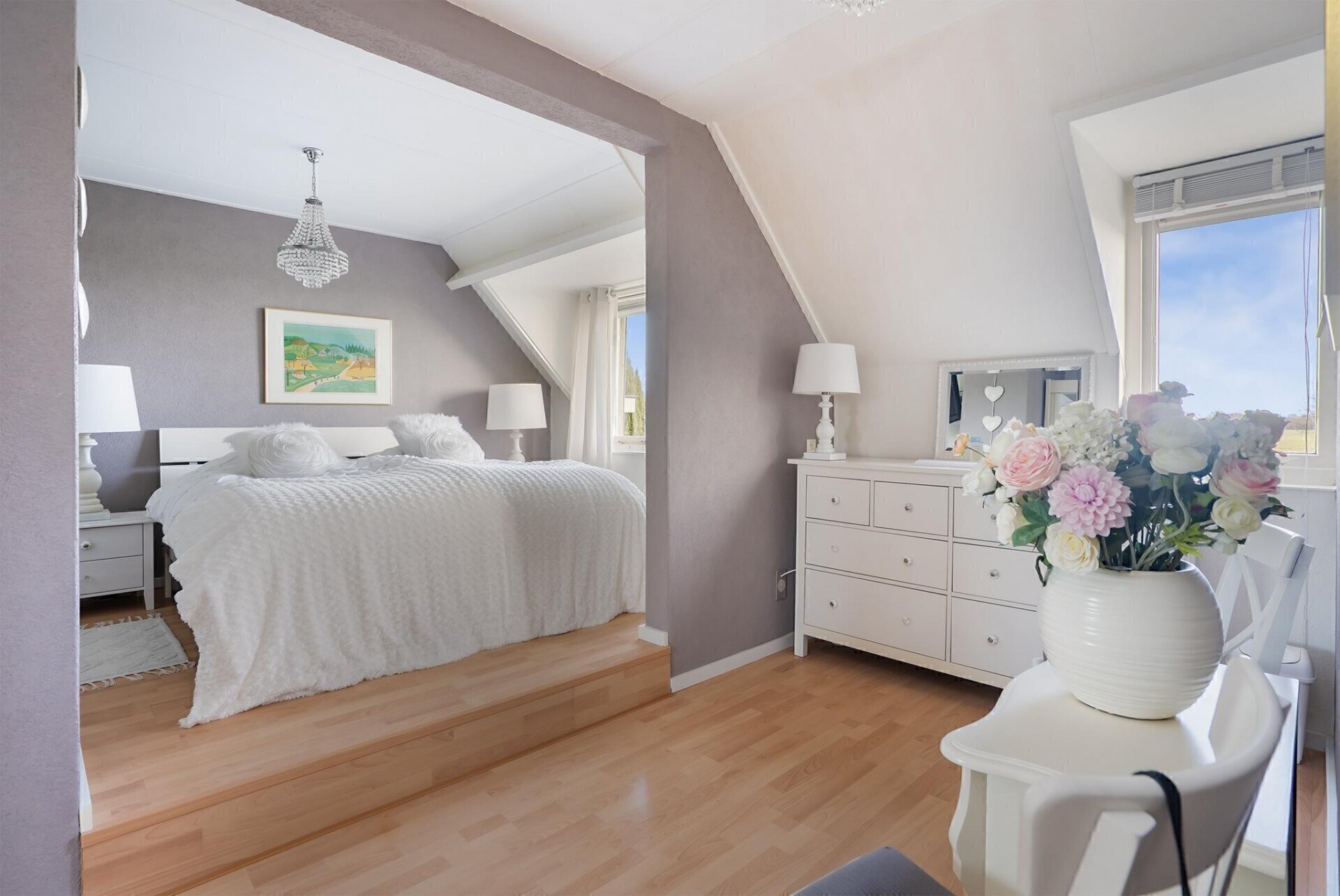 We komen binnen in de hal met ruimte voor de garderobe, de toilet en de meterkast (vernieuwd in 2019). De living is voorzien van een ruime woonkamer met een sfeervolle gashaard en prachtig uitzicht over de polder en een keuken in hoekopstelling voorzien van diverse inbouwapparatuur. De 1e verdieping telt 3 ruime slaapkamers waarvan er 2 zijn vergroot bij het verlengen van de kap in 1997. De badkamer is van alle gemakken voorzien en beschikt over een 2e toilet, ligbad, dubbele wastafel en douchecabine.