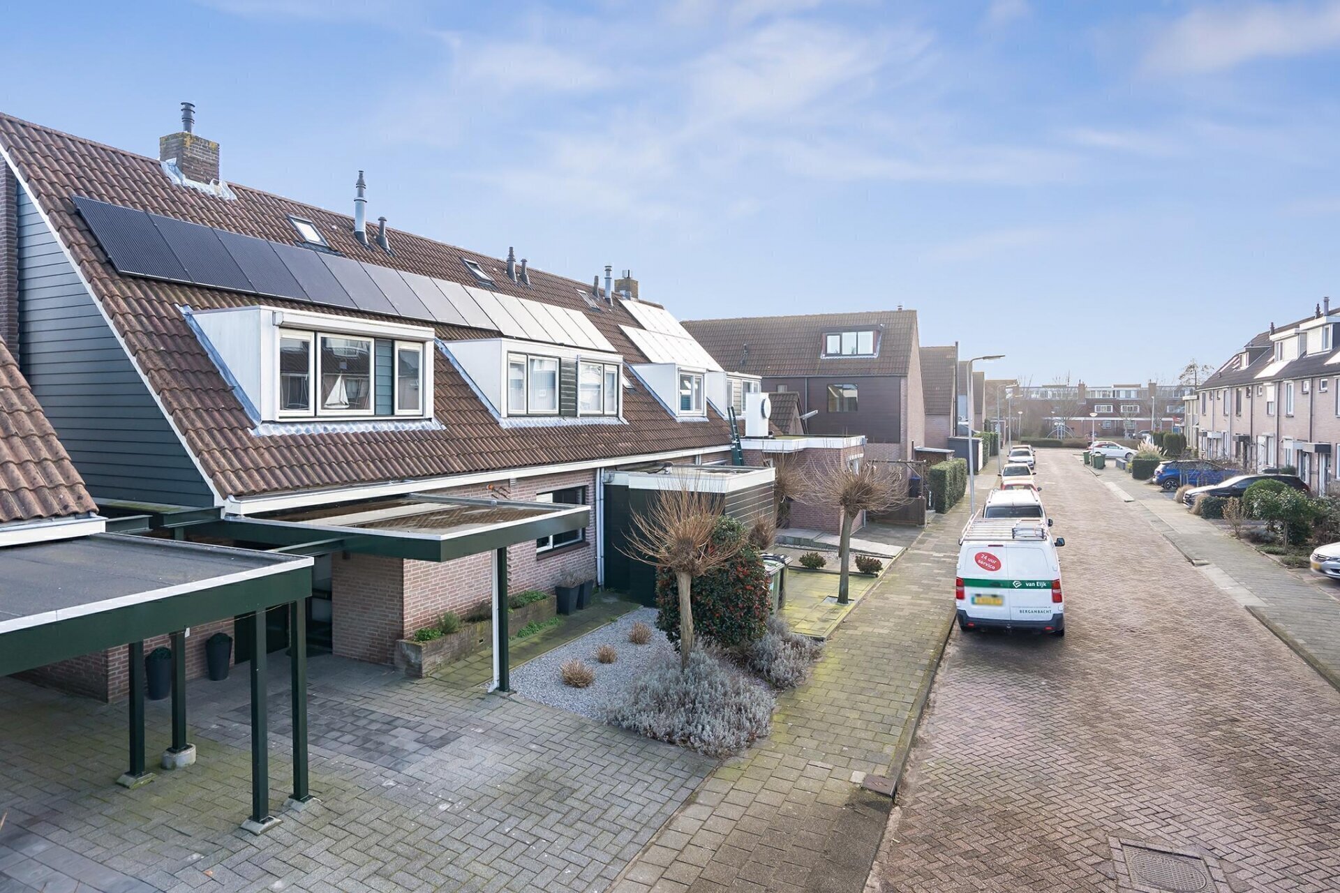 De woning ligt aan de oostzijde van het dorpscentrum, centraal in de wijk aan een brede straat met meer dan genoeg parkeerruimte rondom. Voor gezinnen een ideale omgeving, op meerdere plaatsen zijn royale speeltuinen met toestellen te vinden en de scholen en overige voorzieningen zijn op loopafstand.