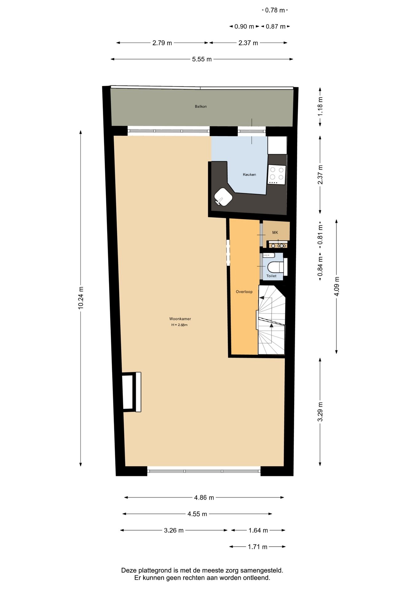 “Deze informatie is door ons met de nodige zorgvuldigheid samengesteld. Onzerzijds wordt echter geen enkele aansprakelijkheid aanvaard voor enige onvolledigheid, onjuistheid of anderszins, dan wel de gevolgen daarvan. Alle opgegeven maten en oppervlakten zijn indicatief.”