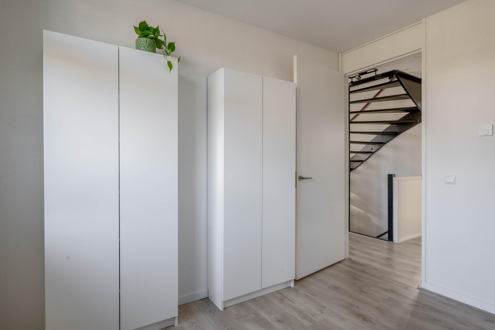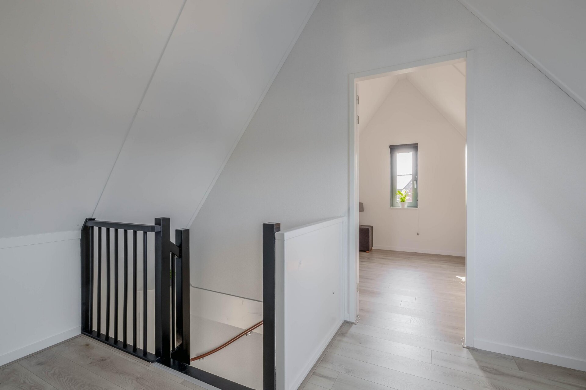 De eerste verdieping biedt drie slaapkamers, waarvan de grootste is voorzien van een royale inloopkast. De badkamer is strak afgewerkt en voorzien van een inloopdouche, een enkele wastafel met meubel en een toilet. Voor extra comfort is hier een elektrische radiator geplaatst, ideaal tijdens koude ochtenden of frisse dagen.