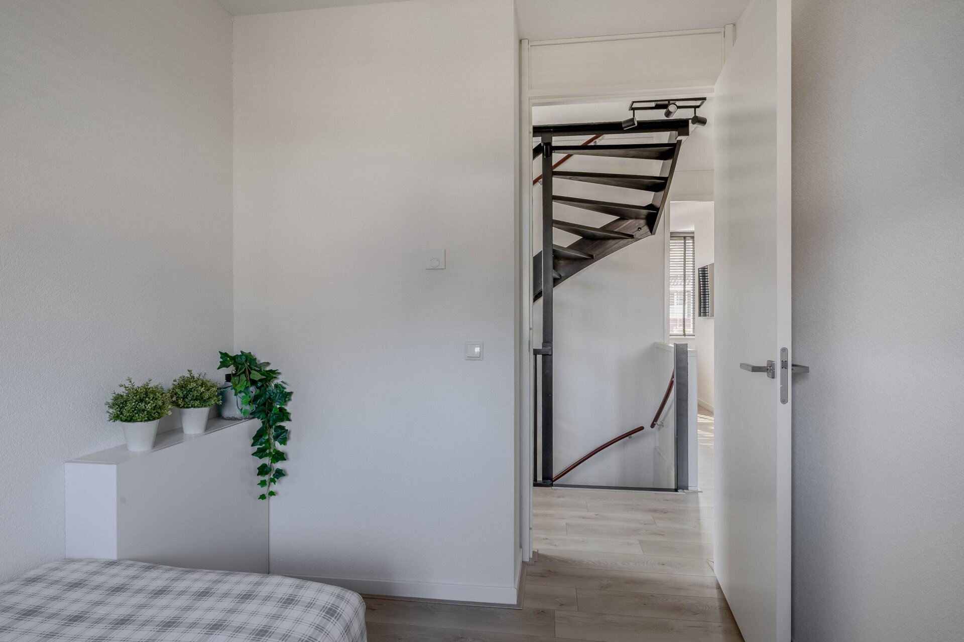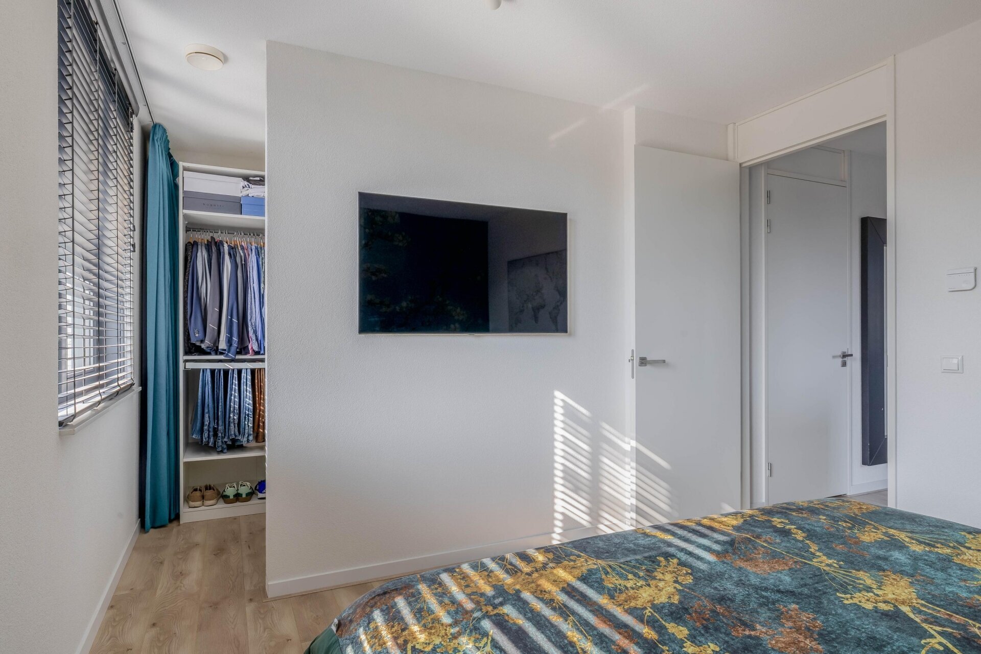 Op de tweede verdieping bevindt zich één volwaardige slaapkamer. De tweede kamer op deze verdieping is ingericht als technische ruimte met de opstelling voor de wasmachine, de warmtepomp, het WTW-systeem en de omvormer van de zonnepanelen. Er zijn geen dakkapellen aanwezig, maar de rechte gevels en goede plafondhoogte zorgen voor voldoende ruimte en lichtinval.
