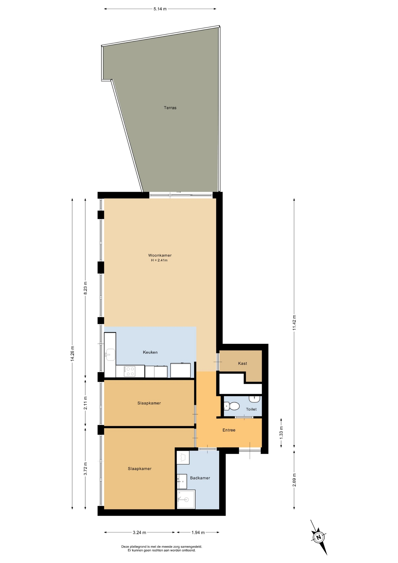 “Deze informatie is door ons met de nodige zorgvuldigheid samengesteld. Onzerzijds wordt echter geen enkele aansprakelijkheid aanvaard voor enige onvolledigheid, onjuistheid of anderszins, dan wel de gevolgen daarvan. Alle opgegeven maten en oppervlakten zijn indicatief.”