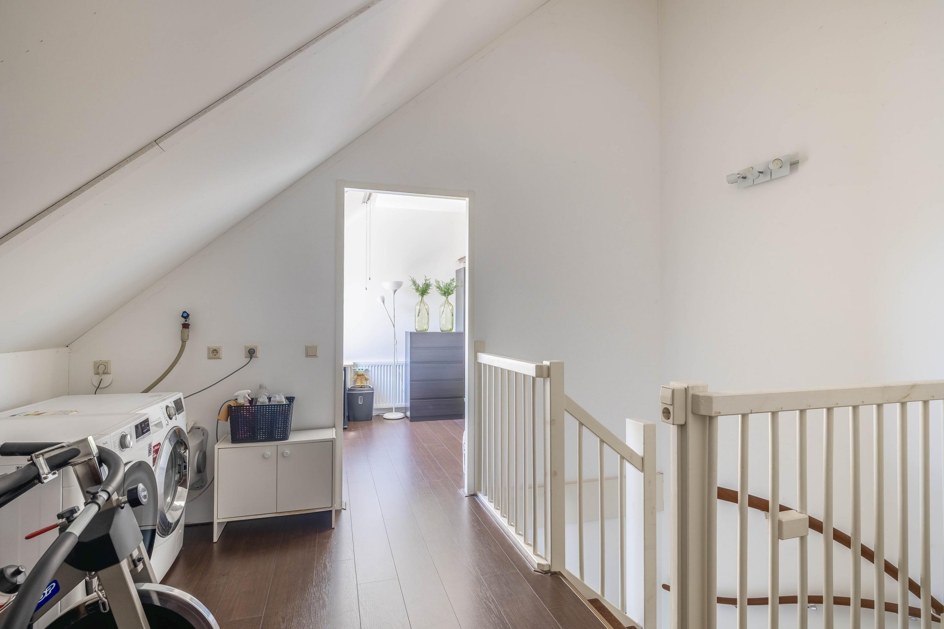 Voorzolder met wasmachine- en drogeraansluitingen en knieschotten voor extra bergruimte. Ruime slaapkamer aan de voorzijde (momenteel in gebruik als kantoor) met eveneens een Velux dakraam en toegang tot de bergvliering.