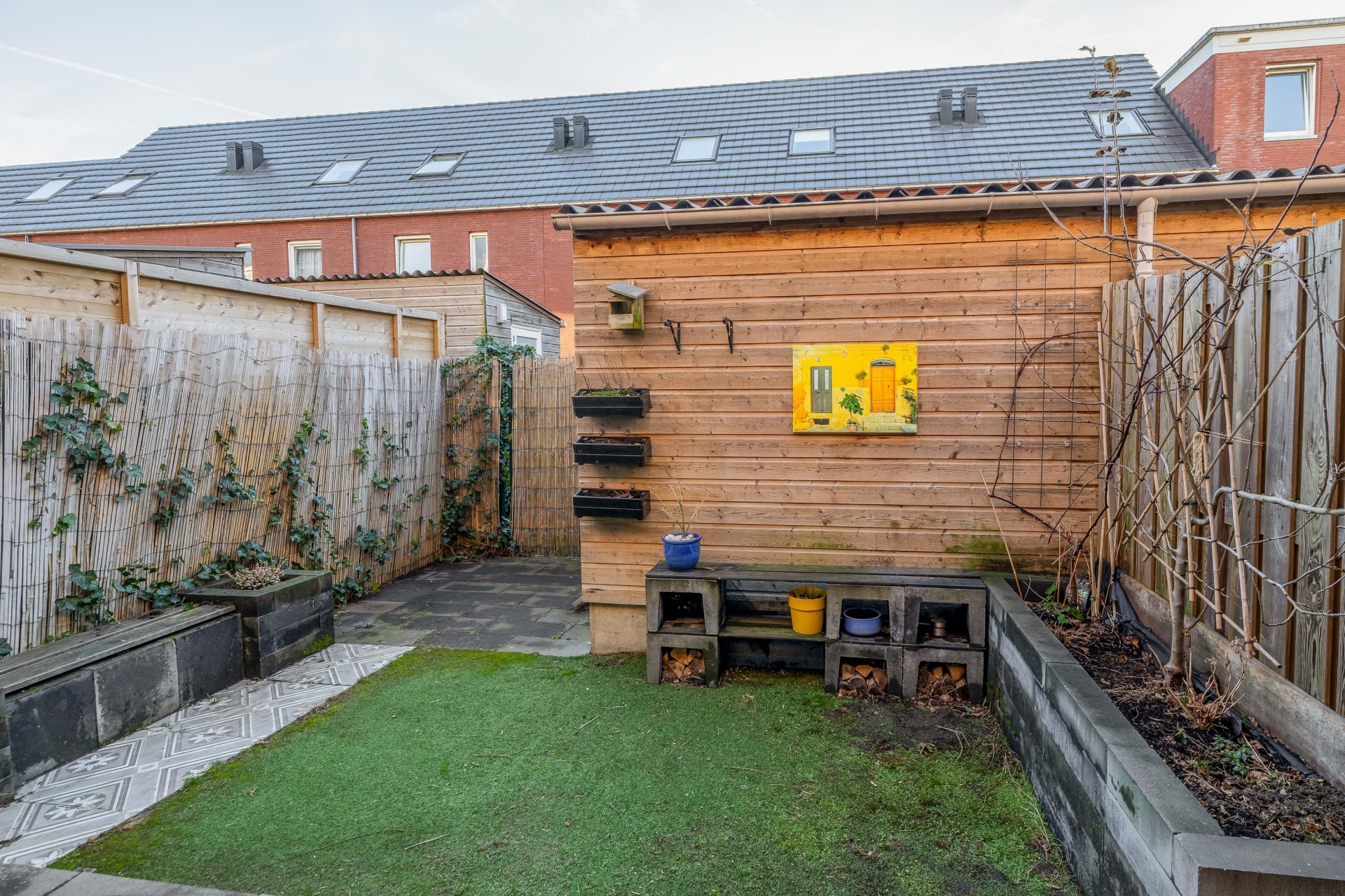 De achtertuin is gelegen op het zuiden en is een heerlijke plek om te ontspannen, met veel privacy. Hier geniet je van de zon van ’s middags tot in de avond. Achterin staat een houten berging, perfect voor fietsen of tuinspullen, en via het afgesloten achterpad ben je zo op weg.