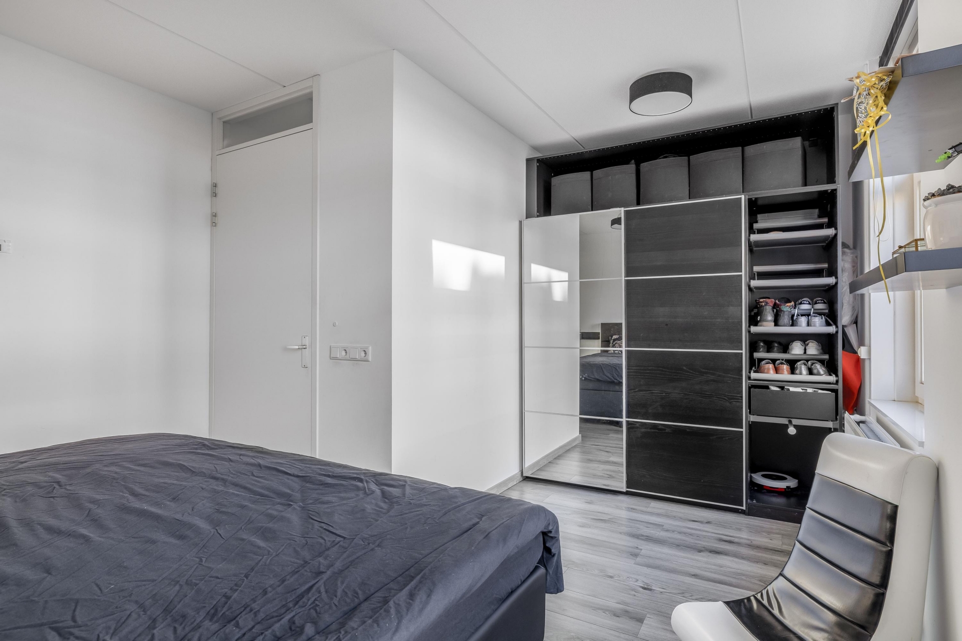 Op de eerste verdieping vind je een royale master bedroom aan de voorzijde, welke mogelijk op te delen is in twee kamers, en een tweede ruime slaapkamer aan de achterzijde, met grote ramen. Perfect als kinder-, werk- of logeerkamer. Beide slaapkamers zijn tevens voorzien van rolluiken zodat je het 's nachts (of overdag) zo donker kunt maken als je wil. De badkamer is modern ingericht met een ruime inloopdouche, dubbele wastafel en toilet.