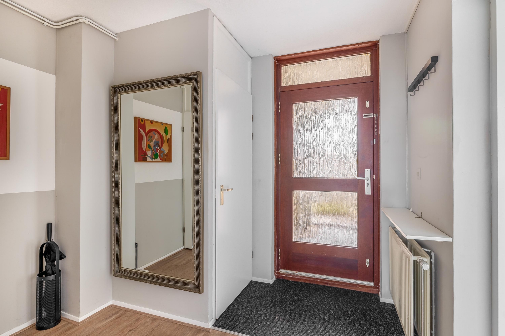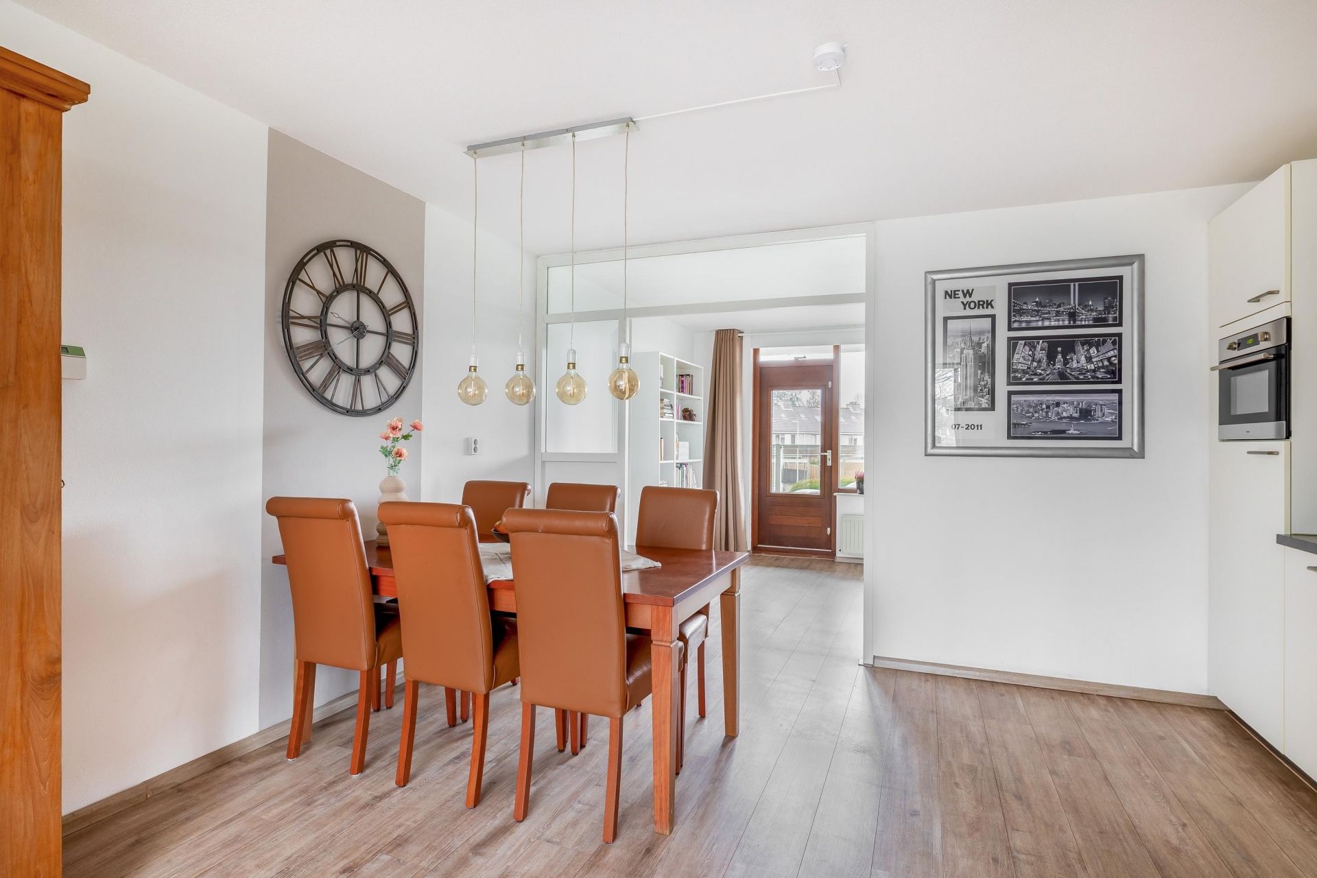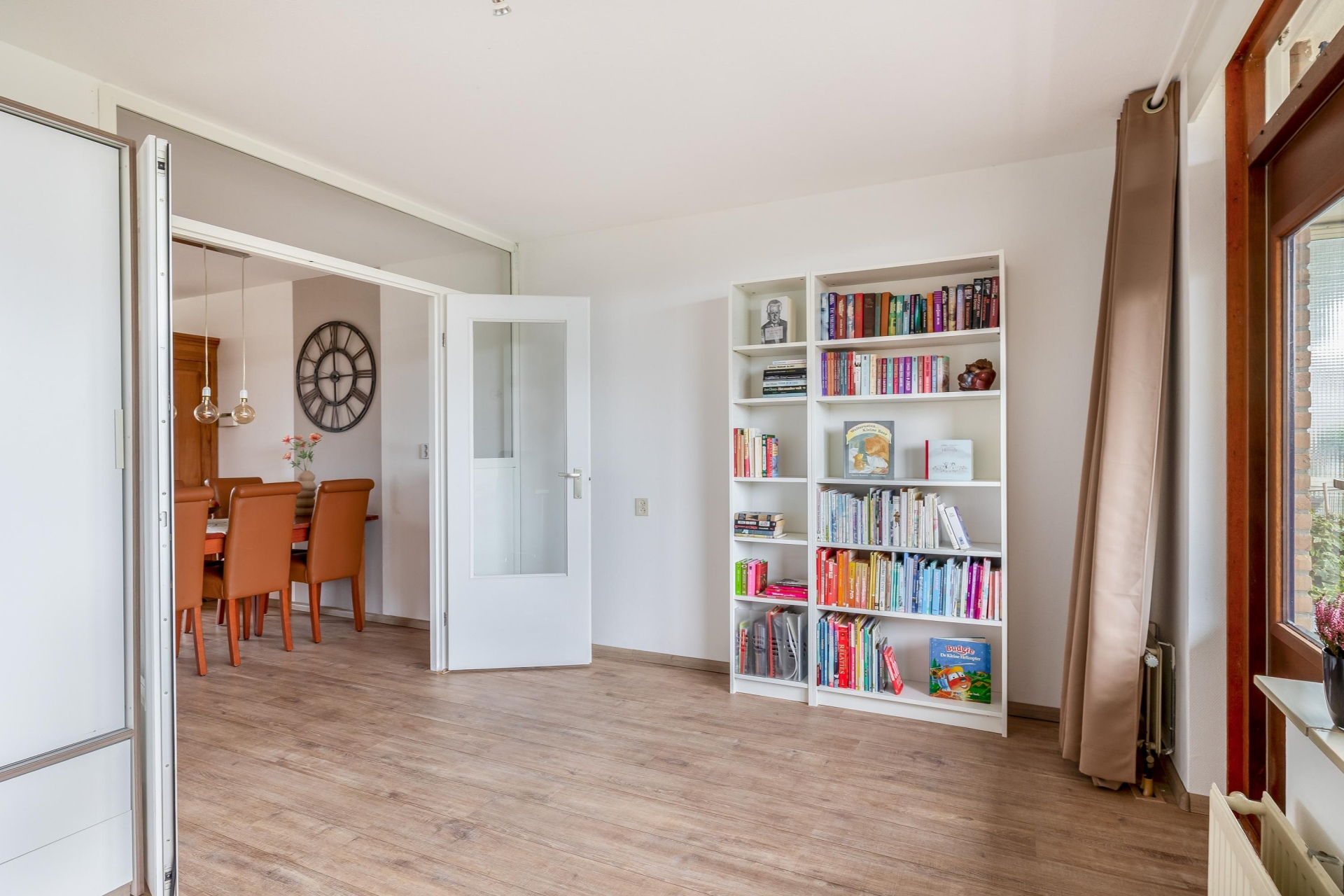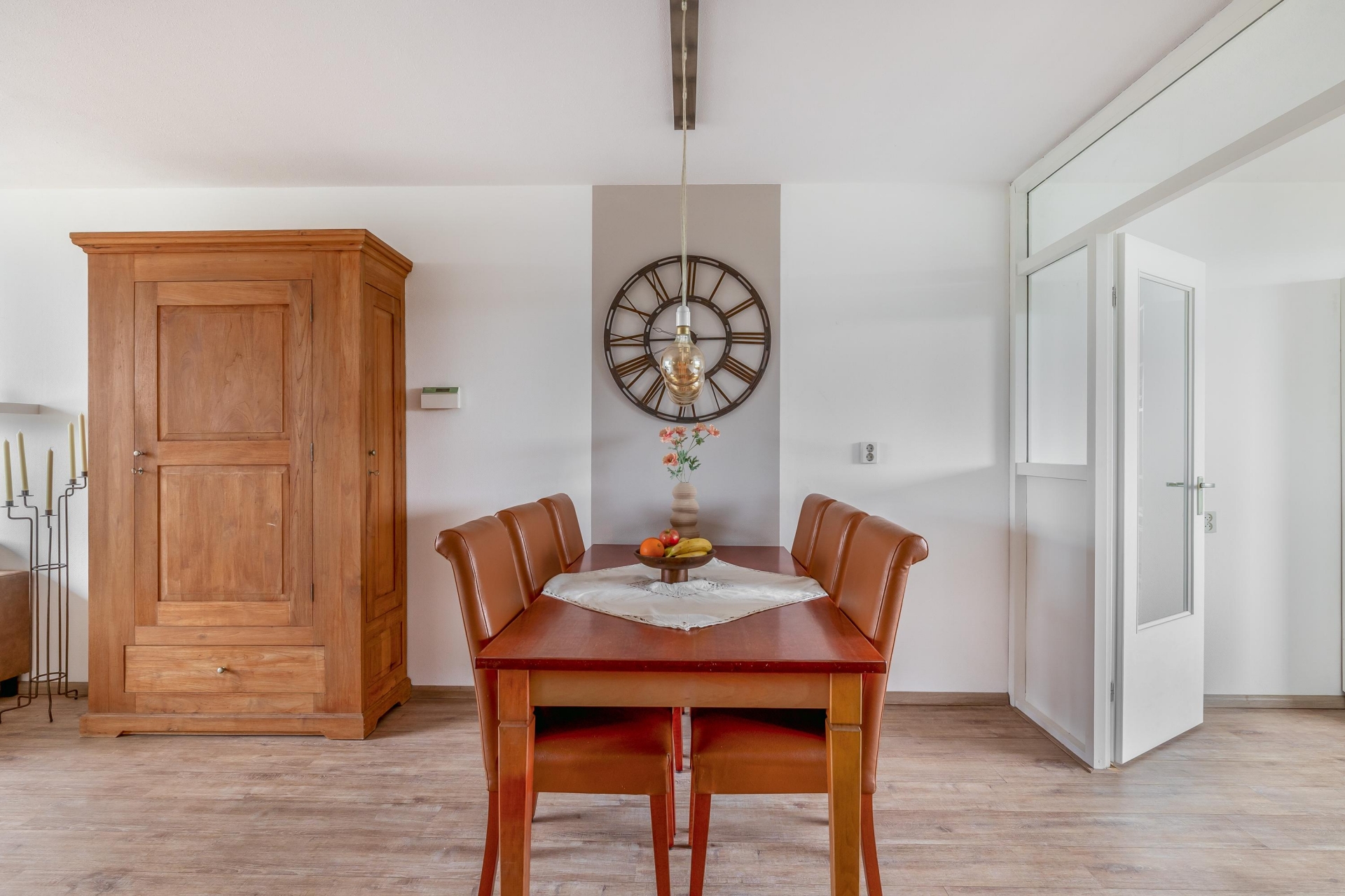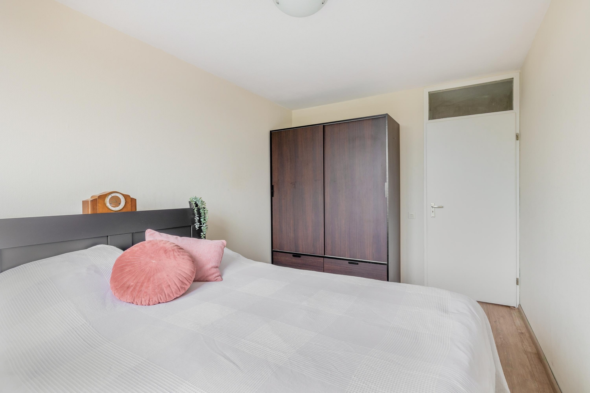 De woonkamer is een fijne, open ruimte met plek voor een royale zithoek én een gezellige eethoek. Dankzij de grote raampartijen valt het daglicht rijkelijk naar binnen. Via de slaapkamer aan de achterzijde stap je zo het balkon op, gelegen op het zuidoosten. Perfect voor een kop koffie in de ochtendzon of juist om ’s middags van het zonnetje te genieten. De warme kleur van de laminaatvloer zorgt voor een gezellige sfeer en een rustige basis voor elke woonstijl.