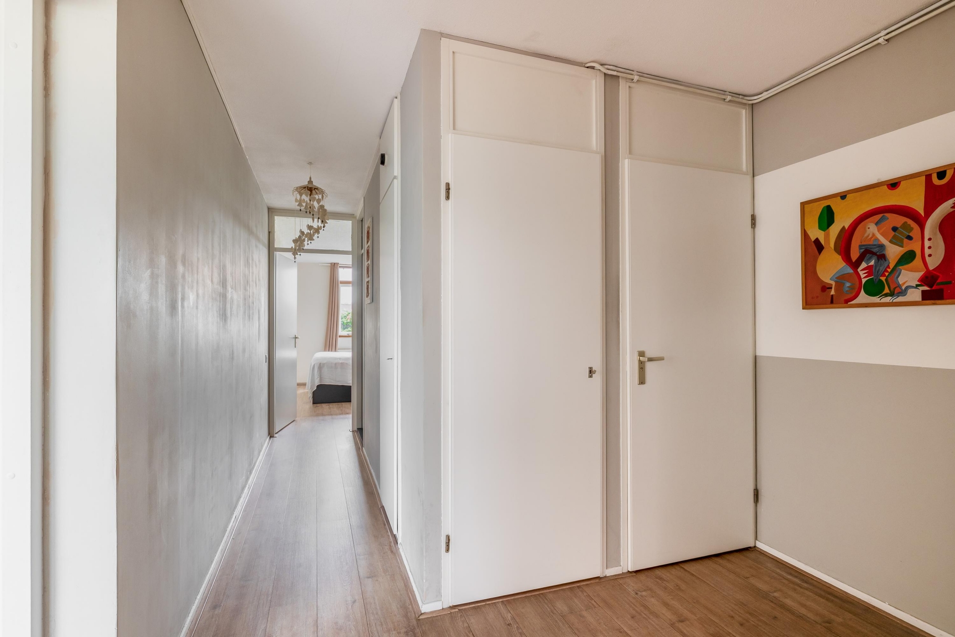 Het appartement beschikt over twee slaapkamers, beide van goed formaat en netjes afgewerkt. De grootste kamer biedt gemakkelijk plek voor een tweepersoonsbed, een kledingkast en zelfs een bureau. Ook de tweede kamer is verrassend ruim en geschikt voor een tweepersoonsbed met kledingkast, of kan worden ingericht als kinderkamer, werkkamer of logeerkamer. Verder is er een aparte bergkast voor extra opslag en de cv-installatie en is het geheel gelegen op de eerste verdieping van een verzorgd appartementencomplex. De woning is gebouwd in 1984 en beschikt over energielabel C. In de onderbouw is een eigen ruime berging met elektriciteit, ideaal voor het stallen en eventueel opladen van de elektrische fiets.
