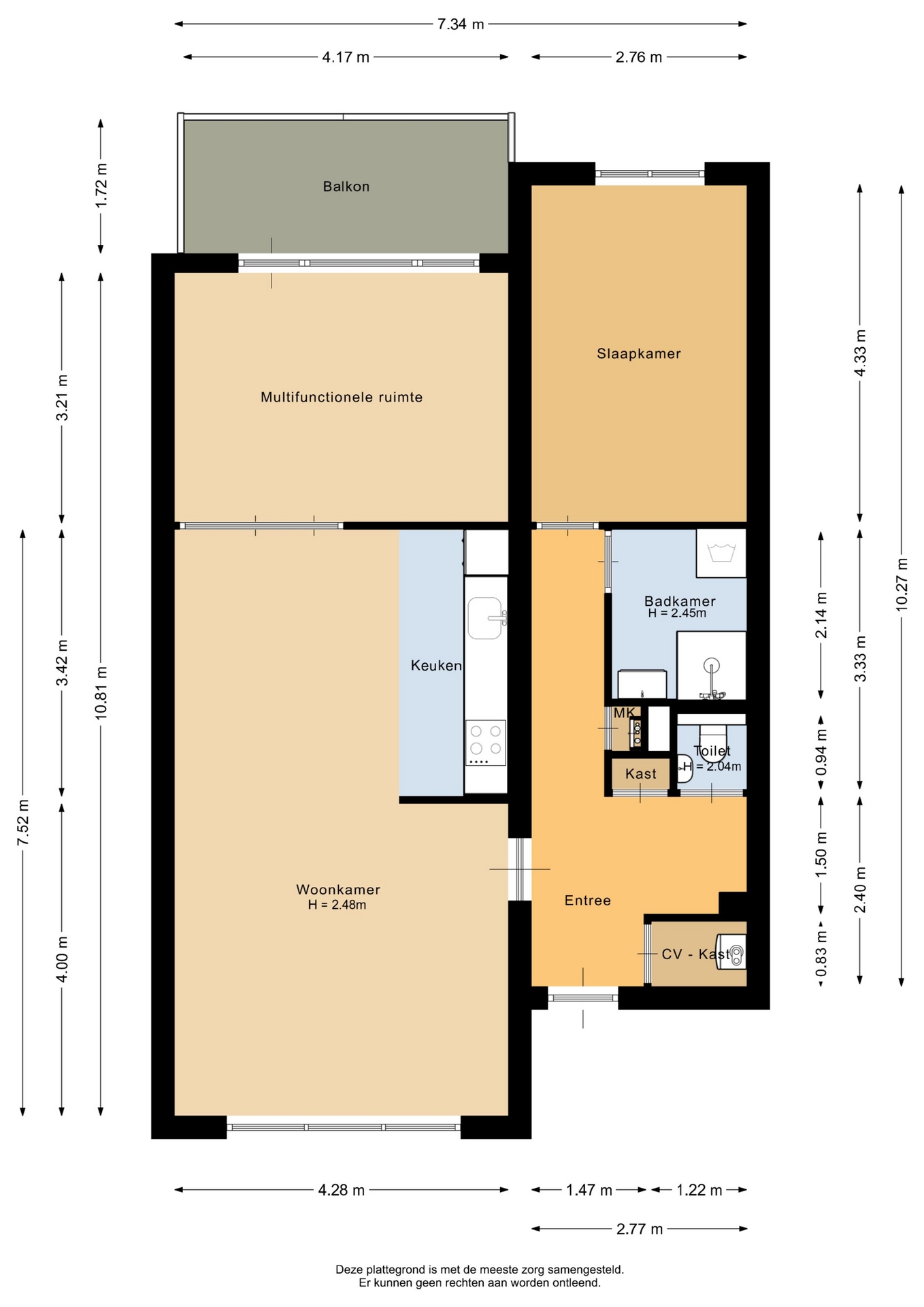 “Deze informatie is door ons met de nodige zorgvuldigheid samengesteld. Onzerzijds wordt echter geen enkele aansprakelijkheid aanvaard voor enige onvolledigheid, onjuistheid of anderszins, dan wel de gevolgen daarvan. Alle opgegeven maten en oppervlakten zijn indicatief.”