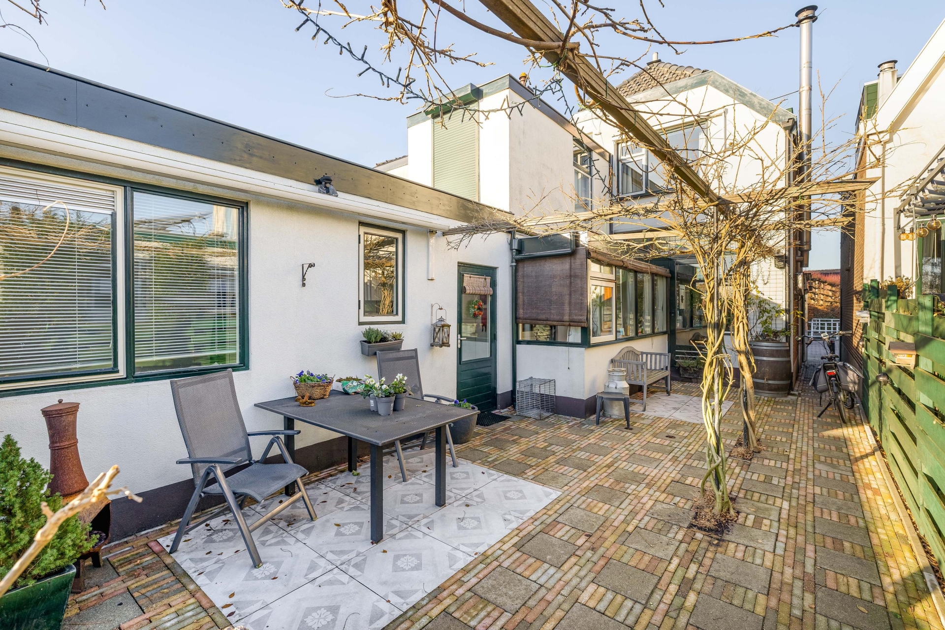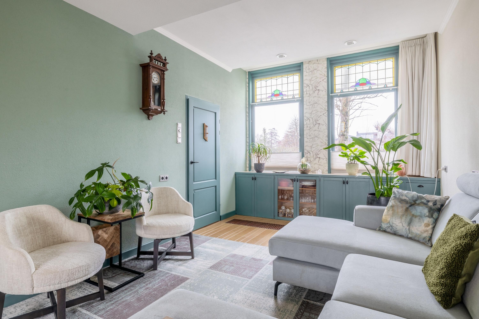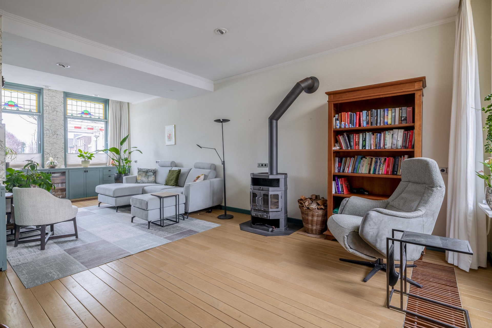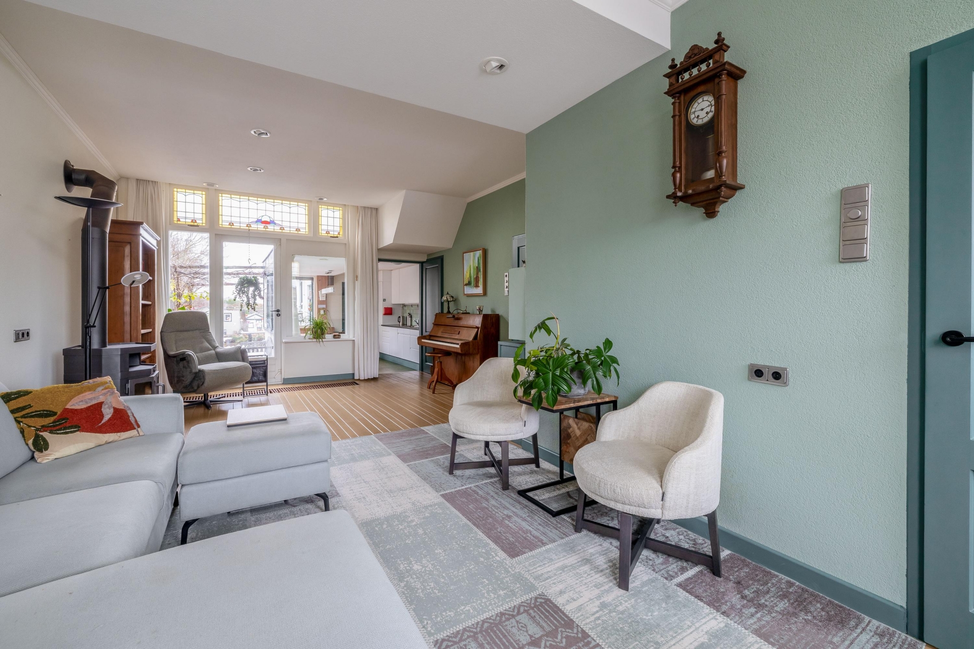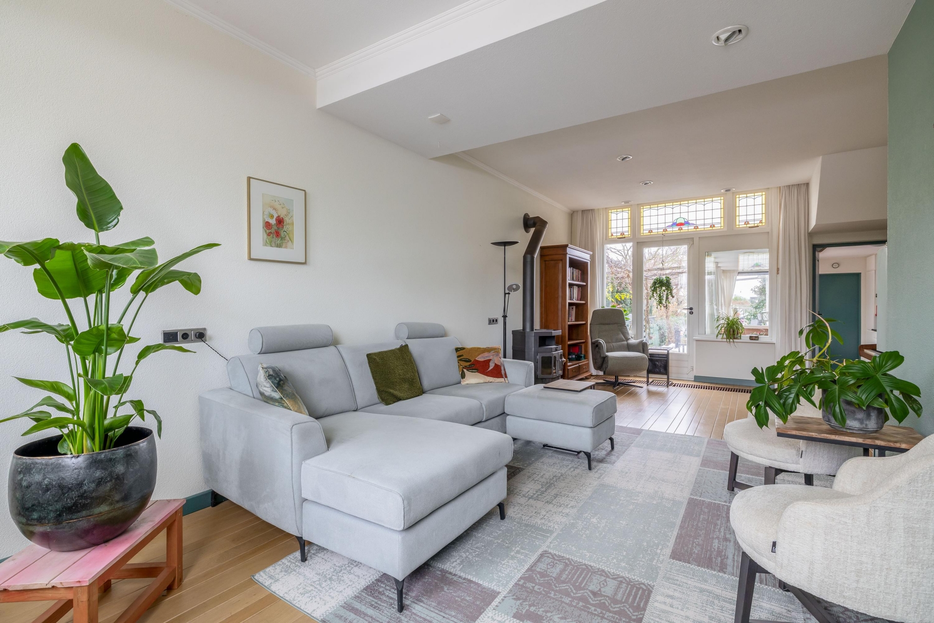 Zodra je binnenkomt, proef je direct de sfeer van dit huis. De woonkamer is licht, dankzij de grote raampartijen aan de voor- en achterzijde, die bovendien zijn voorzien van prachtig glas-in-lood. De ruimte is sfeervol en warm ingericht met behoud van originele details zoals hoge plafonds, paneeldeuren en een mooie houten vloer. Aan de voorzijde bevindt zich een gezellige zithoek en ook achterin de woonkamer is een fijne plek met uitzicht over de tuin. De woonkeuken is in de aanbouw gesitueerd, de grote raampartijen zorgen ook hier voor veel natuurlijk lichtinval en uitzicht op de diepe tuin en er is hier voldoende ruimte voor een eethoek. Wat een heerlijke plek! De praktische bijkeuken is de plek voor de wasmachine en extra bergruimte en vanuit hier is er toegang tot de tuin. De voormalige berging achter de woning biedt nog extra (opberg)ruimte maar ook ideaal als werkplek of speelkamer.