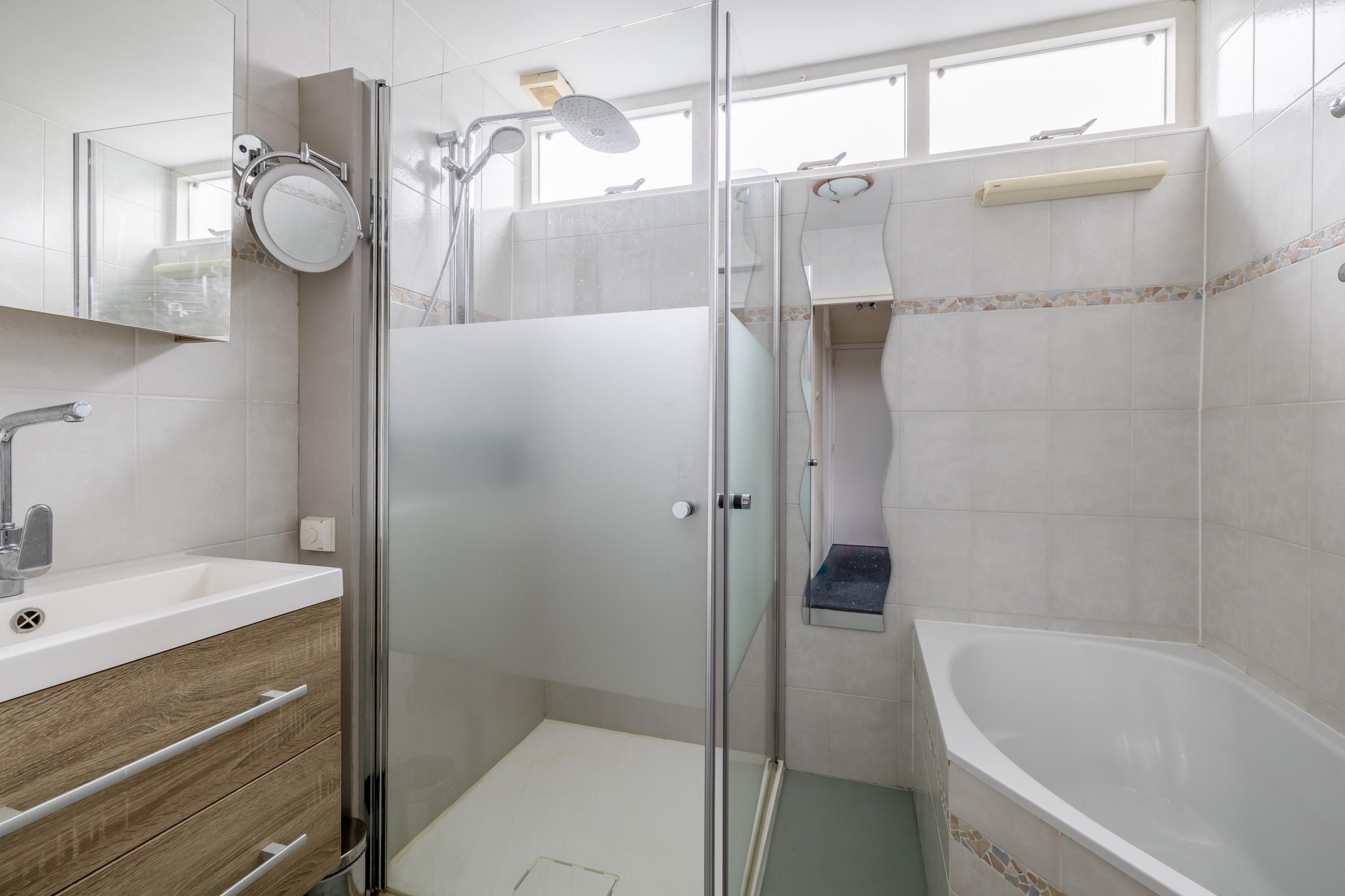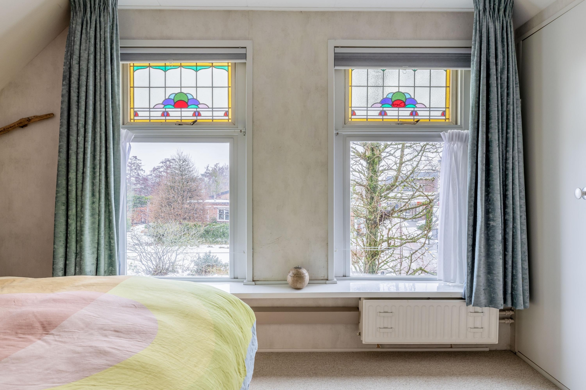 Op de eerste verdieping zijn drie slaapkamers aanwezig, stuk voor stuk netjes afgewerkt en voorzien van ramen met fraai uitzicht. De grootste slaapkamer ligt aan de voorzijde en biedt voldoende ruimte voor een tweepersoonsbed en is voorzien van een vaste kastenwand. Deze kamer kan eventueel met gemak worden opgesplitst in twee slaapkamers. Aan de achterzijde liggen twee kamers met zicht op de tuin. De badkamer is netjes uitgevoerd en voorzien van een ligbad, douche en wastafelmeubel. Op de overloop is een toilet aanwezig en vanuit hier is er toegang tot een bergzolder middels een vlizotrap.