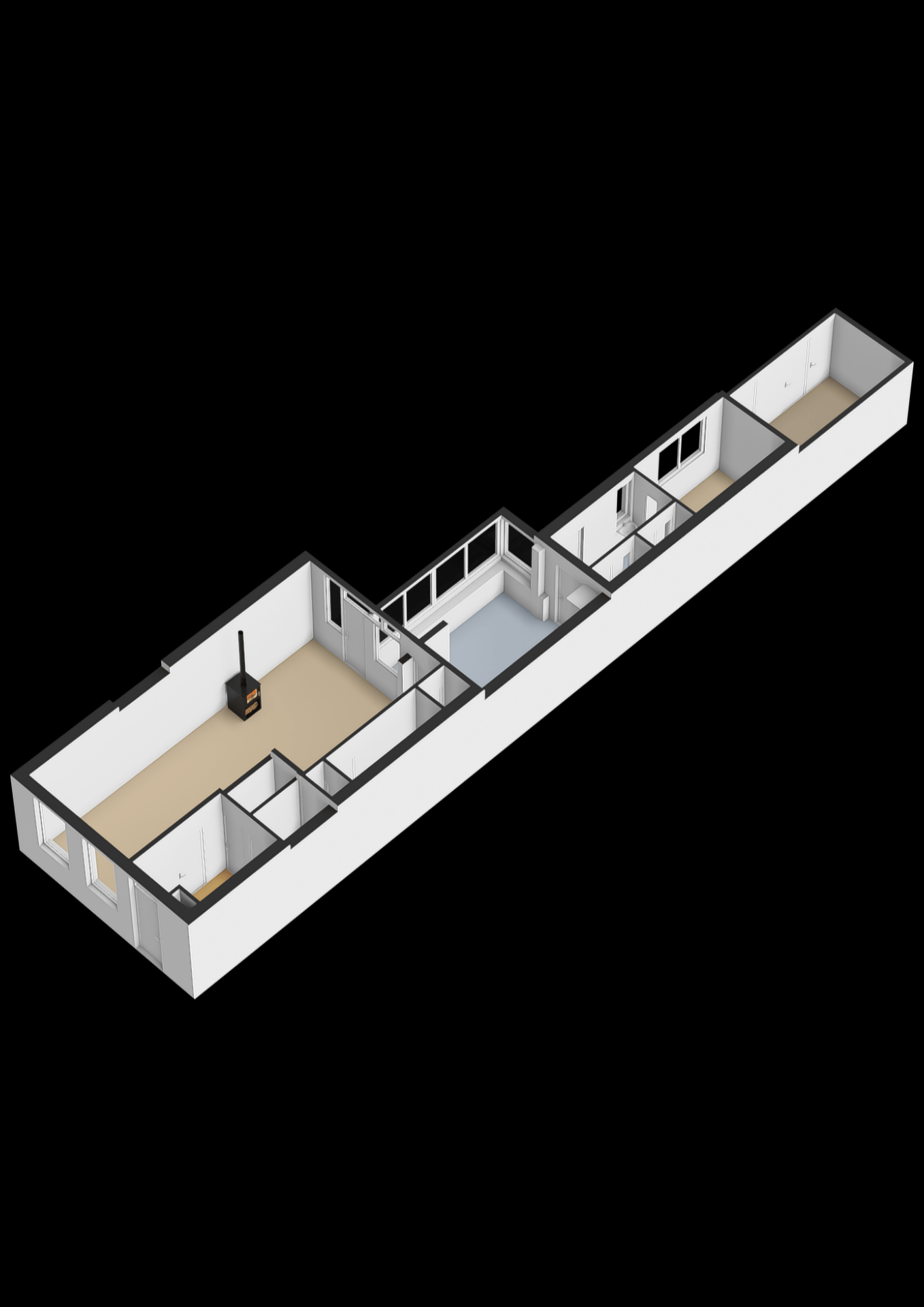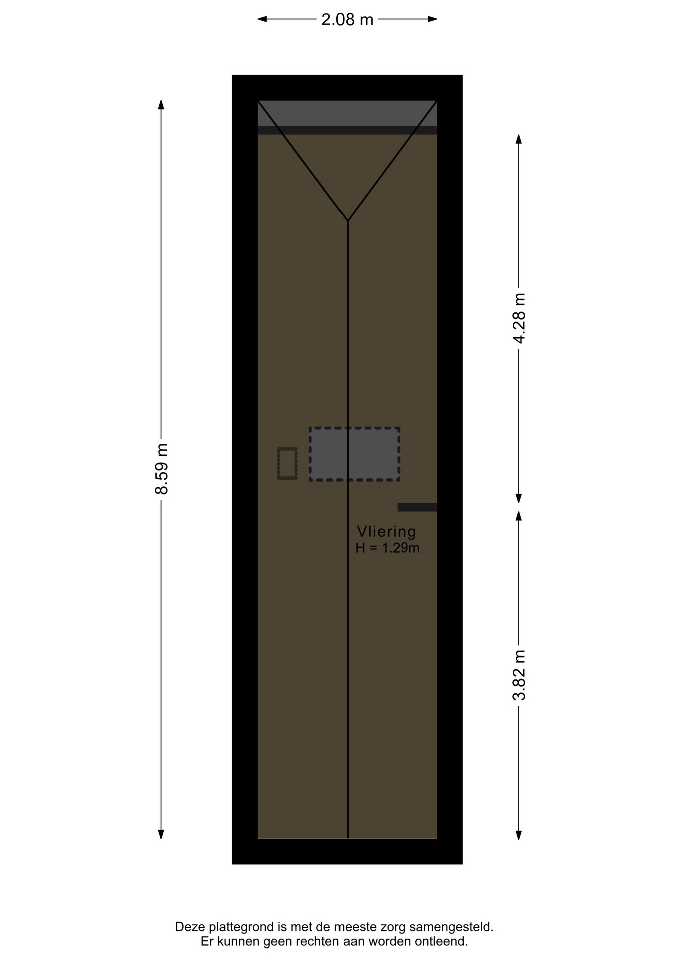- Bergvliering over gehele diepte van de woning, bereikbaar via vlizotrap, hoogte circa 1,30m in de nok;