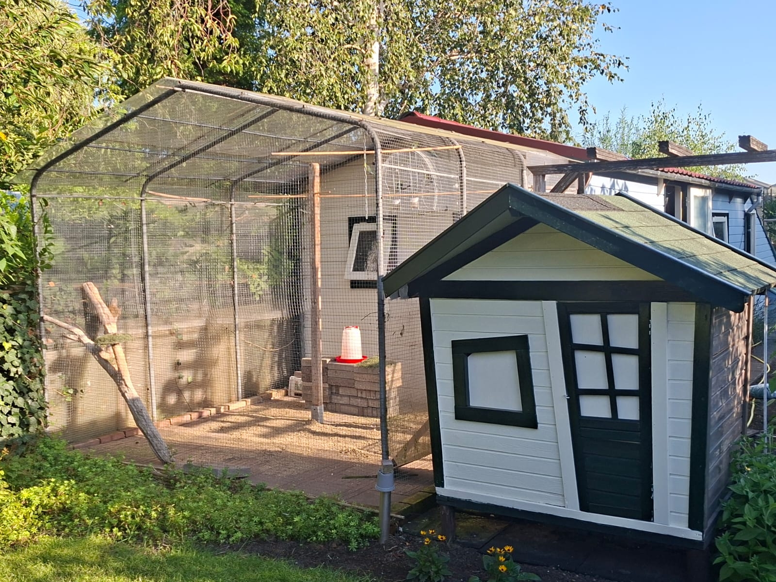 - Schuur achter in de tuin ook gefundeerd met houten palen;