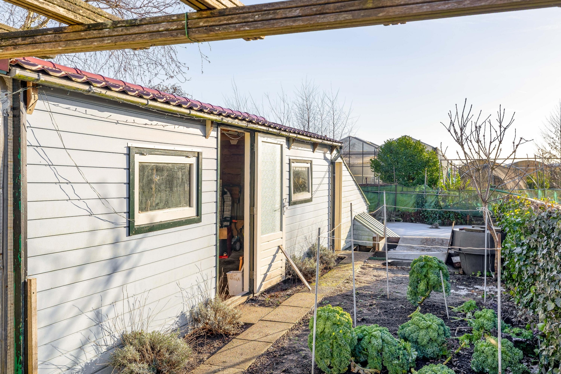 Eén van de grootste pluspunten van dit huis is zonder twijfel de tuin. Deze is opvallend diep, goed onderhouden en heeft een gunstige zuidelijke ligging. Je hebt hier volop zon, privacy en ruimte om te tuinieren, te spelen of gewoon te genieten. De tuin grenst aan de achterzijde aan het water, waardoor je een heerlijk vrij gevoel ervaart en bovendie een flink stuk kunt varen. In de tuin bevinden zich meerdere bergingen, ideaal voor de fietsen en tuingereedschap. De tuin is via een achterom bereikbaar.