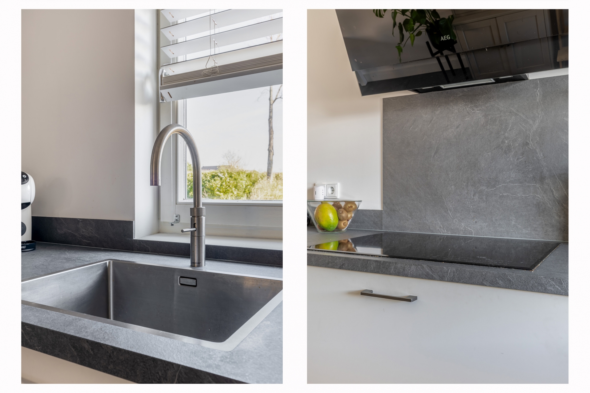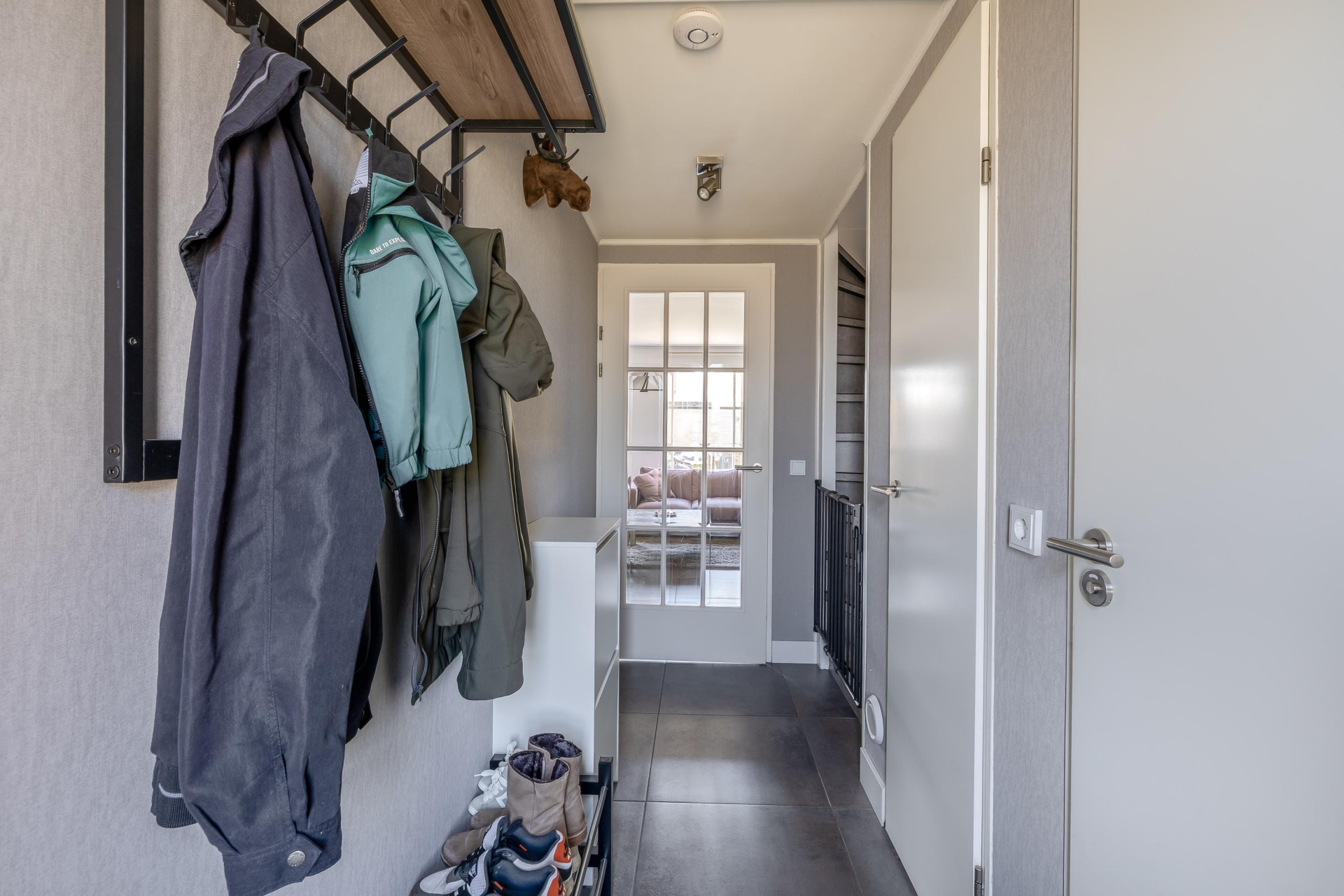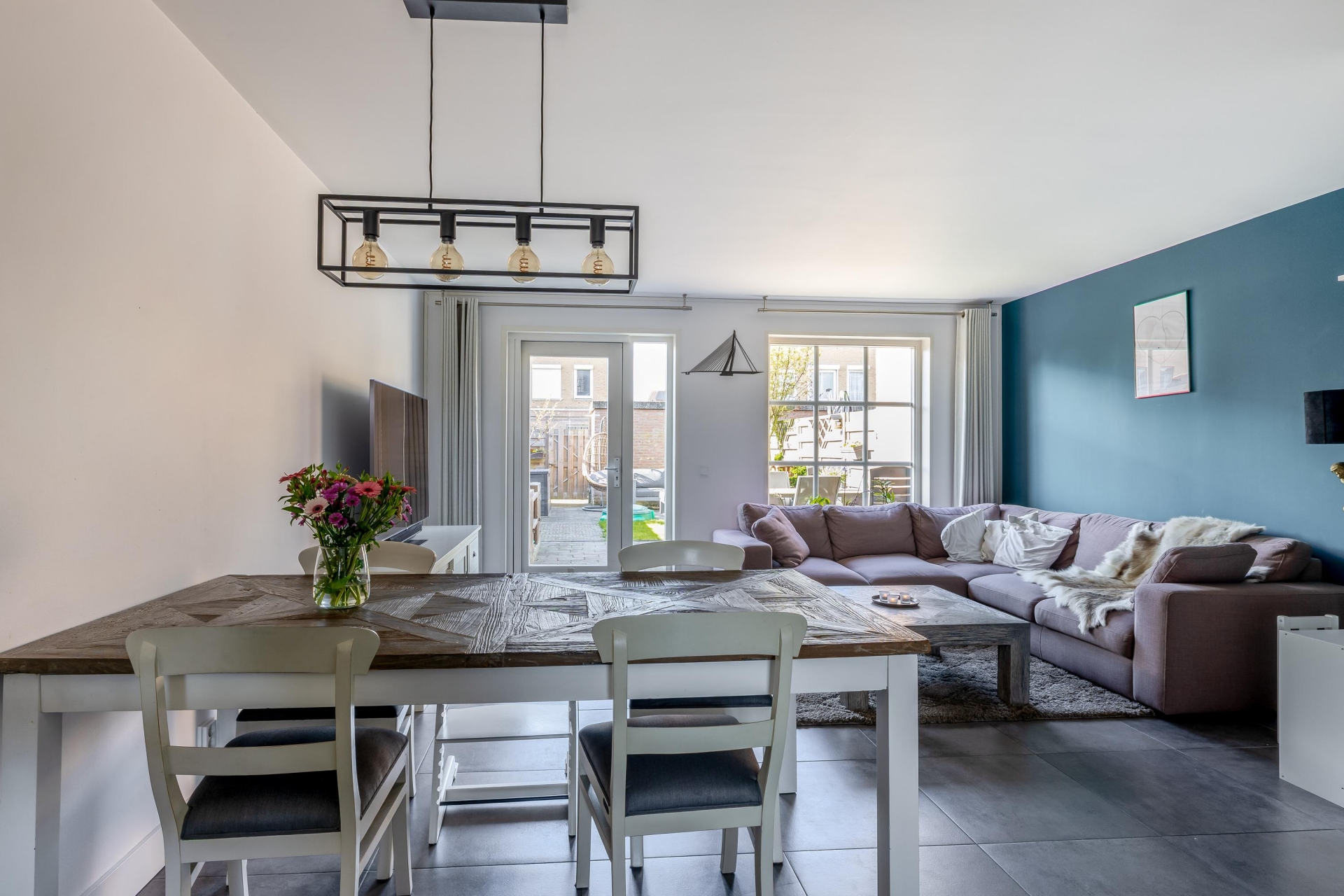 Bij binnenkomst valt meteen op hoe licht de leefruimte is. De woonkamer is tuingericht en dankzij de grote raampartijen en openslaande deur naar de tuin komt het daglicht hier rijkelijk naar binnen. Er is volop ruimte voor een comfortabele zithoek en een gezellige eethoek. De afwerking is strak en neutraal, waardoor je hier eenvoudig je eigen sfeer aan kunt geven. Aan de voorzijde bevindt zich de keuken. Deze is praktisch ingericht met voldoende werk- en bergruimte en voorzien van diverse inbouwapparatuur. Vanuit het raam kijk je vrij de straat in, wat zorgt voor een prettige verbinding met buiten, en je eigen oprit.