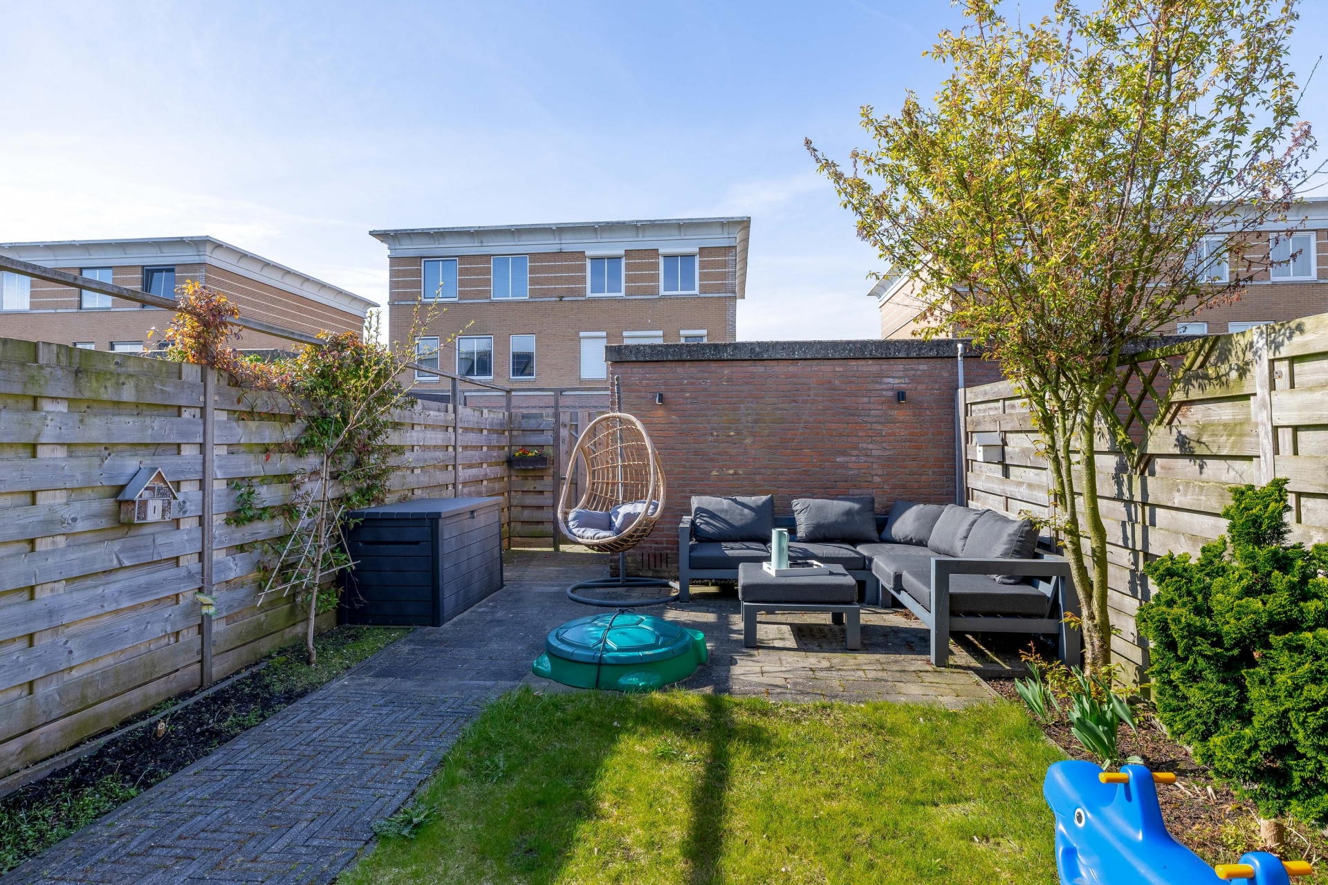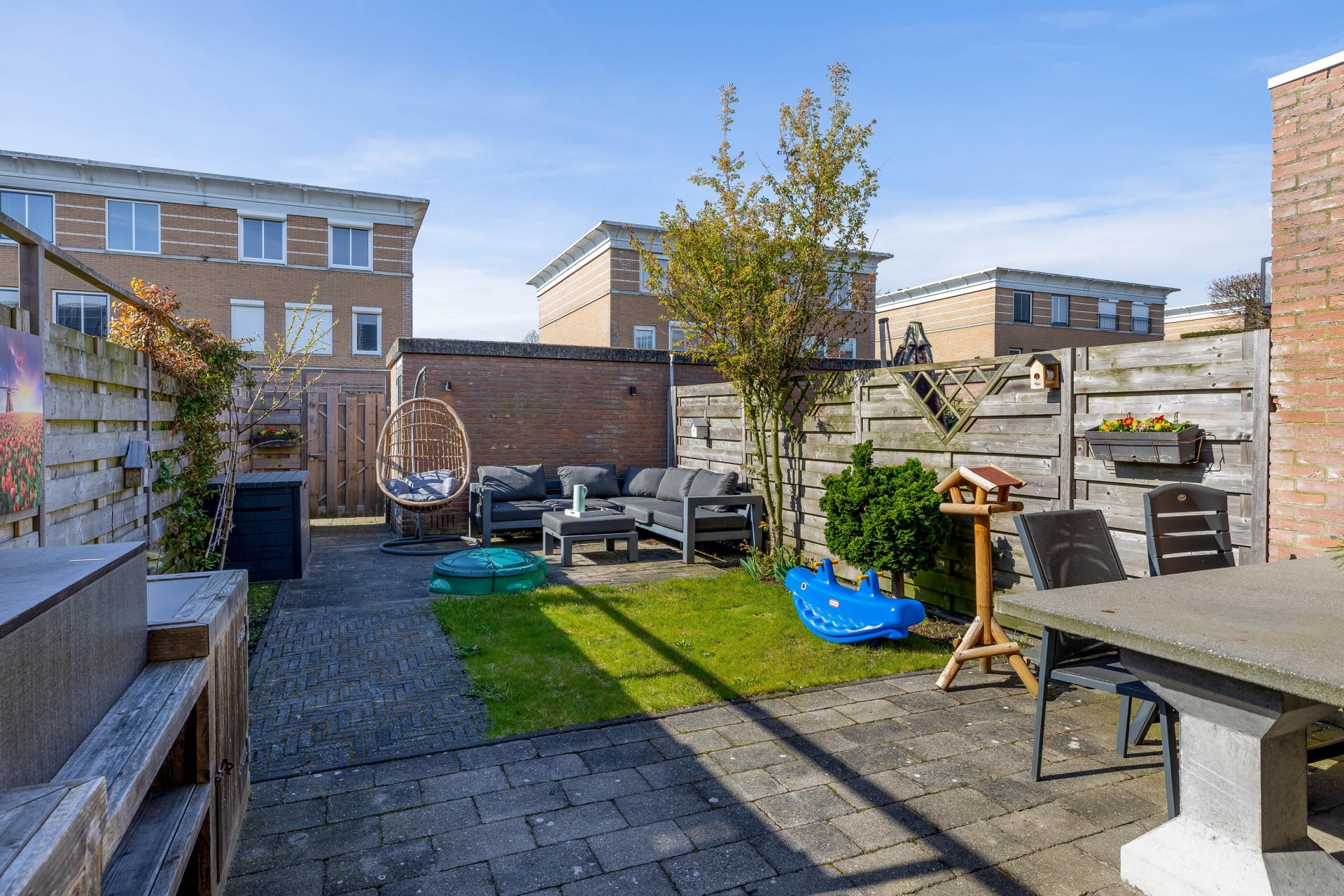 - Tuin op het zuiden met diverse zitjes met achterom;
