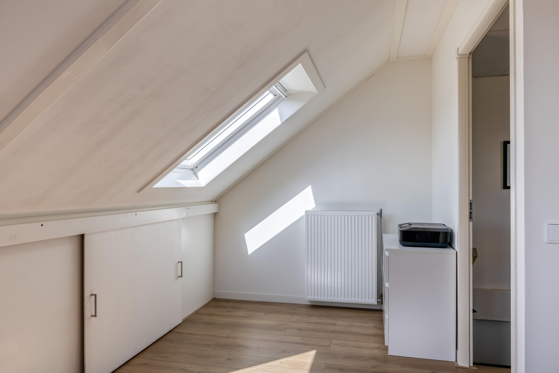 Op de eerste verdieping vind je 3 slaapkamers van goed formaat. De grootste slaapkamer biedt voldoende ruimte voor een royaal bed en een kastenwand. De overige kamers zijn ideaal als kinderkamer, werkkamer of logeerkamer. De badkamer is modern afgewerkt en voorzien van een inloopdouche, wastafelmeubel en toilet. De tweede verdieping maakt het huis extra interessant. Hier vind je een ruime 4e slaapkamer, perfect als master bedroom, werkruimte of hobbykamer. Daarnaast is er een aparte wasruimte en extra bergruimte, wat zorgt voor een praktische indeling.