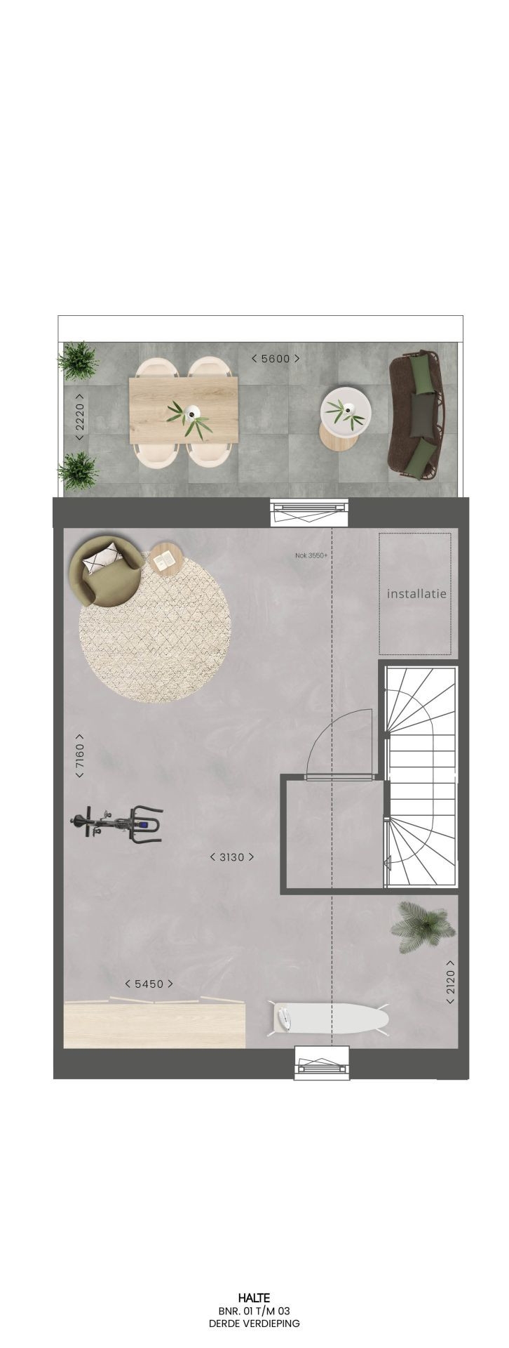 RUIMTELIJK WONEN MET KARAKTER NAAST HET OUDE SPOORGEBOUW Aan gebouw Spoor, direct naast het oude Spoorgebouw, komen 3 geweldige stadswoningen met industrieel sheddak. Type Halte biedt een zee aan ruimte en drie verschillende buitenruimten. Direct onder het terras aan het binnenhof liggen 2 privé-parkeerplaatsen. Je komt binnen op de begane grond, via de hal aan de…