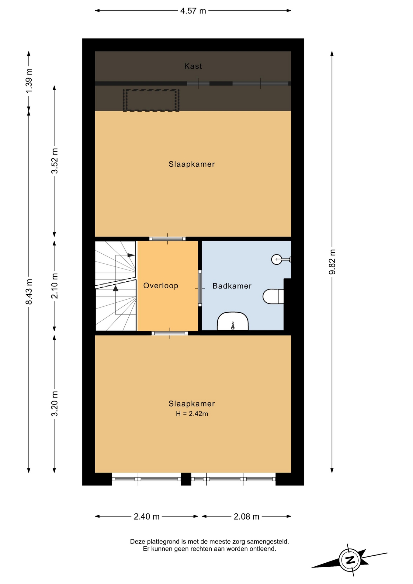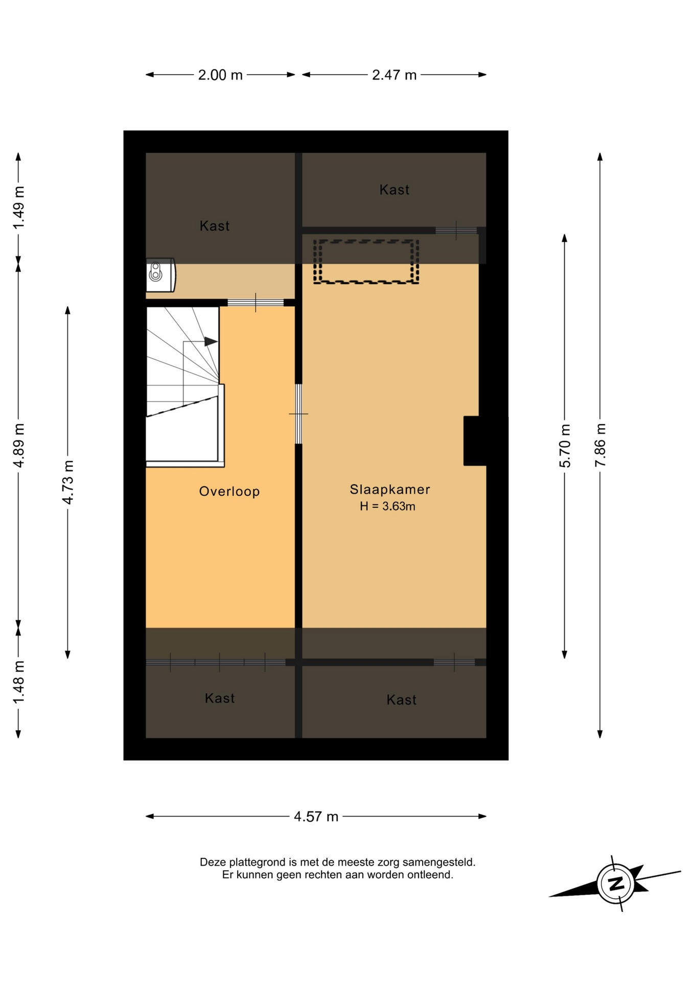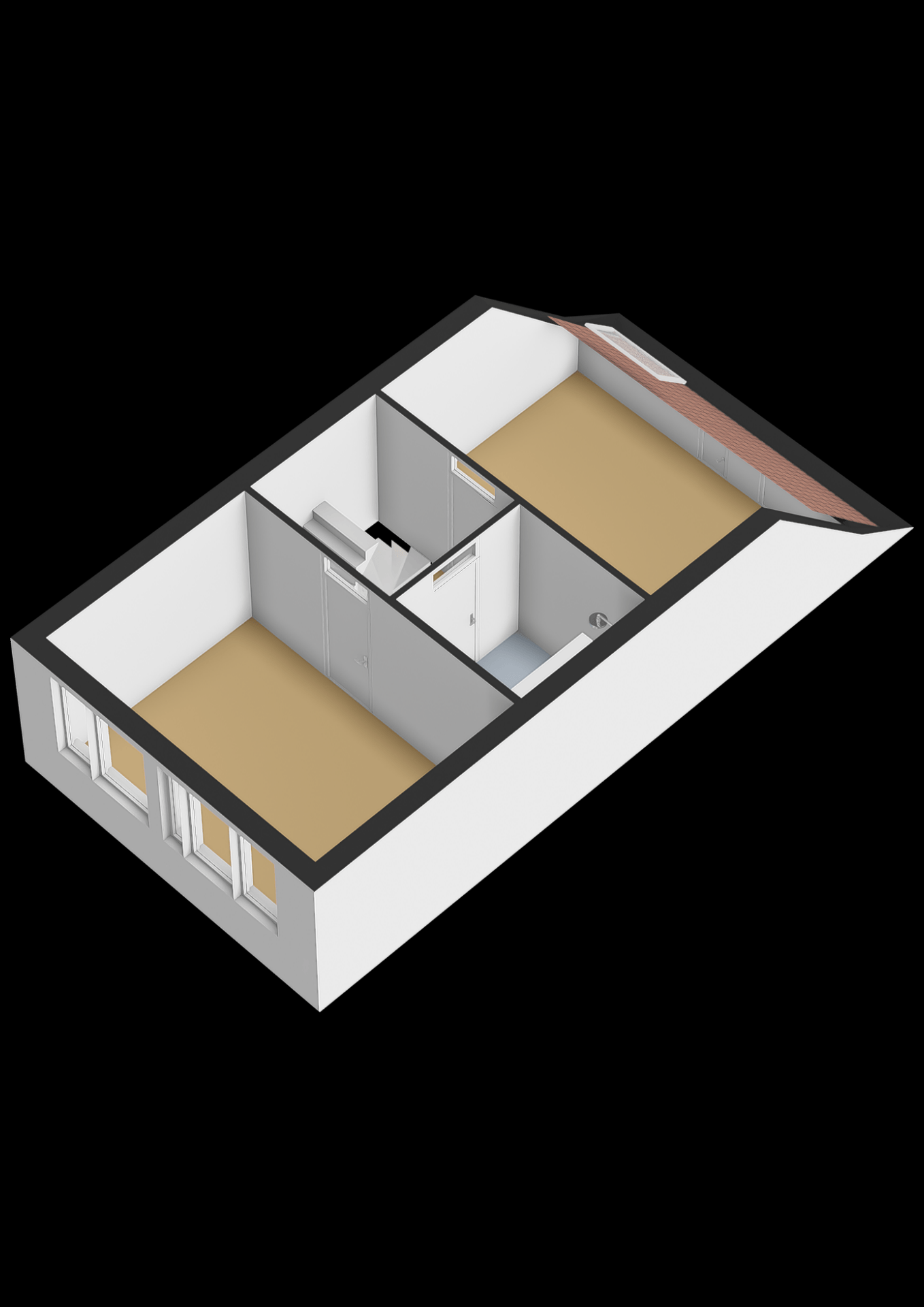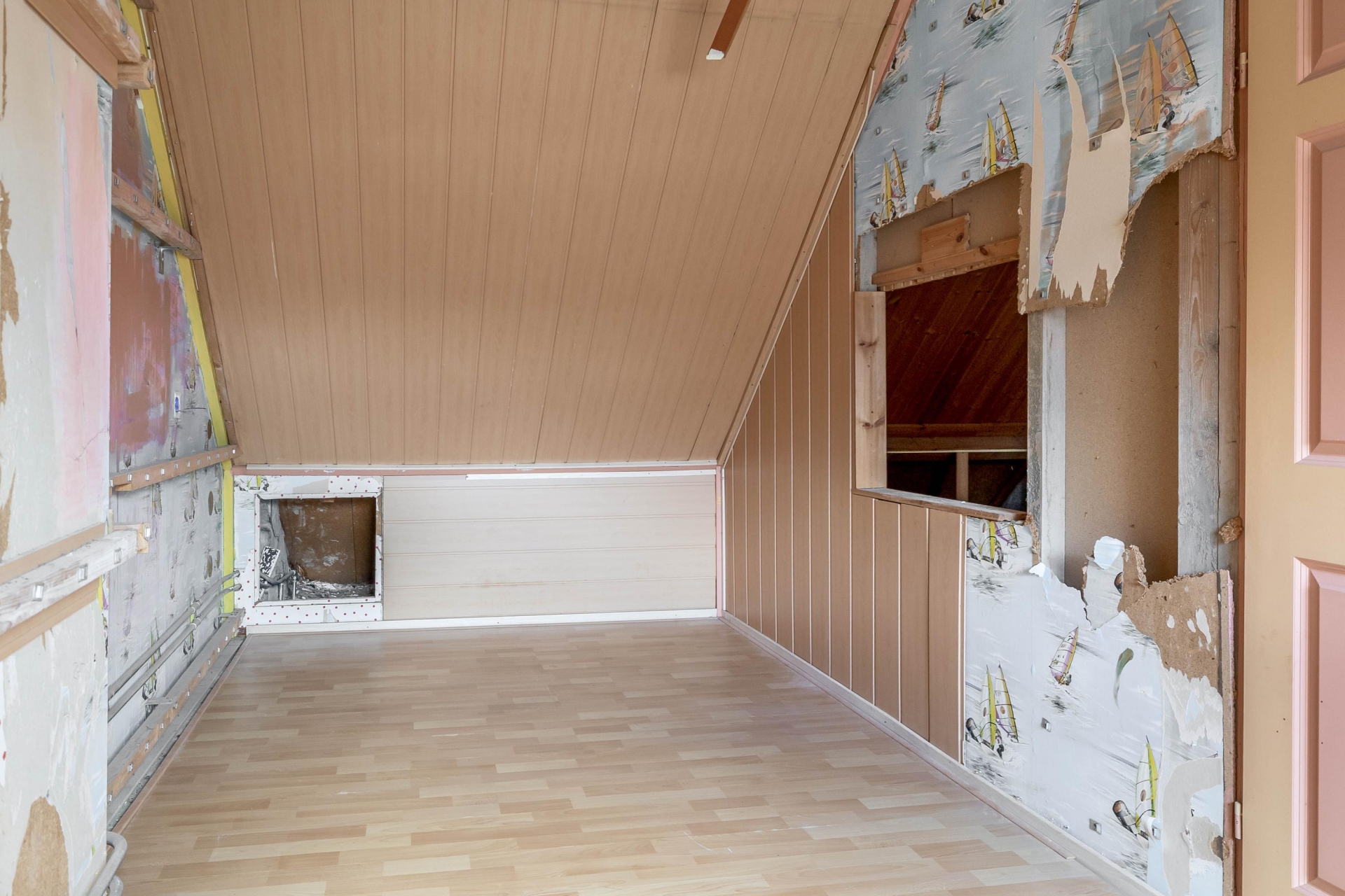 De tweede verdieping biedt nog een derde slaapkamer. Dankzij het dakraam is dit een fijne, lichte ruimte die je flexibel kunt gebruiken. Denk aan een slaapkamer, thuiswerkplek of hobbyruimte. Op de overloop vind je daarnaast de opstelplaats voor de CV-ketel en extra bergruimte.
