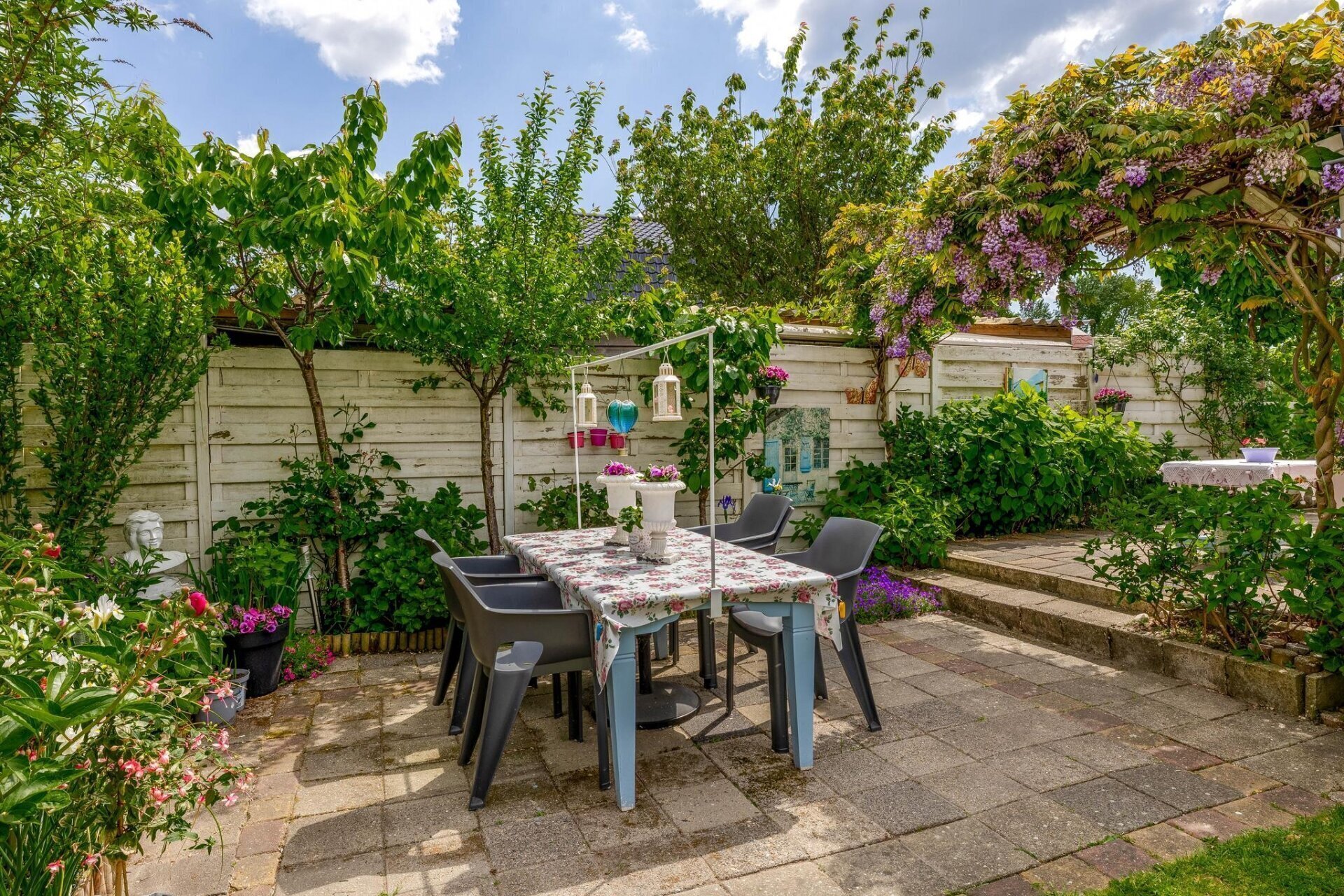 - Zonnige tuin rondom met meerdere terrassen
