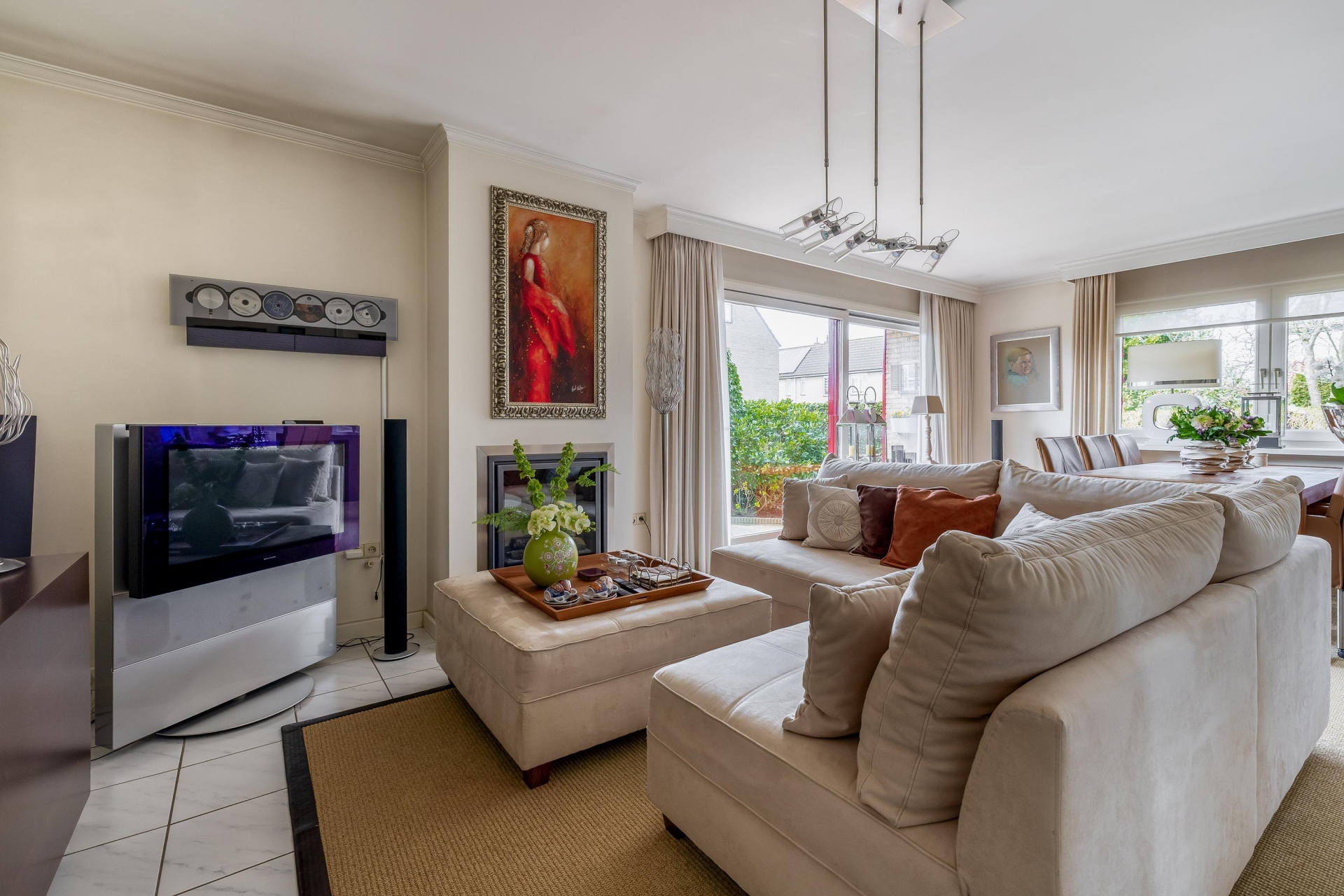 Binnenkomend in de hal heb je toegang tot de verschillende ruimtes en de trap naar boven. De woonkamer is royaal opgezet en dankzij de grote raampartijen heerlijk licht. De indeling is praktisch met een gezellige zithoek en een ruime eethoek die in verbinding staat met de tuin.