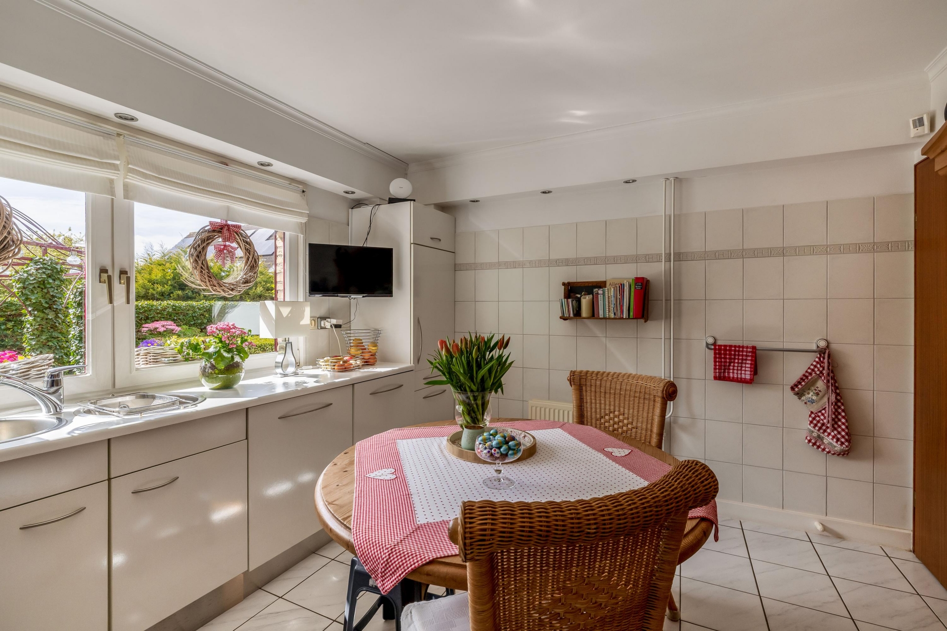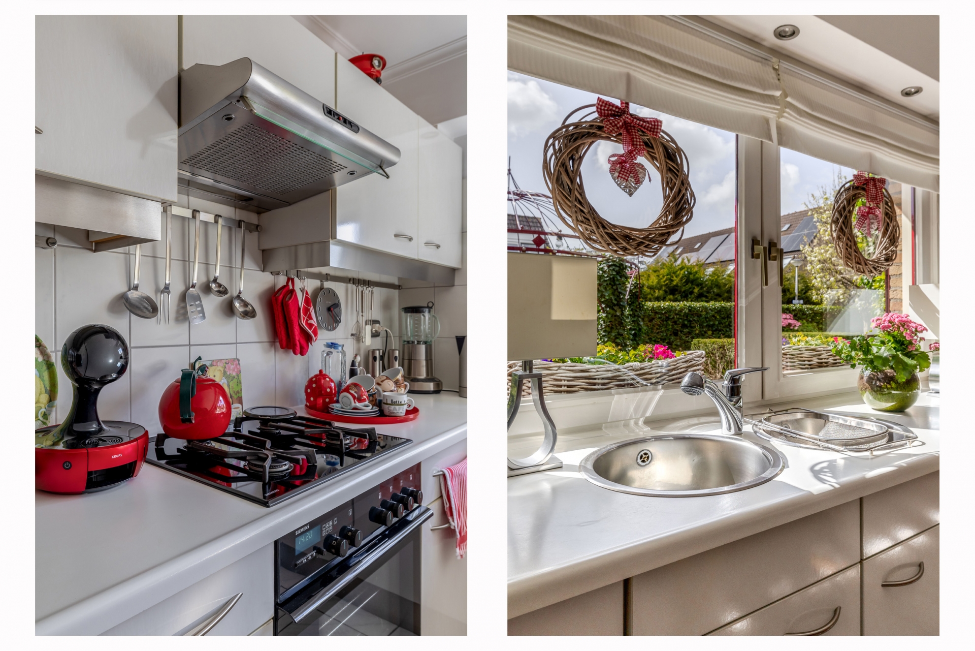 De keuken ligt aan de achterzijde en biedt een fijn uitzicht op het groen. Het is een verzorgde en functionele ruimte waar je met gemak uitgebreid kunt koken. Aan de voorzijde vind je de bijkeuken, ideaal voor extra opslag en het plaatsen van witgoed.