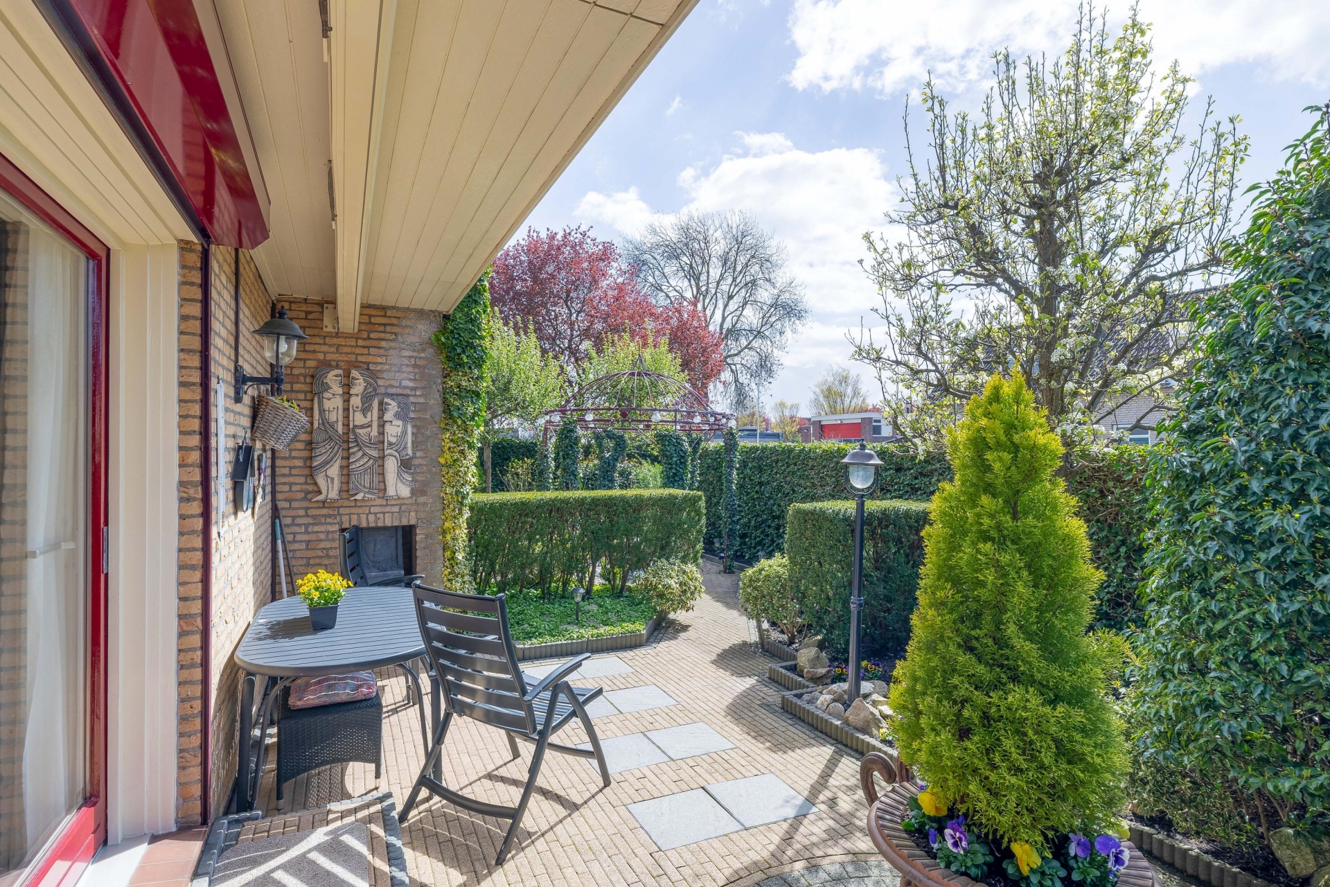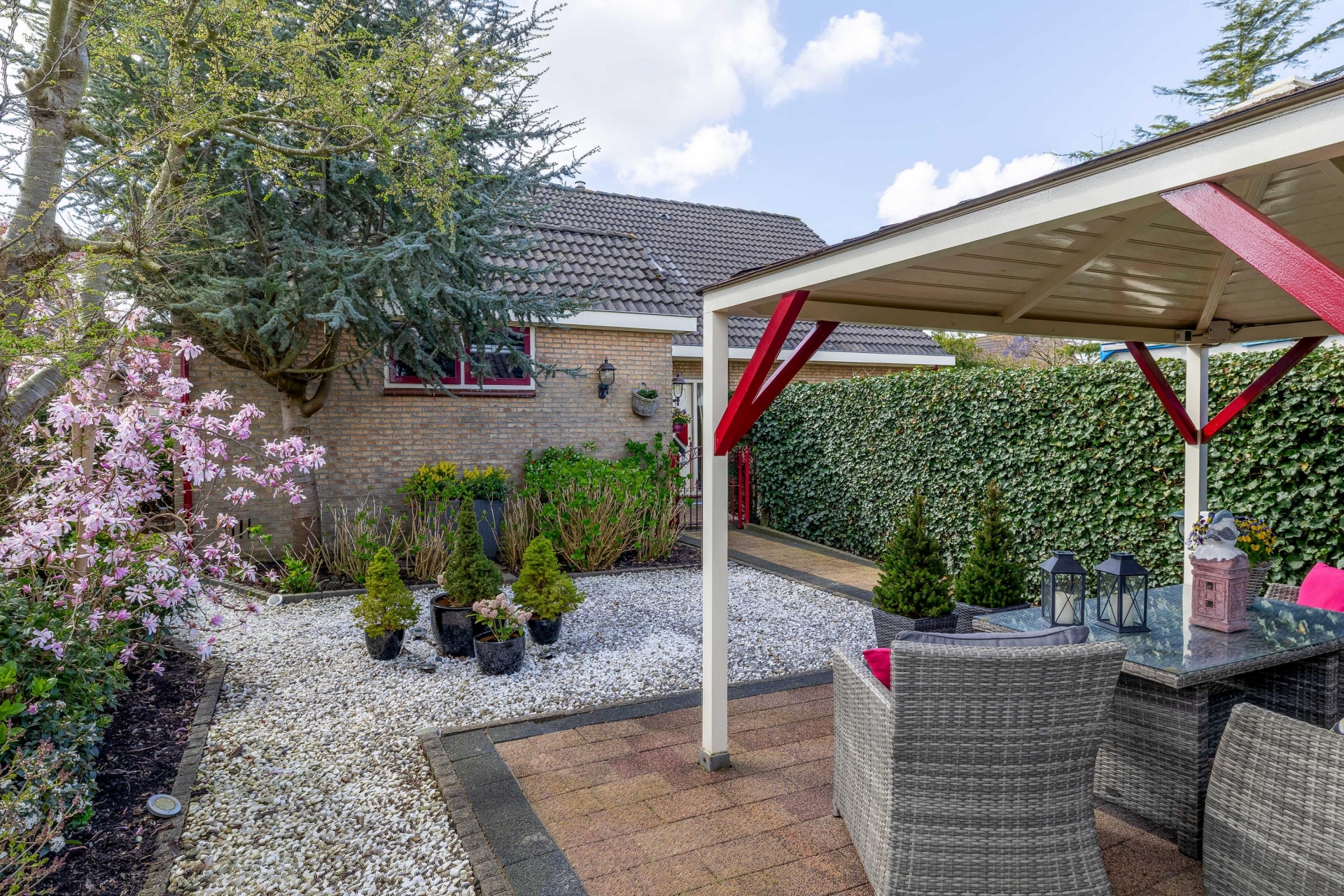 Rondom het huis ligt een fraai aangelegde tuin die met zorg is onderhouden. Er zijn meerdere plekken gecreëerd om te zitten, waardoor je op ieder moment van de dag een fijne plek hebt in de zon of schaduw.
